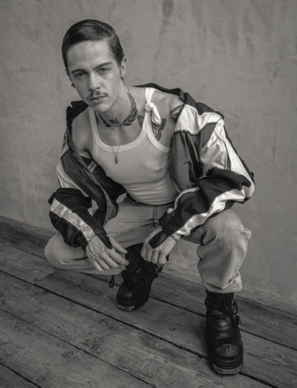 “I’m just an ADHD kid,” says Noah Granville, a Brighton-based actor and model.“They had to put me somewhere to burn that energy off.” Cue: dance and drama. That energy never left, it just found purpose. He’s played the non-binary lead in Autofiction, a 2022 short film directed by Katie Lambert to accompany the Suede album of the same name, and has other hush-hush projects brewing. “Acting is all I’ve ever really done since I was little.” Coming out at 21 was a reset, professionally and personally: “It flipped what jobs I go for, so now I home in on trans representation.” He’s acting for the kids who don’t yet see themselves on screen. “I didn’t see a lot of trans people growing up, so I’m trying to be that for the next generation.” Mission accepted.