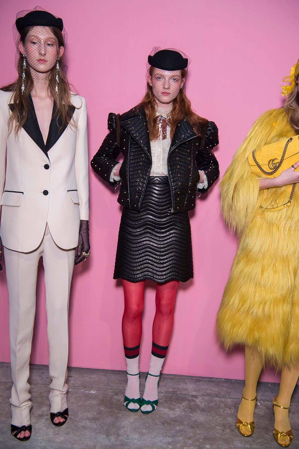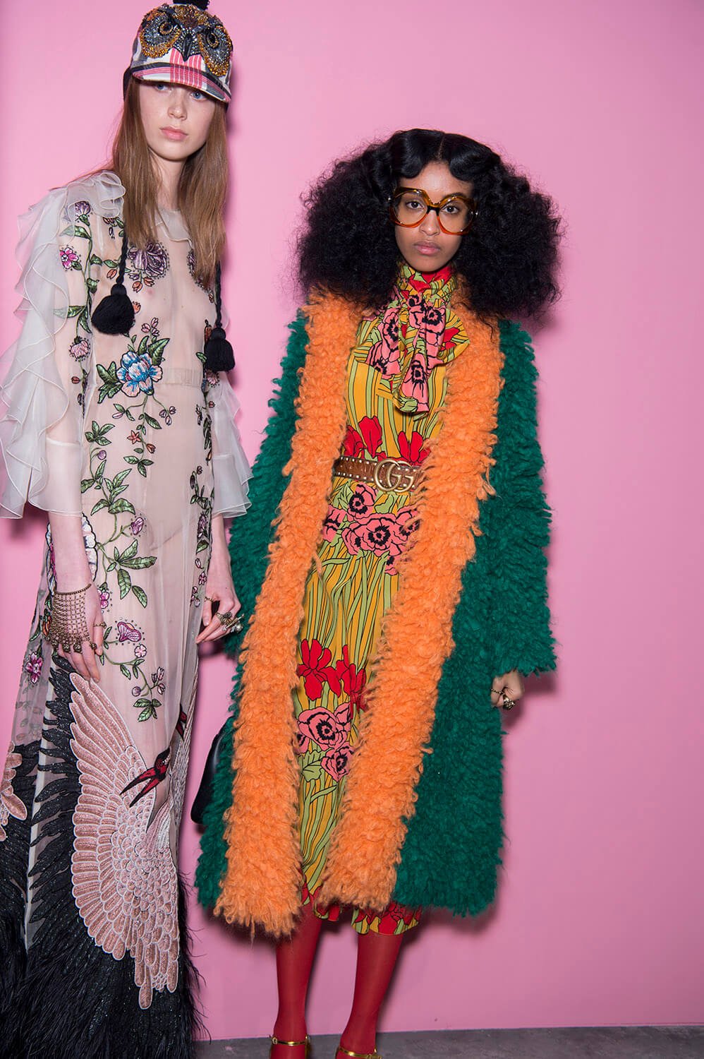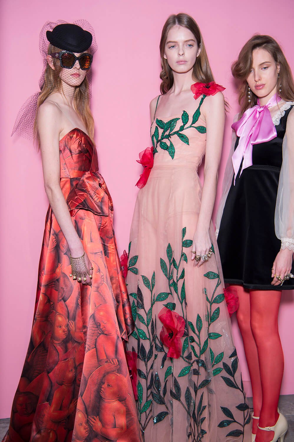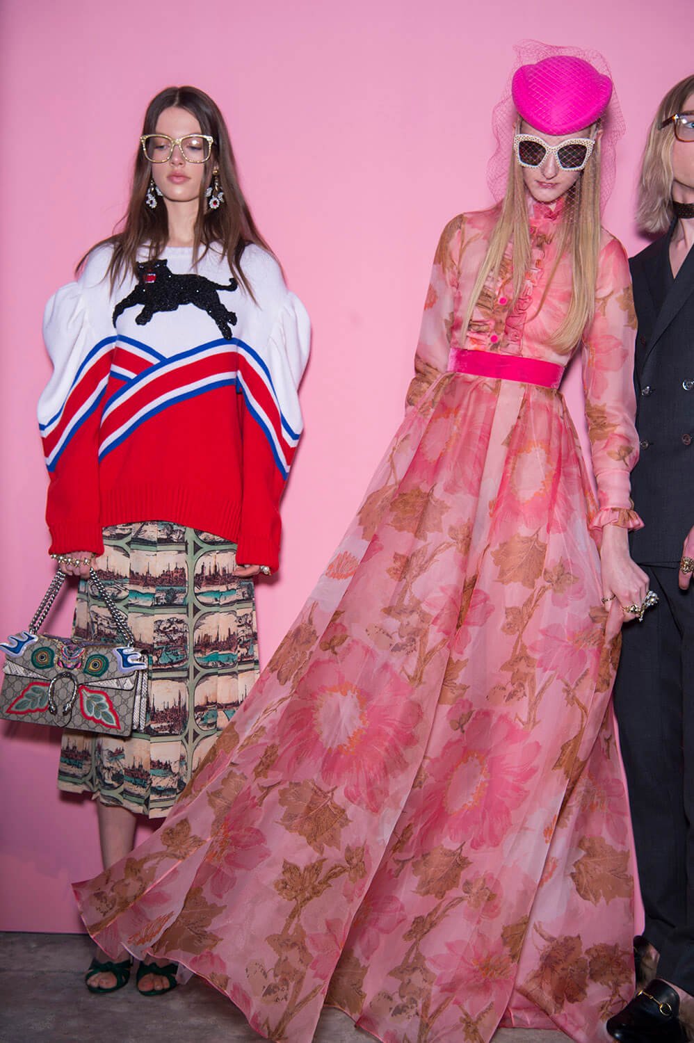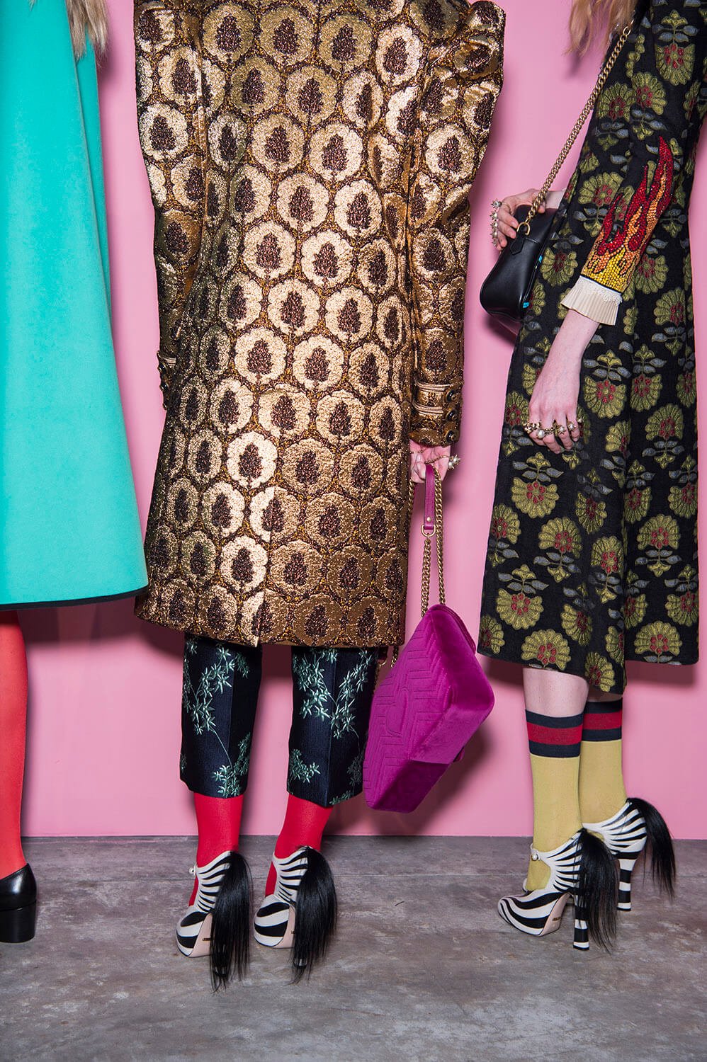 The 1970s via the 1570s. Studio 54 with the Renaissance. Borgias meets Bianca Jagger? It’s a mad mad mix at Gucci, a glorious mash up of histories and loves, whirled together in a blender and laid out for all to feast on. God it’s difficult to reconcile the fact Alessandro Michele has just passed the 12 month mark, offish, as the company’s creative head, given how thoroughly and – we must say – radically he’s overhauled the image and reinvented the style of this most Italian of brands. As ever there was an undercurrent of lust to this Gucci show – something he shares with his predecessors at the label. This lust feels more consumer than carnal though. There’s an urge to acquire, to get your mits on the sequin dresses, the brocade jackets, the chiffon gowns and the graffiti-sprayed bags and mink coats. Form an orderly queue punters.