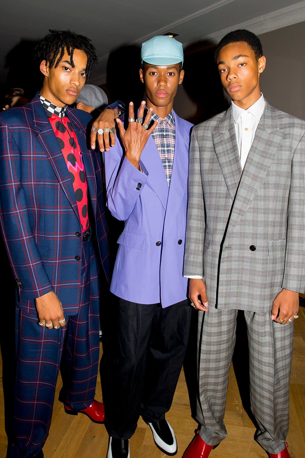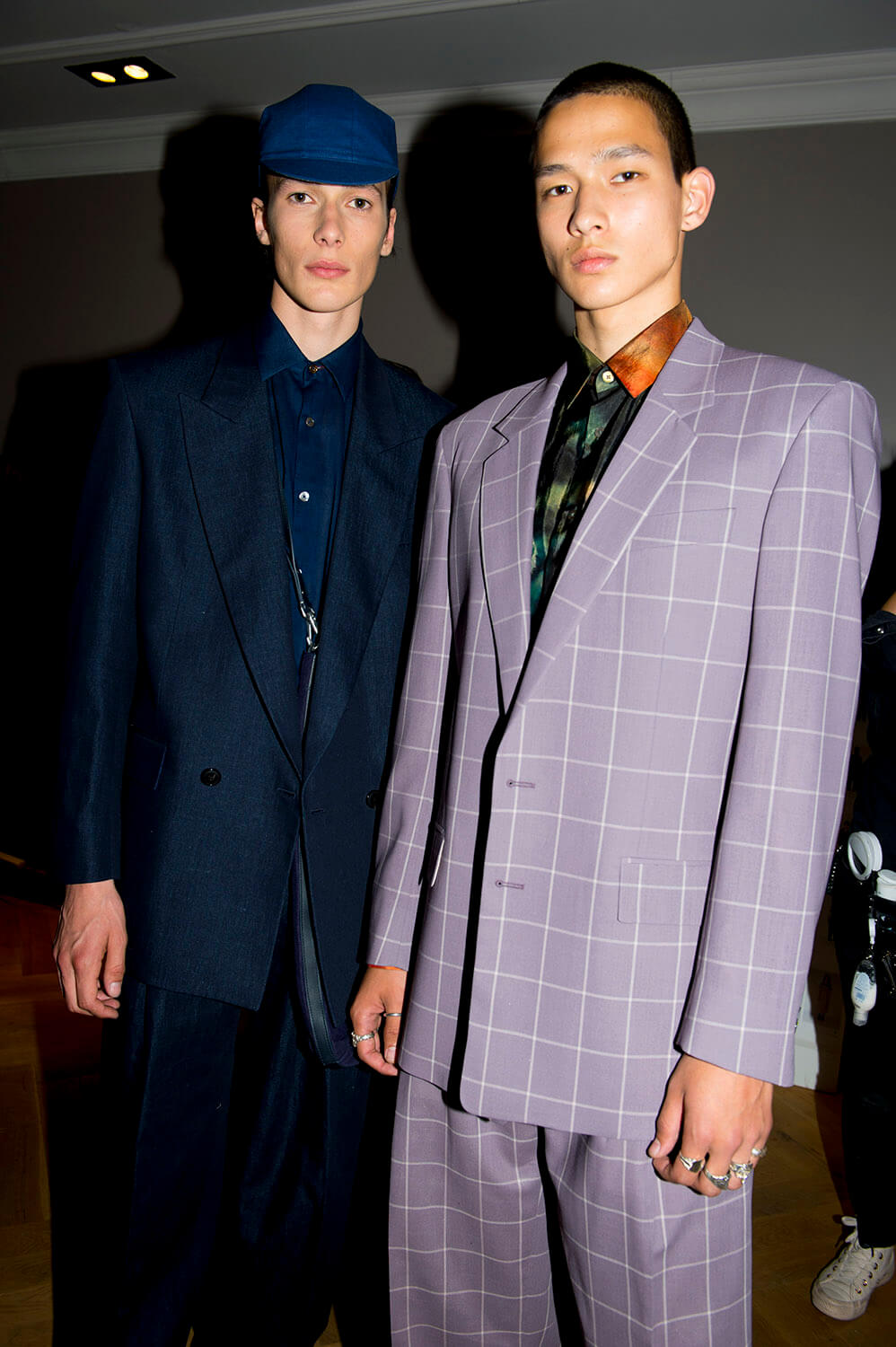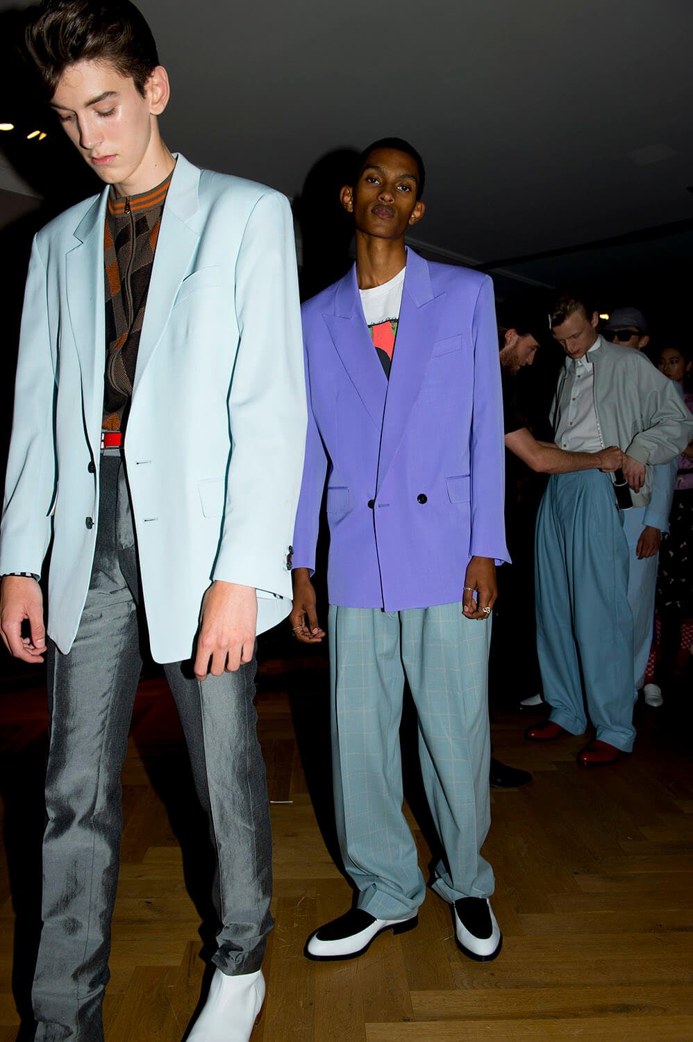 This Beeston lad has expanded his Paul Smith empire into 70 countries. It’s a magic mix of tailoring skills that boils up a special brew of world-beating menswear, and has sold a brand to the world that says “Come on England!”. Potent then that he shows on the day the England team thrashed Panama 6-1 in the World Cup. So for spring, Captain Smith sent a line out of super-skilled looks rooted in Savile Row tailoring. Drop double-breasted jackets and check fabrics were best. Then new wave details like red shoes and a double button jacket in yellow. And a smashing pink jacket the British press were slavering over. Then we went all new wave again with a red leather coat and some superb window pane checks. Mash that up with a polka dot and kerching! Paul Smith magic.