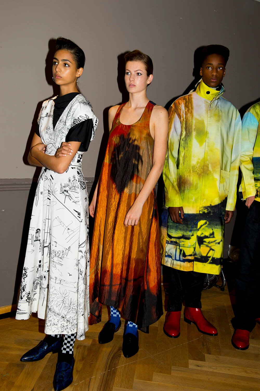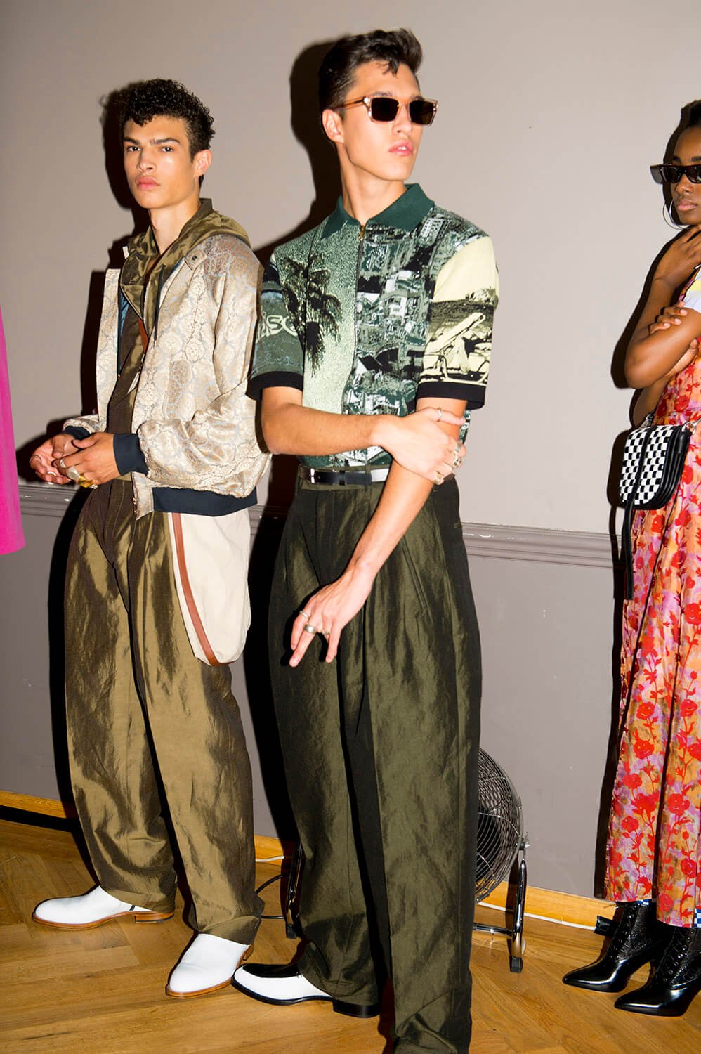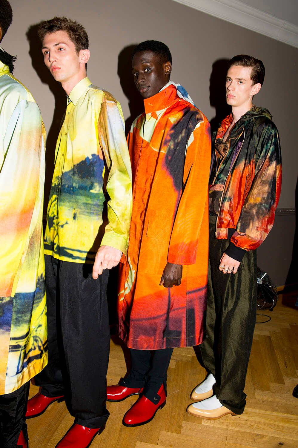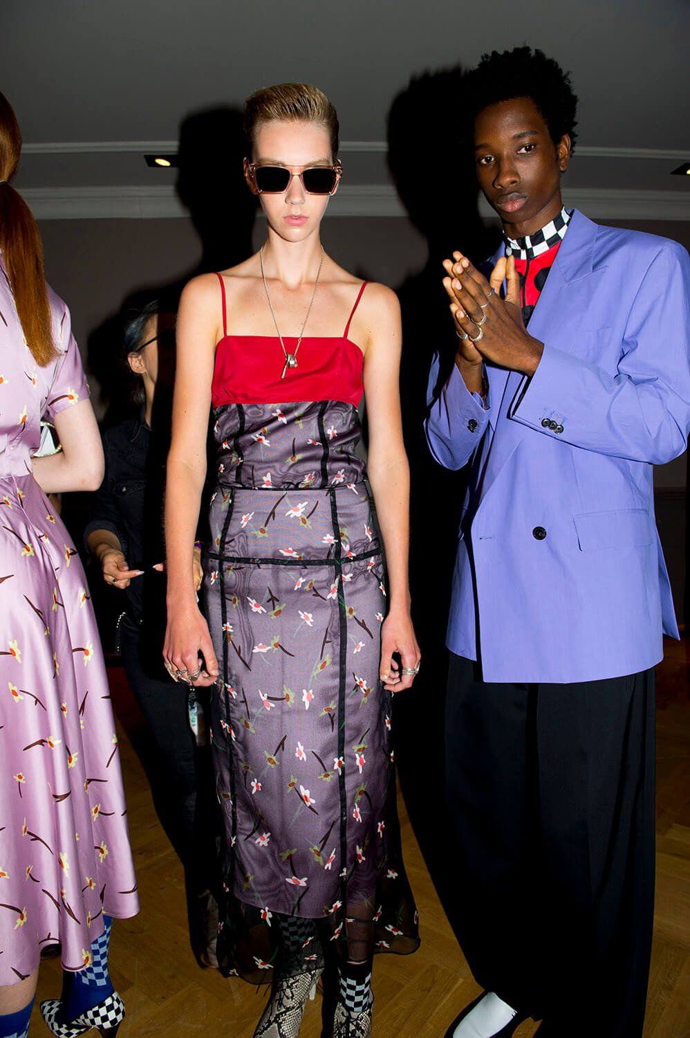 This Beeston lad has expanded his Paul Smith empire into 70 countries. It’s a magic mix of tailoring skills that boils up a special brew of world-beating menswear, and has sold a brand to the world that says “Come on England!”. Potent then that he shows on the day the England team thrashed Panama 6-1 in the World Cup. So for spring, Captain Smith sent a line out of super-skilled looks rooted in Savile Row tailoring. Drop double-breasted jackets and check fabrics were best. Then new wave details like red shoes and a double button jacket in yellow. And a smashing pink jacket the British press were slavering over. Then we went all new wave again with a red leather coat and some superb window pane checks. Mash that up with a polka dot and kerching! Paul Smith magic.