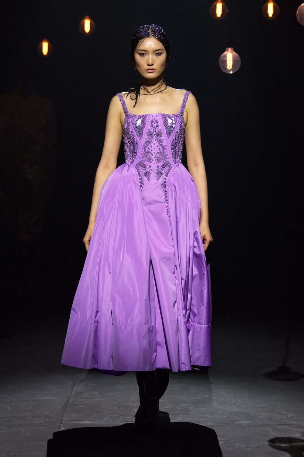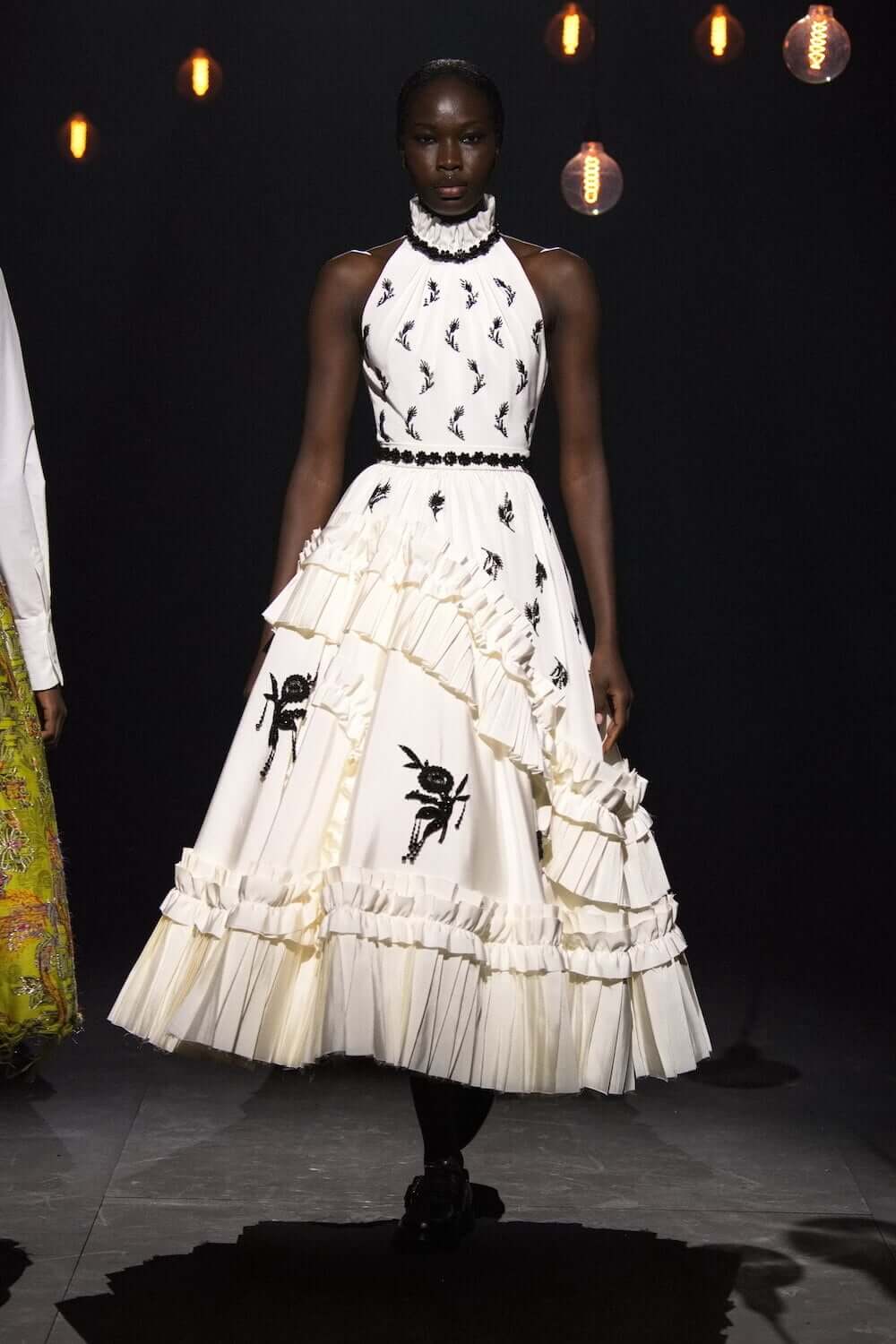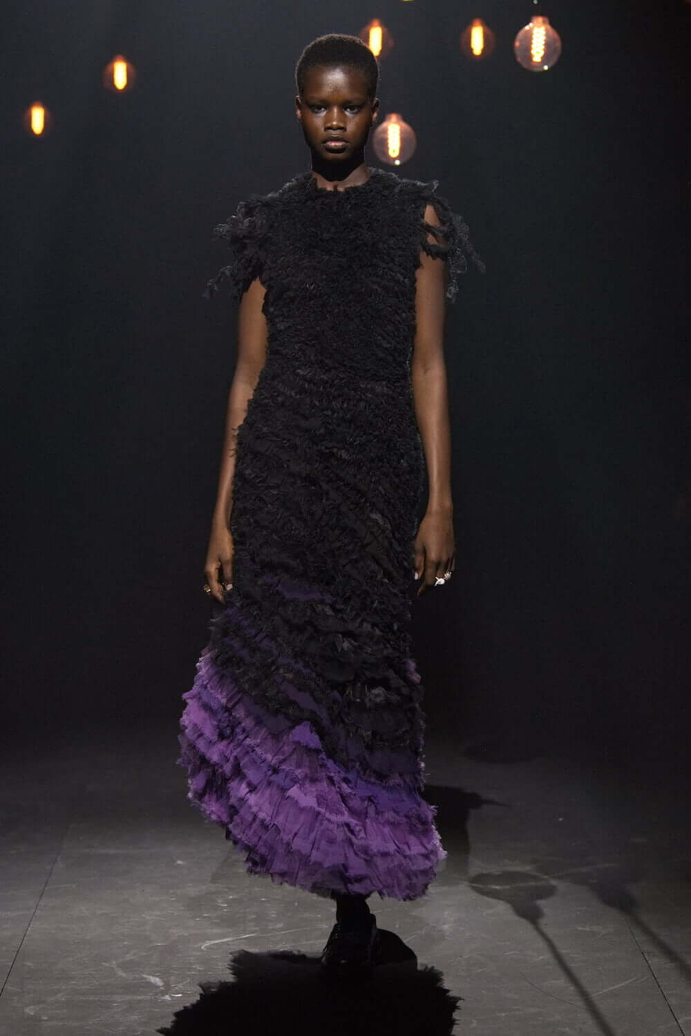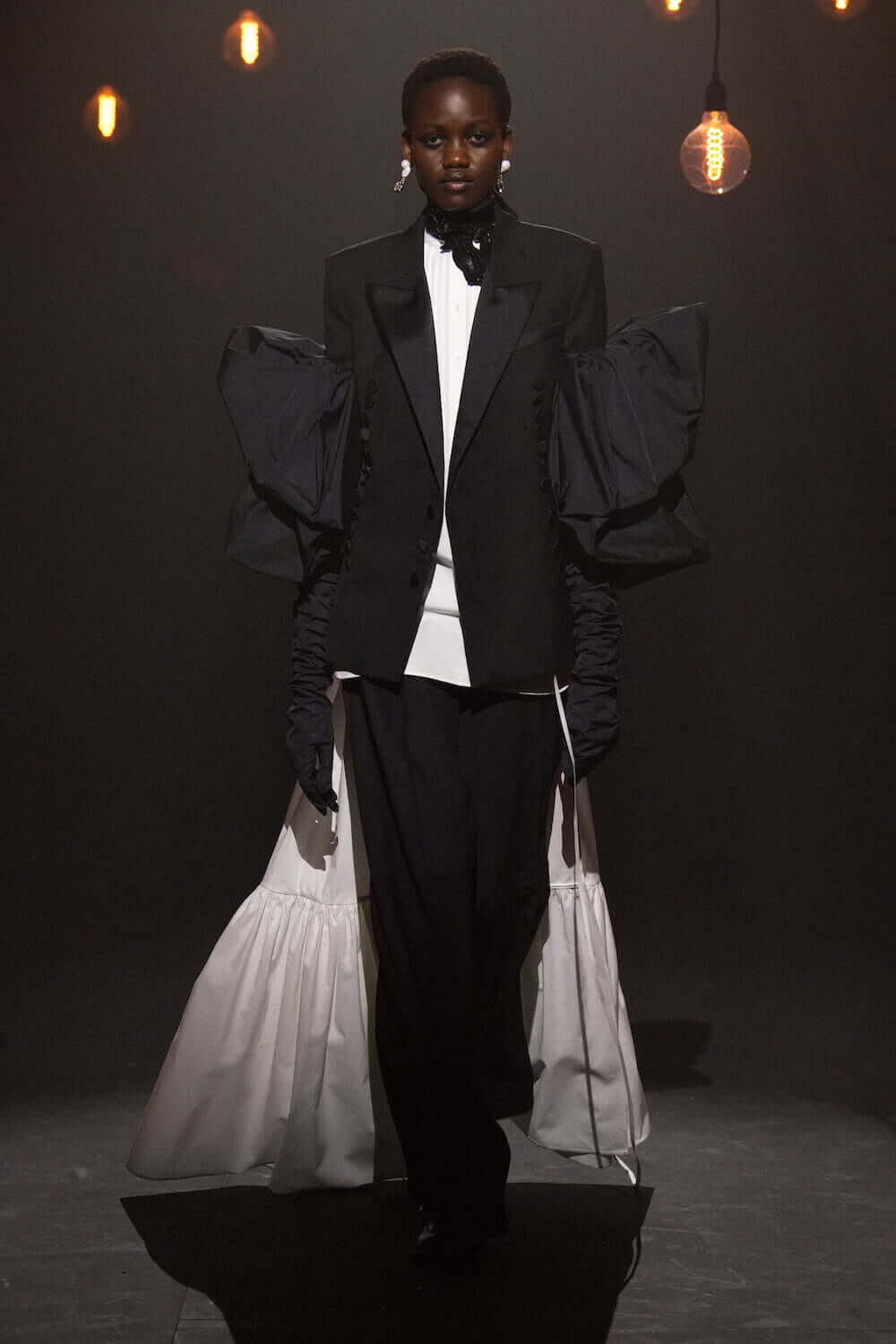 Are you in the mood for gothic Victoriana? Erdem is. He was Inspired by the renovations to his Bloomsbury townhouse which he discovered was a house for fallen women in the 19th Century. Peeling back the layers of arsenic green wallpaper he began to think about the lives lived there, discovering that by 1892, the house had been a sanctuary for 3216 women. With them in mind, he lavished his collection with jet beads (made fashionable by a mourning Queen Victoria, who sourced them from the Yorkshire town of Whitby, of Dracula fame). He played with Victorian silhouettes from flounced hems and full skirts, to ballooning leg-o-mutton sleeves which appeared on gowns and coats. The designer gave these historical elements a 21st-century twist by presenting his swagged, lace dresses and taffeta-sleeved overcoats in neon green and orange. rave-meets-romance? That would have had the old Queen reaching for her vapours.
