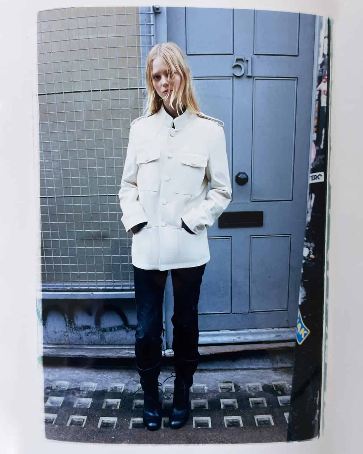 Shot in stairwells, hallways and out on the pavement, the collection leaned into the “reality of everyday life”, building on the slick, city-ready silhouettes of SS26. This season, that sense of refinement came through in full force. Proportions felt sharper and more deliberate: ribbed knitwear sat close to the body under leather bombers and military-leaning cargo coats, while slender trousers were paired with neat collared jackets.