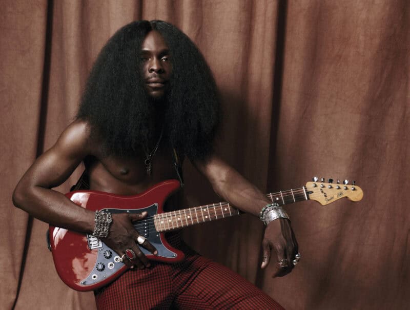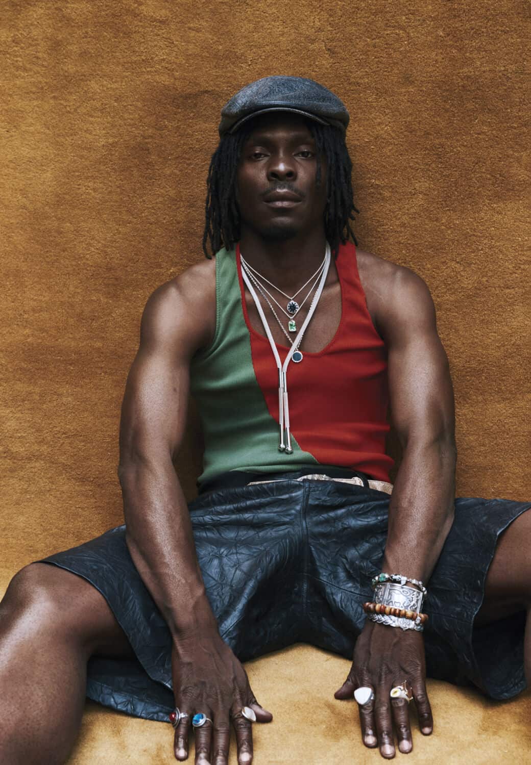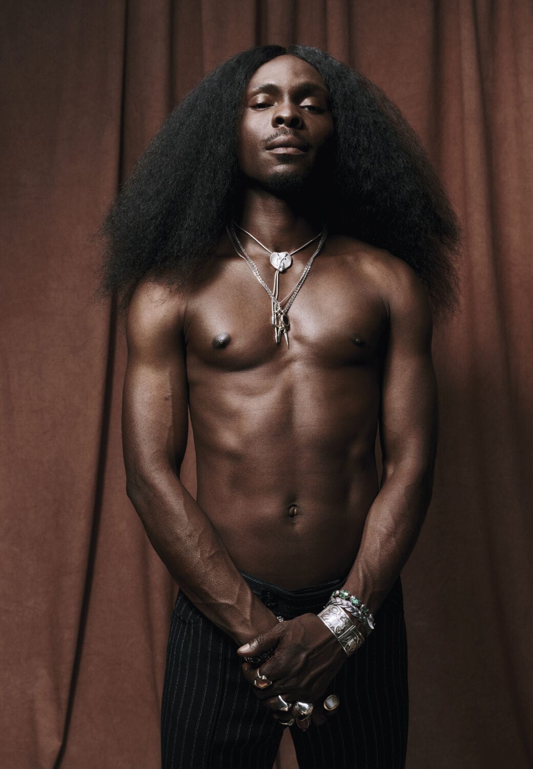 “My mum bought me my first guitar,” he says, describing his childhood as one surrounded by music. “A lot of Black music,” he corrects himself. Yoruba funk, early millennium R&B, hip hop, Afrobeats and jùjú were all present, reflecting the musical heritage of Azekel’s native country. Born Ademola Azekel Adesuyi in Abuja, Nigeria’s capital, he moved to East London when he was seven, where his musical exposure was restricted but not absent, especially for a persistent teenager intent on new discoveries. “I found things online,” he says of how artists like The Smiths and David Bowie infiltrated his sonic palette, bumping grime and garage (the sounds most prevalent in Ilford and Newham, where he grew up) onto the bench. It was around this time he started to realise the power music has. “It gave me a different world view without having to move,” he says. “It helped me have a different understanding of expression from a young age.”