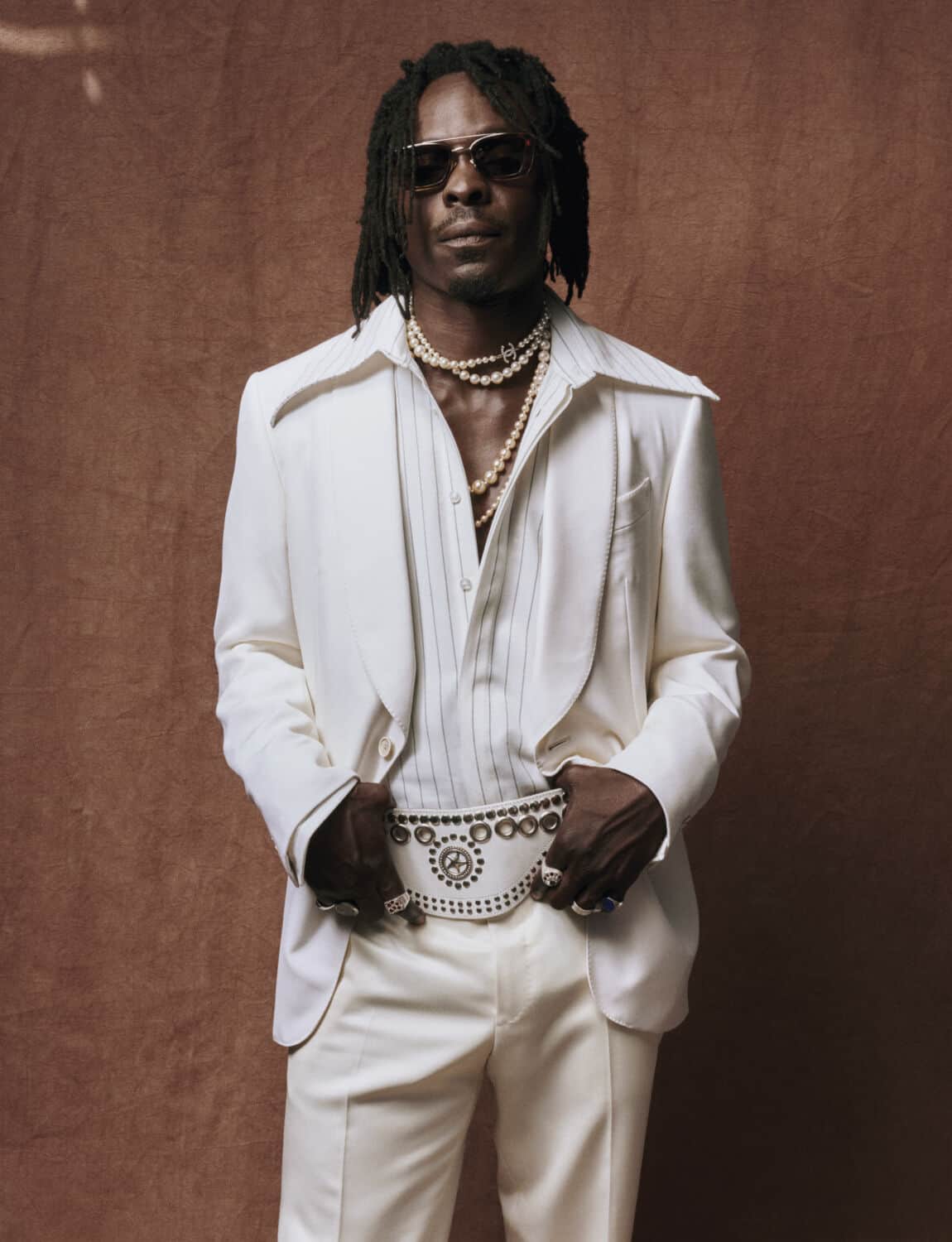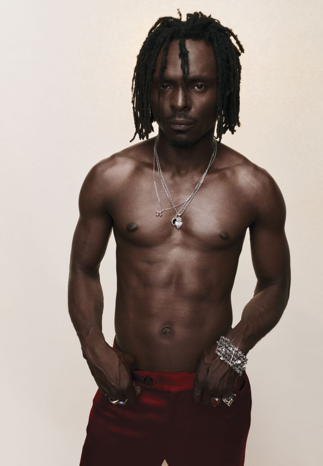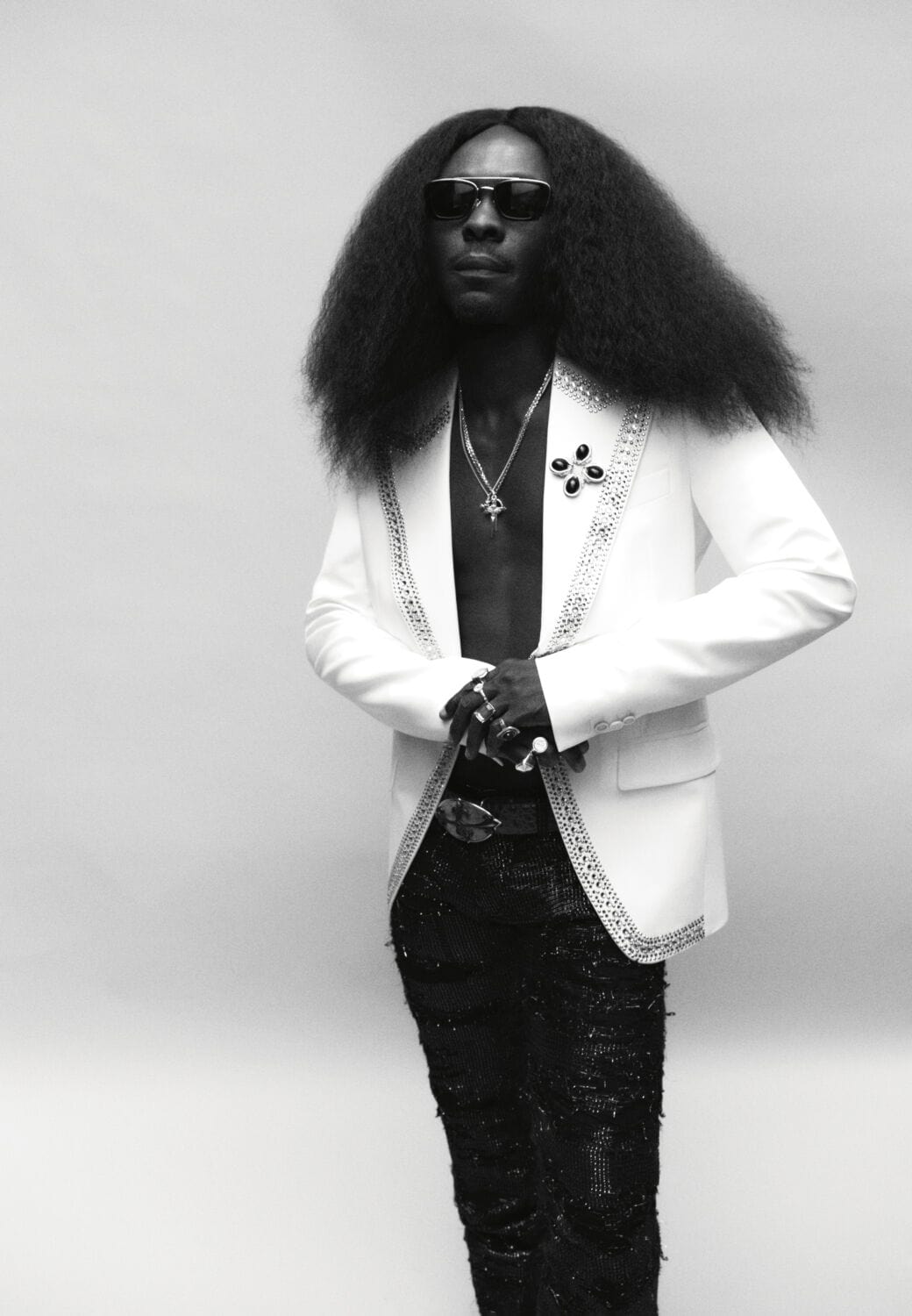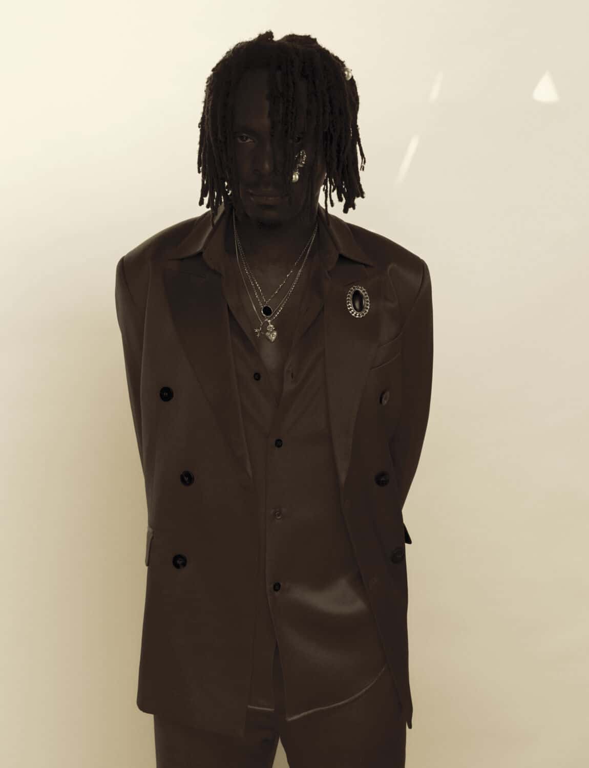 On the cover AZEKEL wears coat by MCQUEEN, trousers by ERNEST W. BAKER