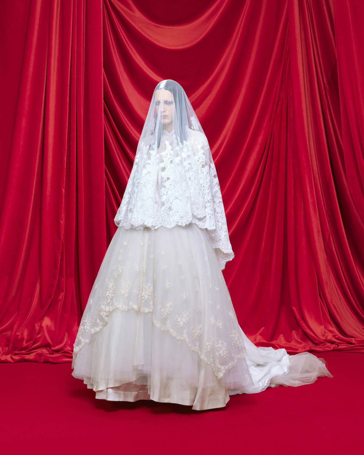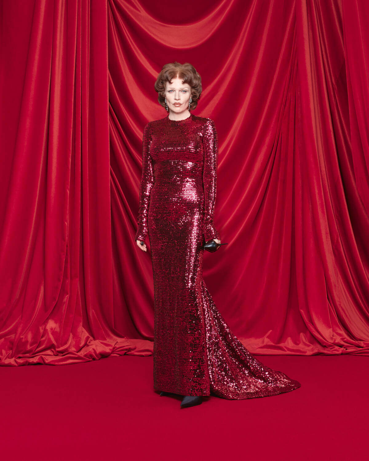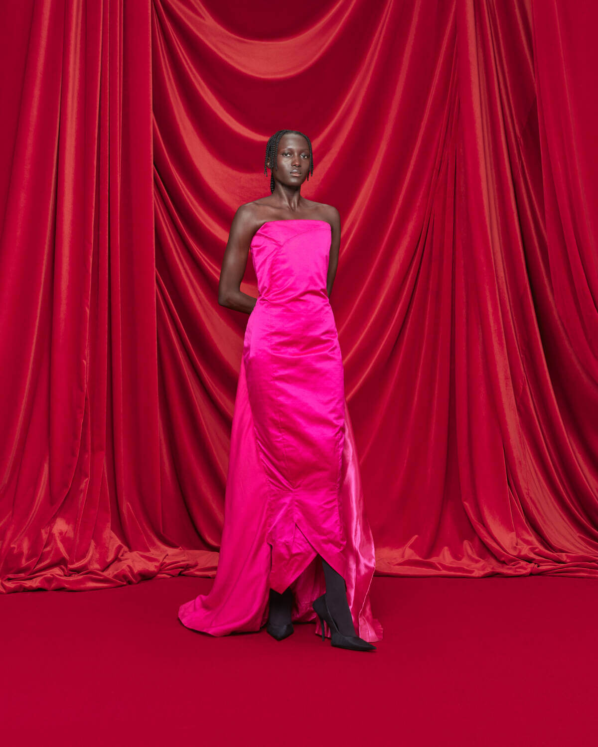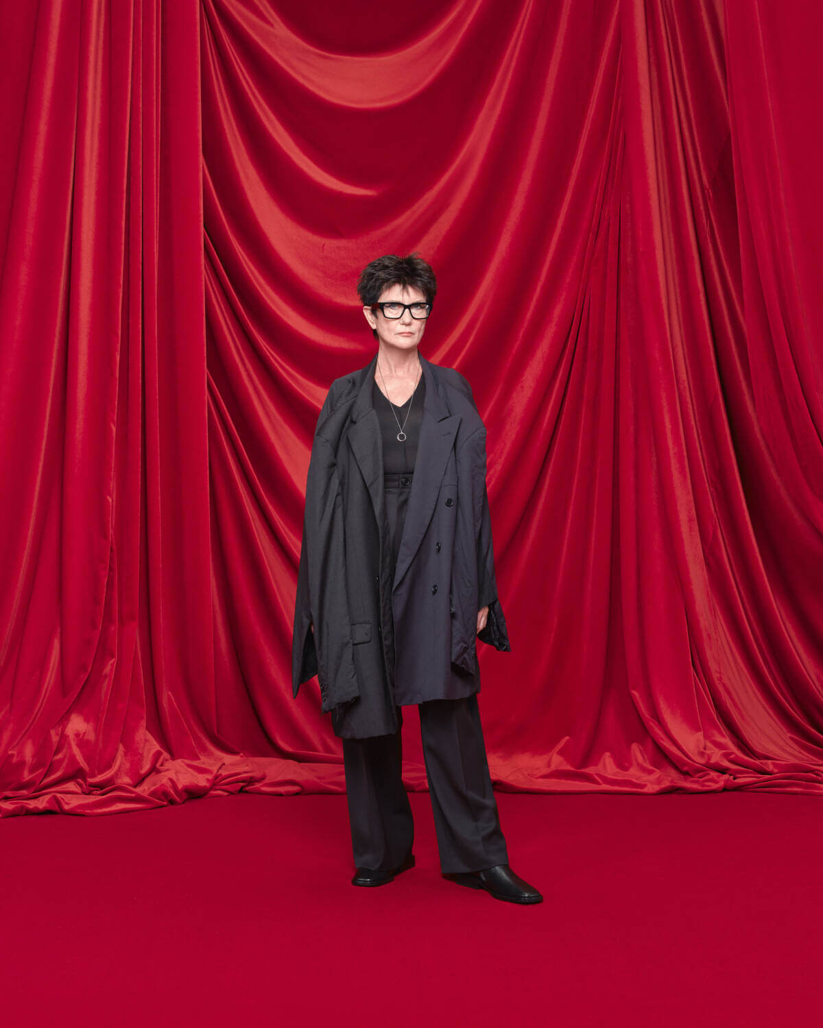 Inside a lush red velvet curtained theatre, the sombre, rich strings of BFRND’s (Demna’s husband) “Fugue in D Minor” played out. Accompanied by the ambassador of the house, Isabelle Huppert, over the soundtrack the actress recited instructions about how to make a tailored jacket. Demna’s mother Ella opened the show in a two-tone jacket. This was a personal collection dedicated to the ones closest to him and a reflection of his world and community – and what fashion is. This was pure Demna-core.
