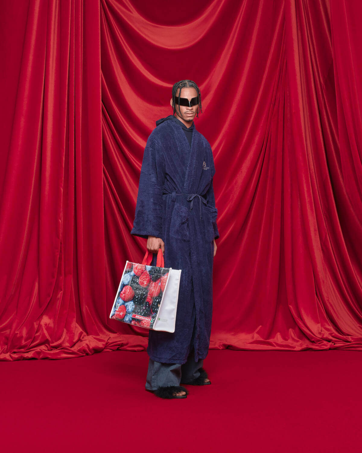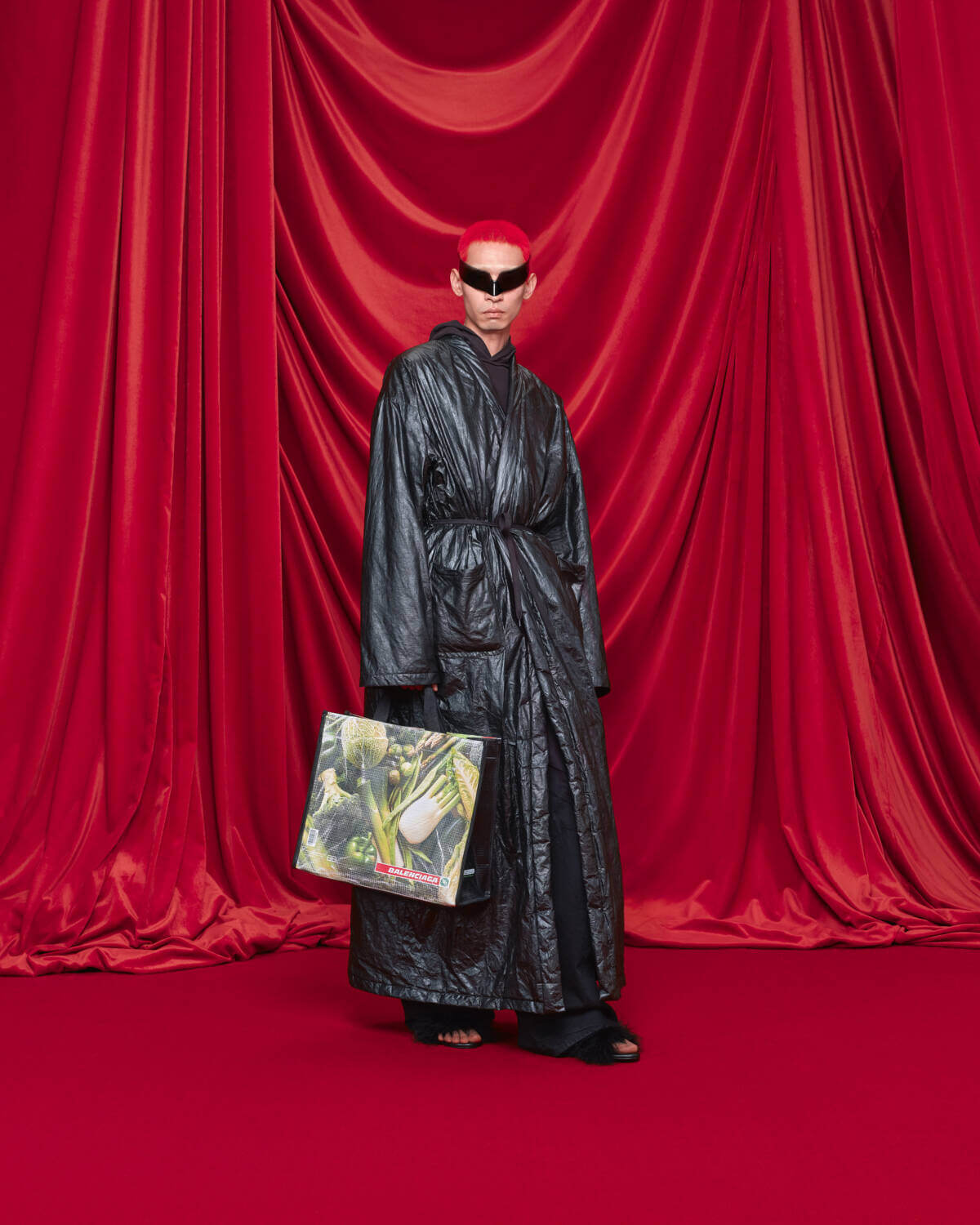 A personal experience informed the collection – when holidaying with his husband this summer, a table sat next to him at a restaurant asked to be moved away from the pair because of the way they were dressed. And because Demna is Demna, he conducted an “anthropological experiment,” buying a a set of ‘normal’ clothes to become the “Demna the world would tolerate”. “I felt disgusting,” he said backstage after the show. “It confirmed to me the only way I want to be and the way I want my work to be is to be loyal to myself and not trying to be someone or something else. I will never fit in.” And so, steering away from the idea of luxury, because he “doesn’t care much about luxury, I don’t want to give people the proposition to look like they’re rich, successful or powerful,” he did what he does best, and made clothes “from down, up”.