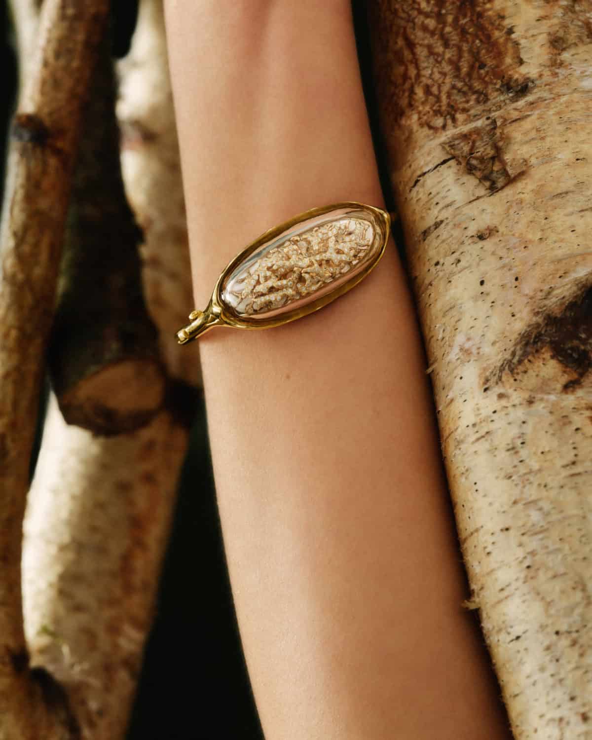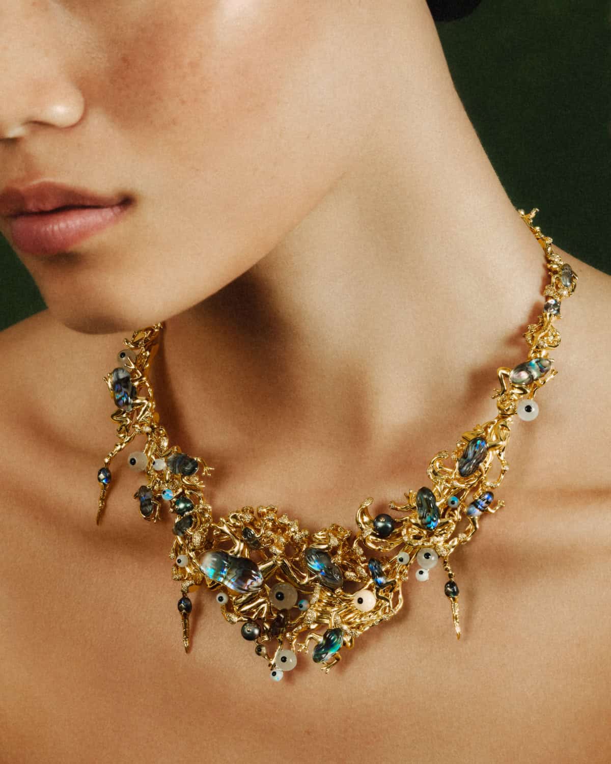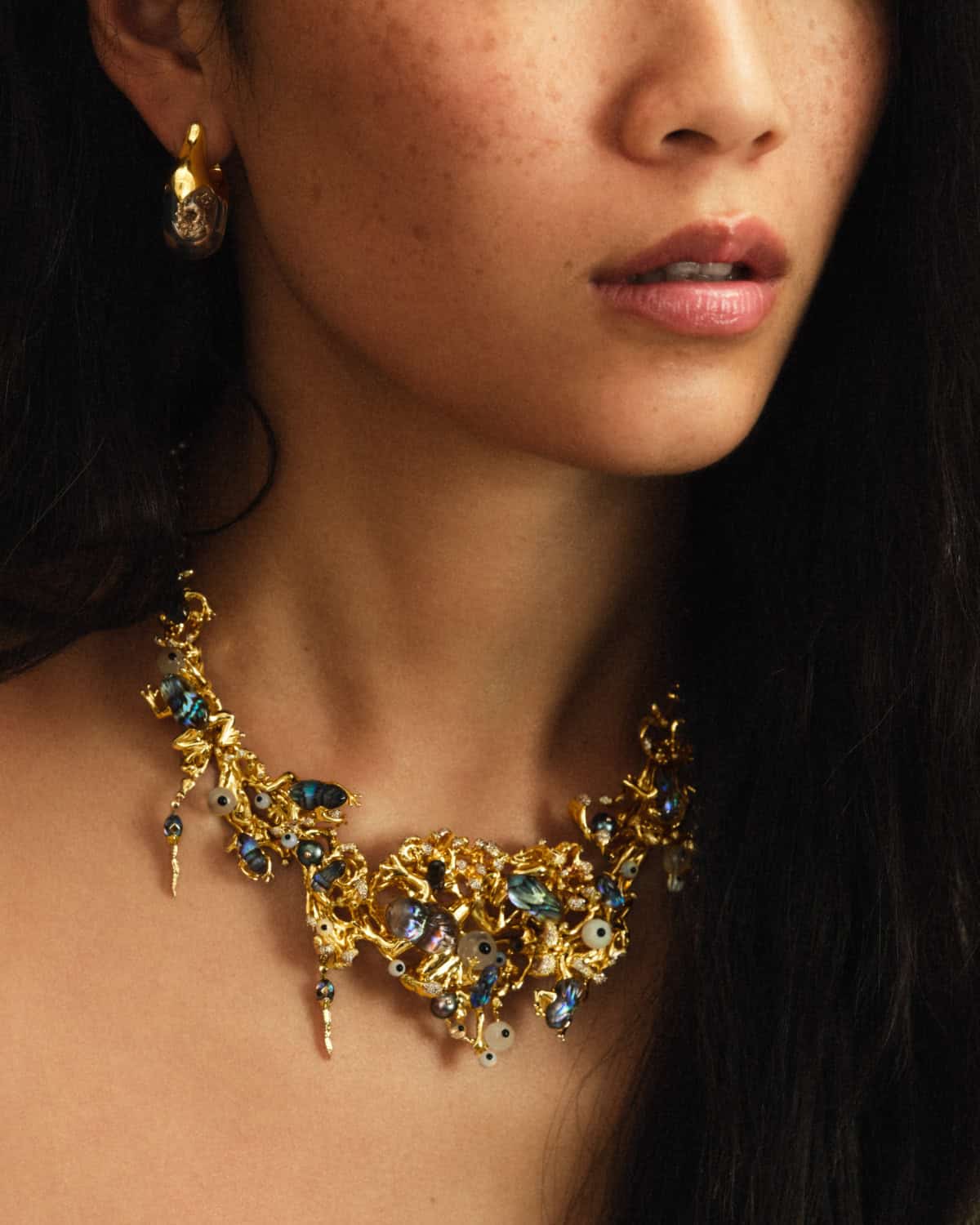 Van der Velden launched her eponymous brand in 2005 from her Amsterdam studio, where she continues to create pieces that sit at the intersection of wearable art and fine jewellery – fixating on the quiet magic and mystery of the natural world. Through dainty and statement necklaces, rings, bracelets and more, she hones in on her outdoorsy childhood – from building treehouses with her brothers to polishing her mother’s sculptures. This background in sculpture – from the influence of her mother, to her education at prestigious institutions including the Royal Academy of Art, The Hague – is incorporated into her architectural pieces. Having also studied fine art in Florence, and learning form through detailed anatomy classes, her jewellery-making would start as a side project. Her next steps were to study jewellery at Goldsmiths college where she became well-versed in the complex language of jewellery design and began working with designers at Amsterdam fashion week, adorning the runway.
