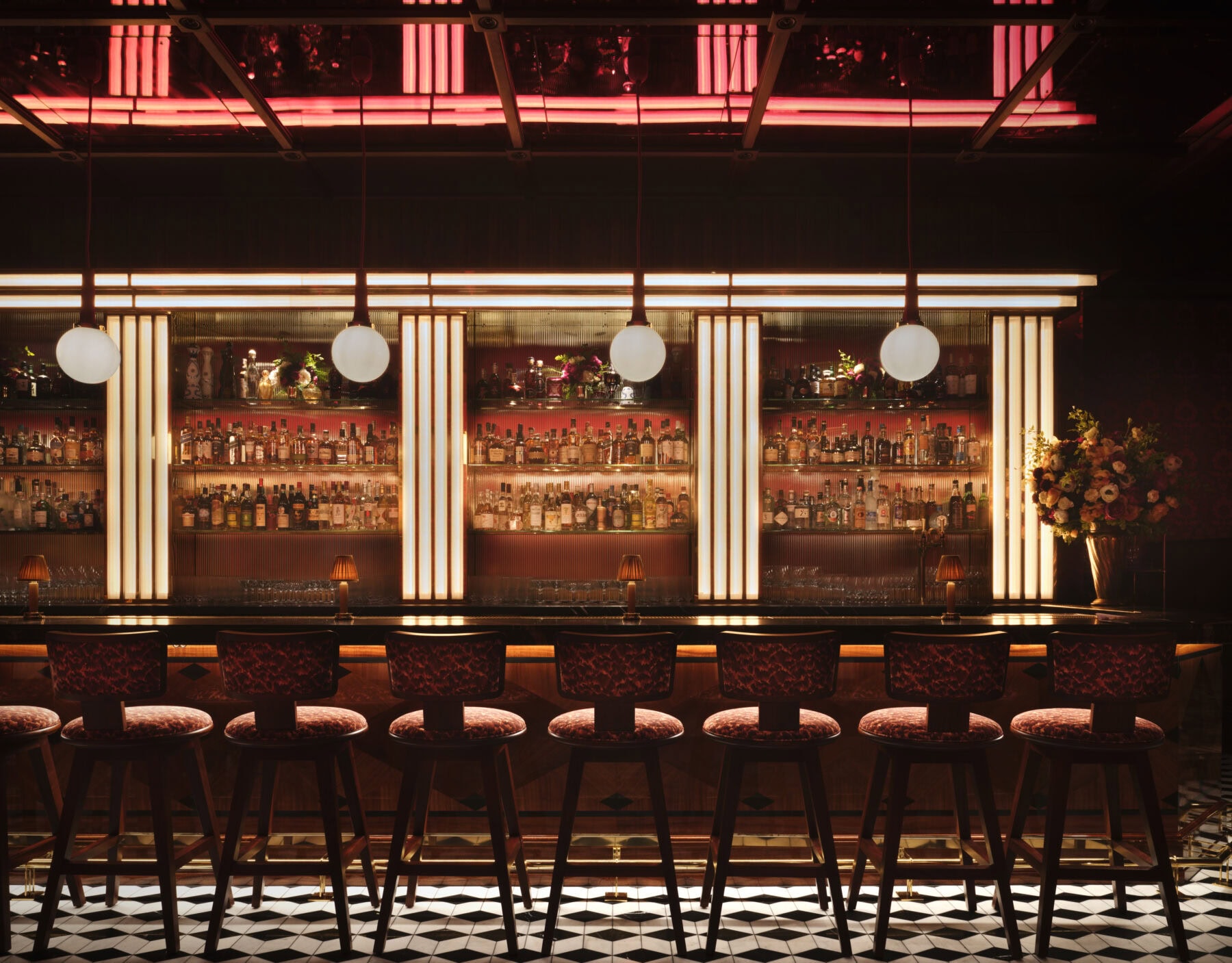 The London dining room marries New York swagger with English polish – deep hues, weighty textures, flashes of contemporary art. “We never wanted to create carbon copies,” Jeff said. “If you come to Carbone London, it looks very different [from Carbone New York for example]… but always tying back to core Carbone principles.” Mario added, “If you know Carbone, and you come here, you’re like, ‘oh, this feels like Carbone’, but it’s also new… This is the London one.”