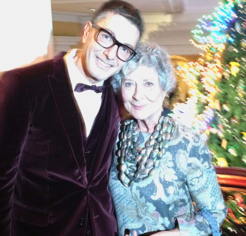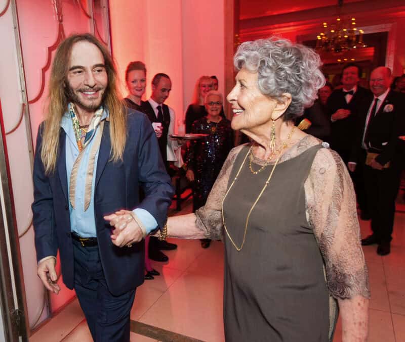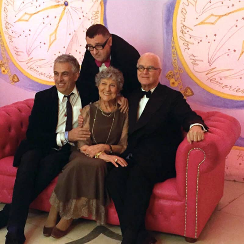 Mrs B celebrating her 90th birthday in 2016 with Rifat Ozbek, Alber Elbaz and Manolo Blahnik