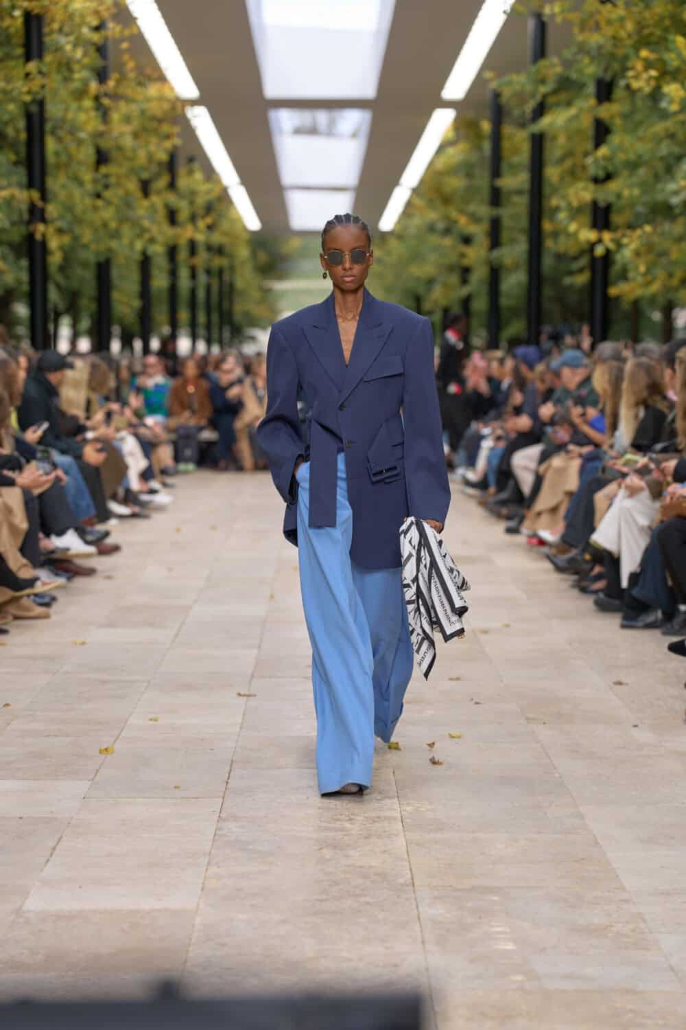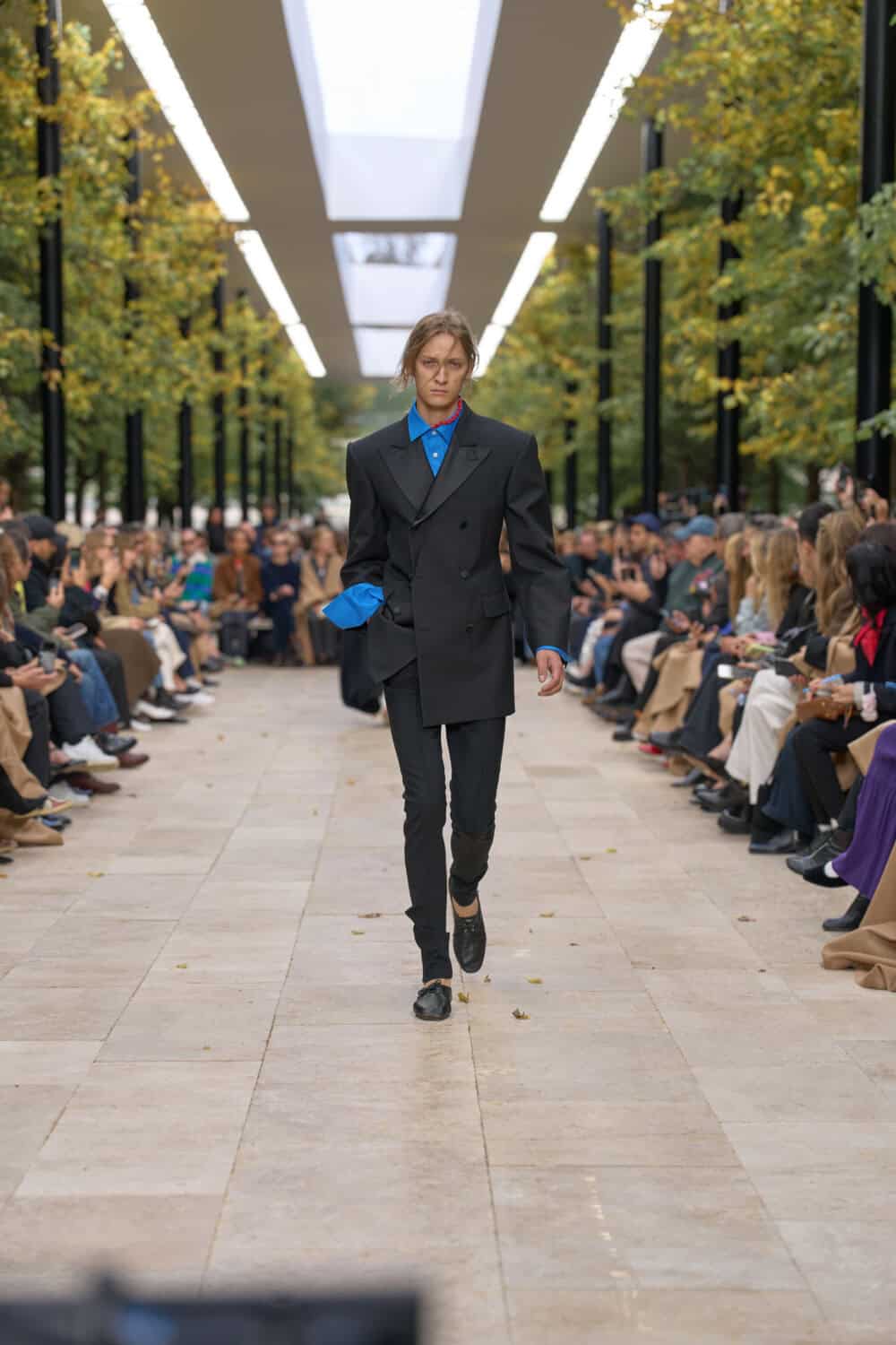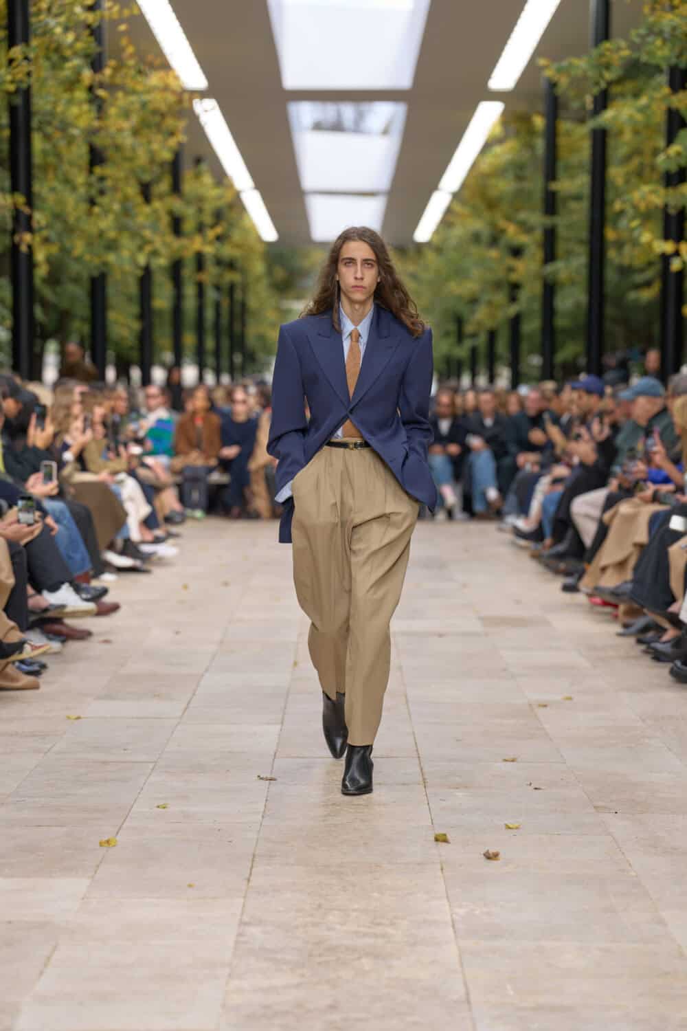 Michael Rider’s ready-to-wear debut for Celine unfolded en plein air at the Parc de Saint-Cloud, perched on an elevated runway beneath the day’s blue sky. Sunlight and a soft breeze gave the clothes room to move, and what came out was a confident continuation of the resort show he staged in July.