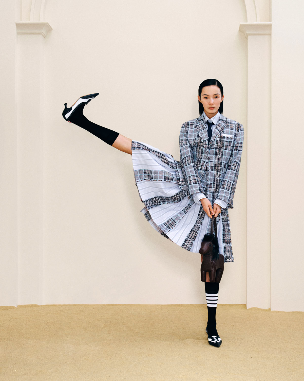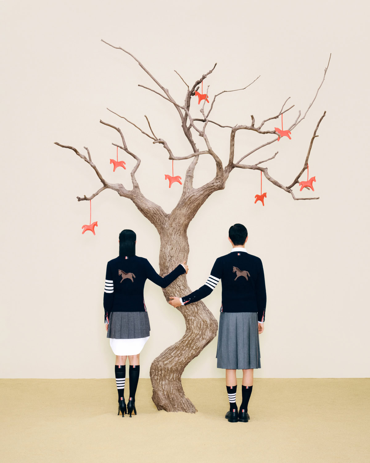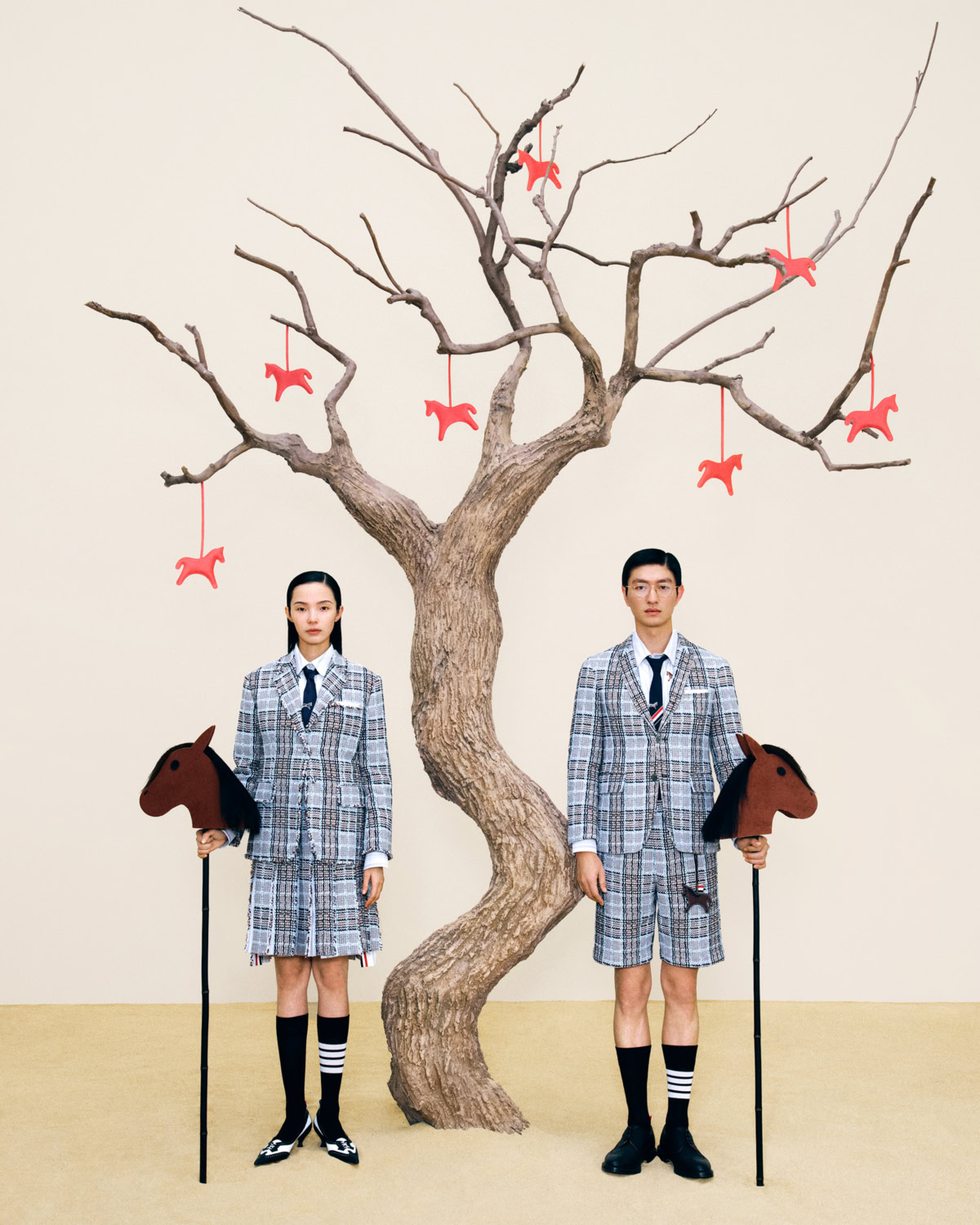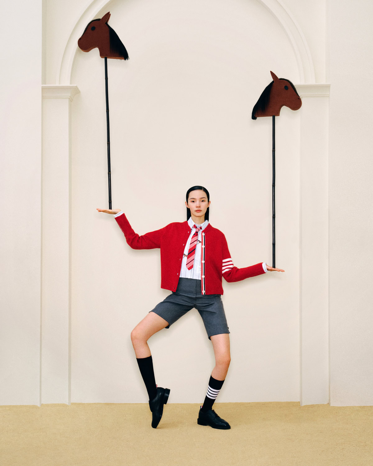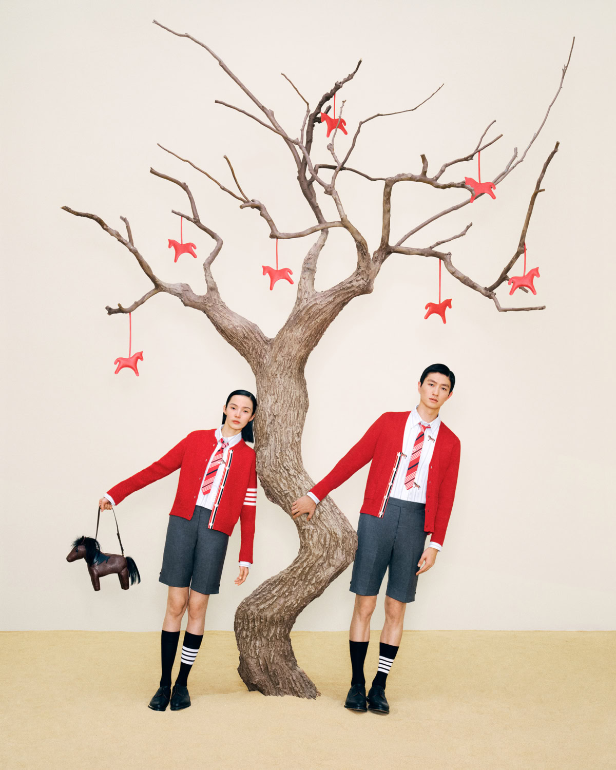 The Encounter (如期而遇) is the hottest iteration of the original campaign created in 2025 for Lunar New Year. Across a series of still images shot by Li Sihao and a short film directed by Gu You, Miu Miu has symbolised the free-spirit of the horse, blending modernity and memory in cinematic form. The film was shot next to the Gongwang Art Museum located on the architectural landscape of Hangzhou – surrounded by wintry mist, red spheres and hilly viewpoints. The accompanying collection is filled to the brim with structured yet relaxed silhouettes in a palette of neutrals that are brought out by sudden and momentary pops of prosperous rouge. Auspiciously charming accessories include the Wander, Arcadie and Aventure bag styles and customisable lucky bag charms, amongst other exclusive shoppables. Additional festive activations will arise on Donghu Road, Shanghai (Jan 23-25), and Lexie Liu, who stars in the campaign alongside Zhao Jinmai, will release a single on Jan 19 titled Chun alongside a special launch at the Miu Miu iAPM store. A subtle but thoughtful provocation, Miu Miu canters into the Year of the Horse with stylish vitality, and a little help from some friends.