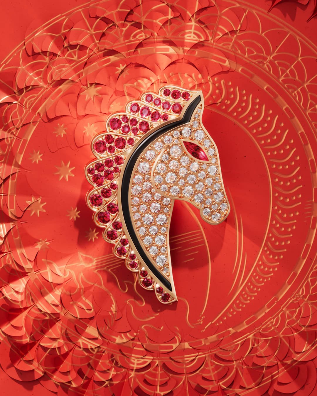 Honouring togetherness within fresh starts, Bvlgari has barged into the stable with special-edition jewellery, timepieces, accessories and fragrances that blend favourable tones, exquisite craftsmanship and iconic brand motifs. The star of the show is a limited horse brooch crafted in yellow gold that’s reminiscent of 1970s heritage. It is thoroughly coated in over 40 cabochon rubies, pavé diamonds and black onyx – a talisman for strength and success, reflected in the 130 hours spent designing and 50 hours of goldsmithing the piece. Classic designs are reimagined with celebratory undertones, for example, the Serpenti Viper which features ruby accents and gold boules. To complete the festive air, Bvlgari Parfums have produced a Chinese New Year fragrance box featuring complimentary brand symbolism in a ritualistic scent celebration of joy and lucky upcomings. Good fortune that smells expensive… count us in. Shop here.