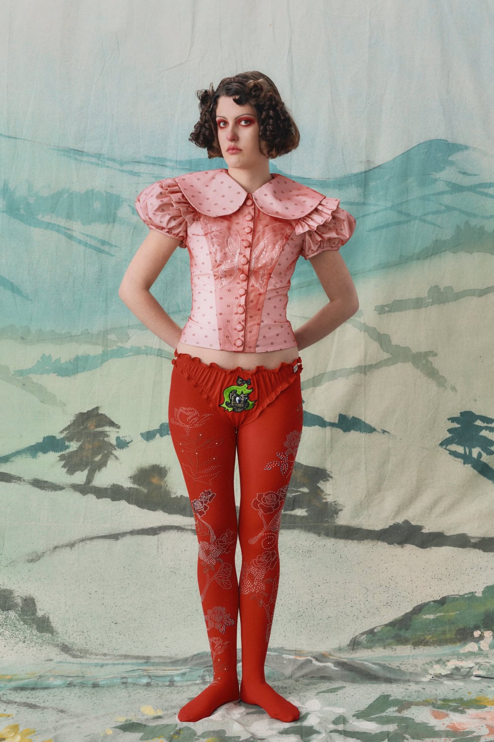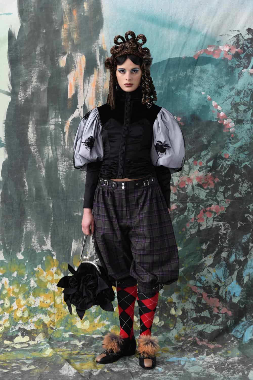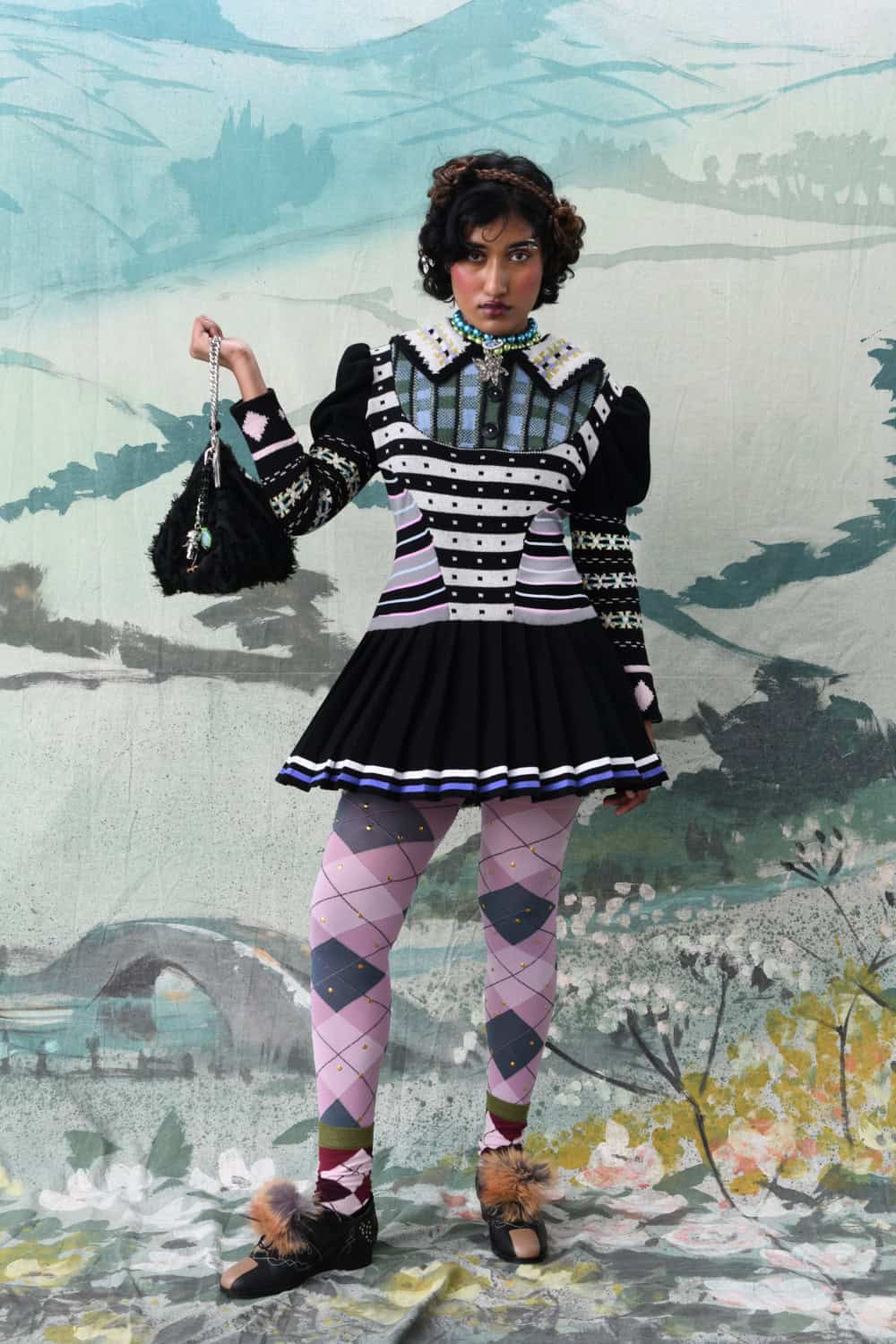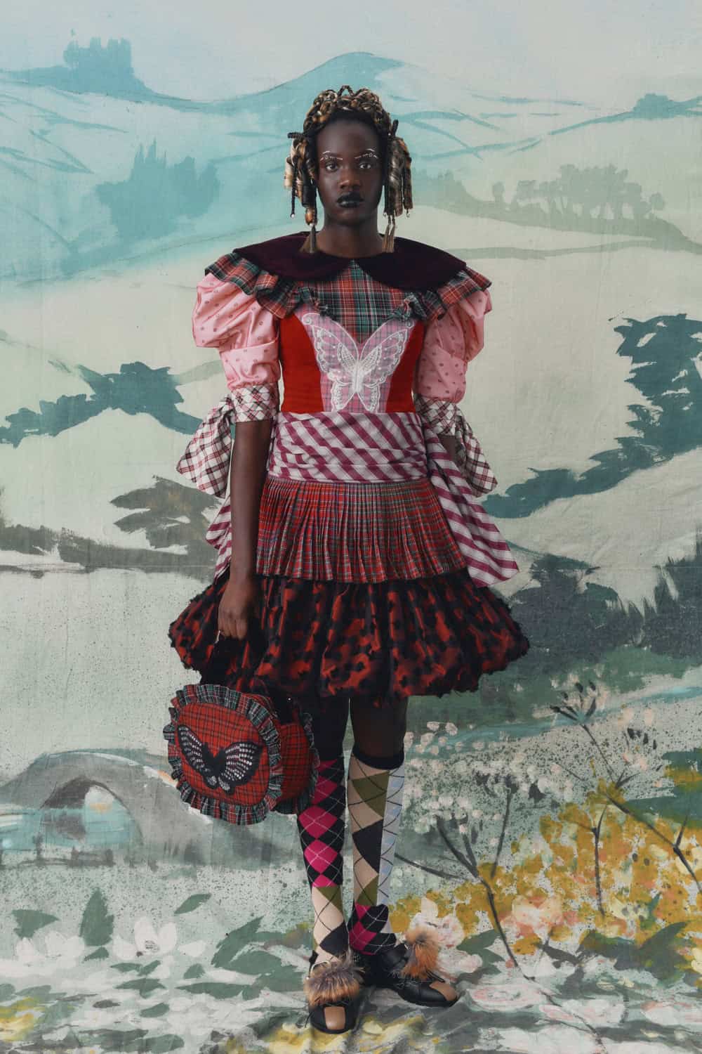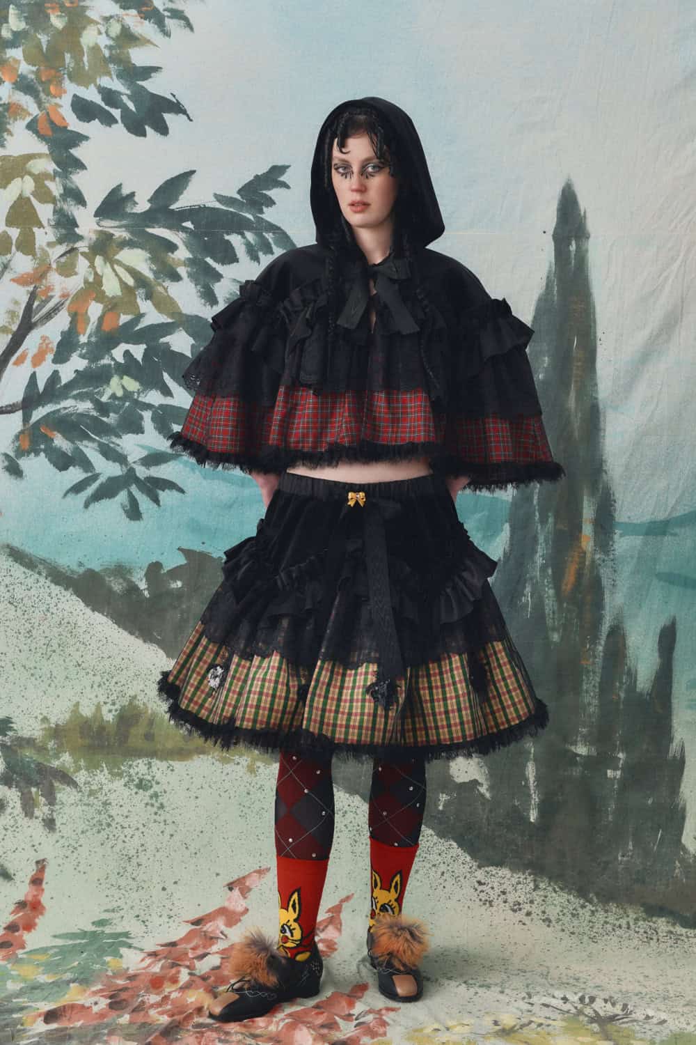 Who would have thought the Chopova Lowena girls were into golf? Their collection, entitled Too Ripe and Ready by Half, after the regency era slang they’ve become obsessed with, fused fruity Regency silhouettes with vintage golf style and accessories, all layered on top of their signature salty ‘n’ sweet folkloric maximalism.