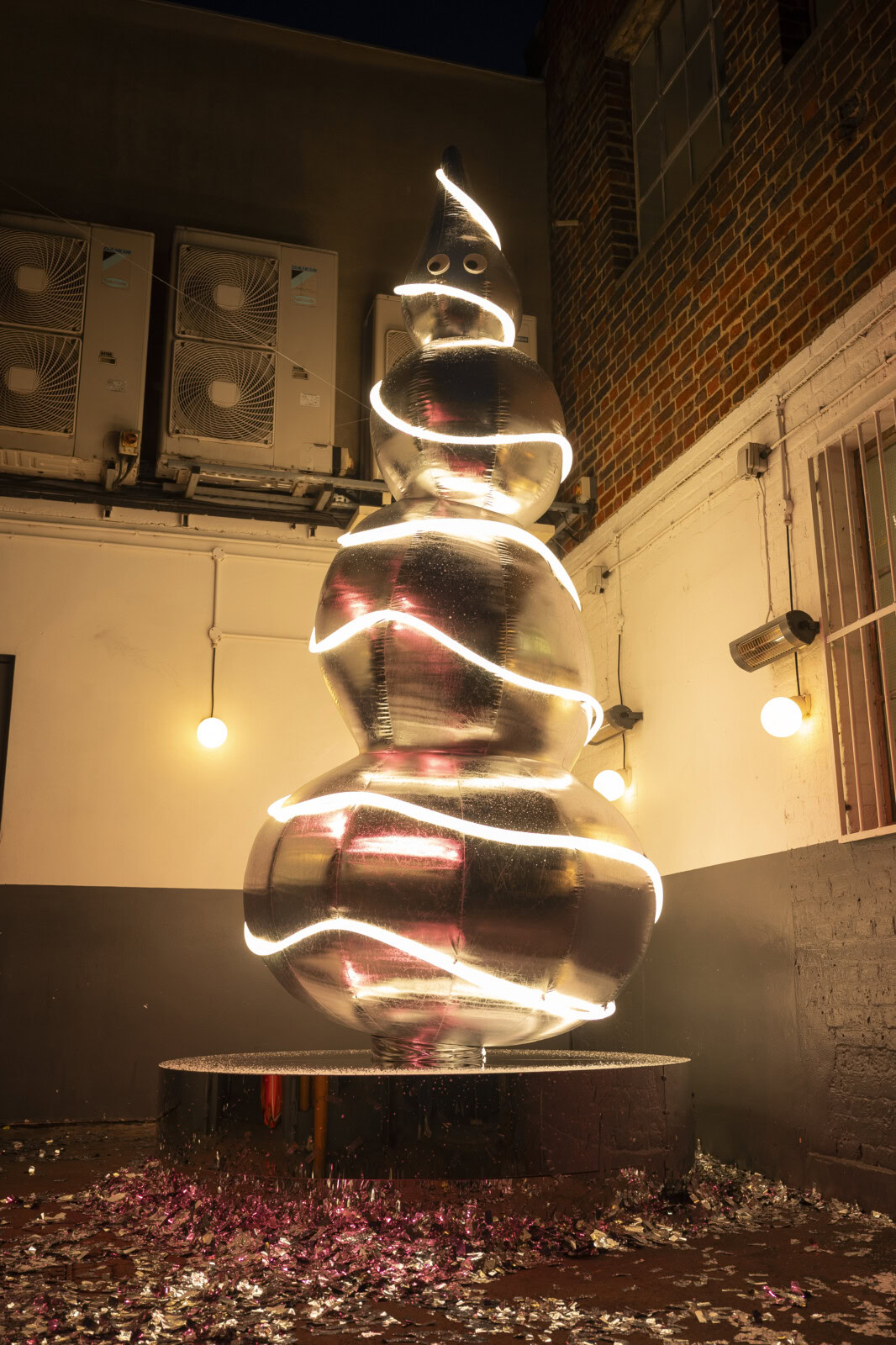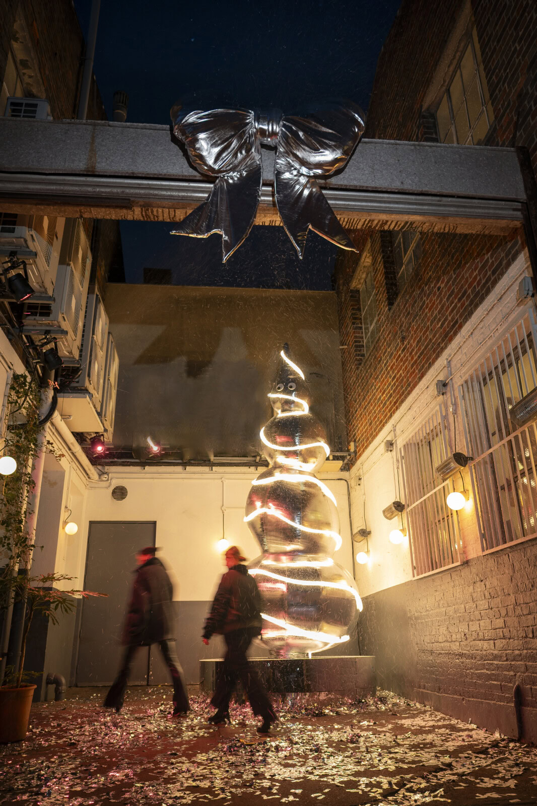 Fashion’s favourite restaurant Bistrotheque rings in the festive season with a chrome, inflatable Christmas sculpture in place of a coniferous tree. Here, Good Times Collective, an experimental production studio, has designed a custom made voluptuous ode to the female form. The ‘tree’ stands tall in the open courtyard of the restaurant, illuminated by a thick strand of glimmering LED lights with googly eyes planted at the top of the sculpture as it looks down onto visitors. Unruly, joyful and gloriously expressive, it’s an icon of the “silly season” rendered shiny and oversized. Ara Lopez