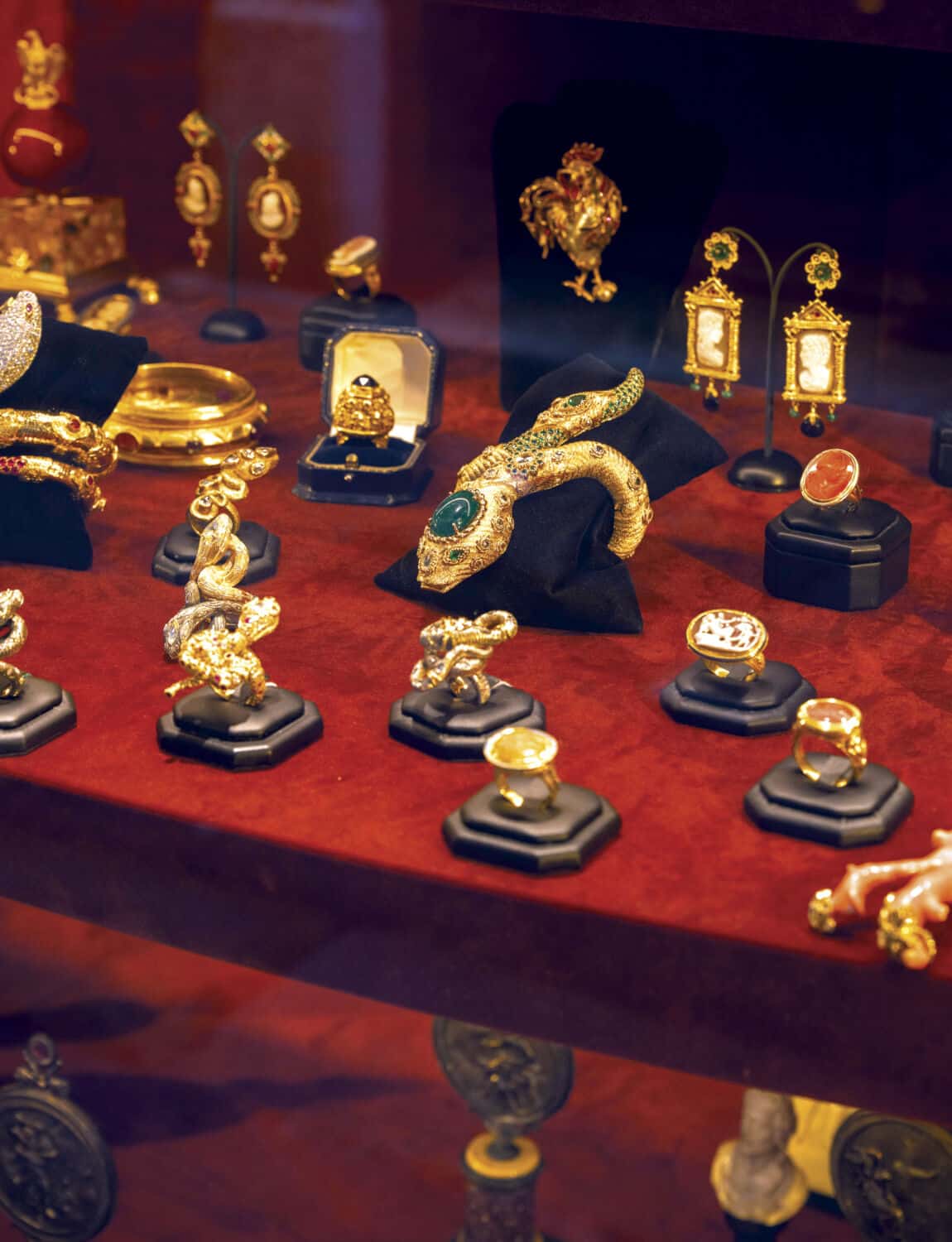 For decades, visitors to Venice have sought out Codognato. Tucked away on Calle Vallaresso, a few doors down from Harry’s Bar, its windows heave with elaborately jewelled skull rings, snake bracelets, bejewelled antique cameos, poison rings and memento mori skeleton pendants. Each one-off piece is handmade in 18-carat gold, precious stones and enamel by a tiny stable of Italian craftspeople.