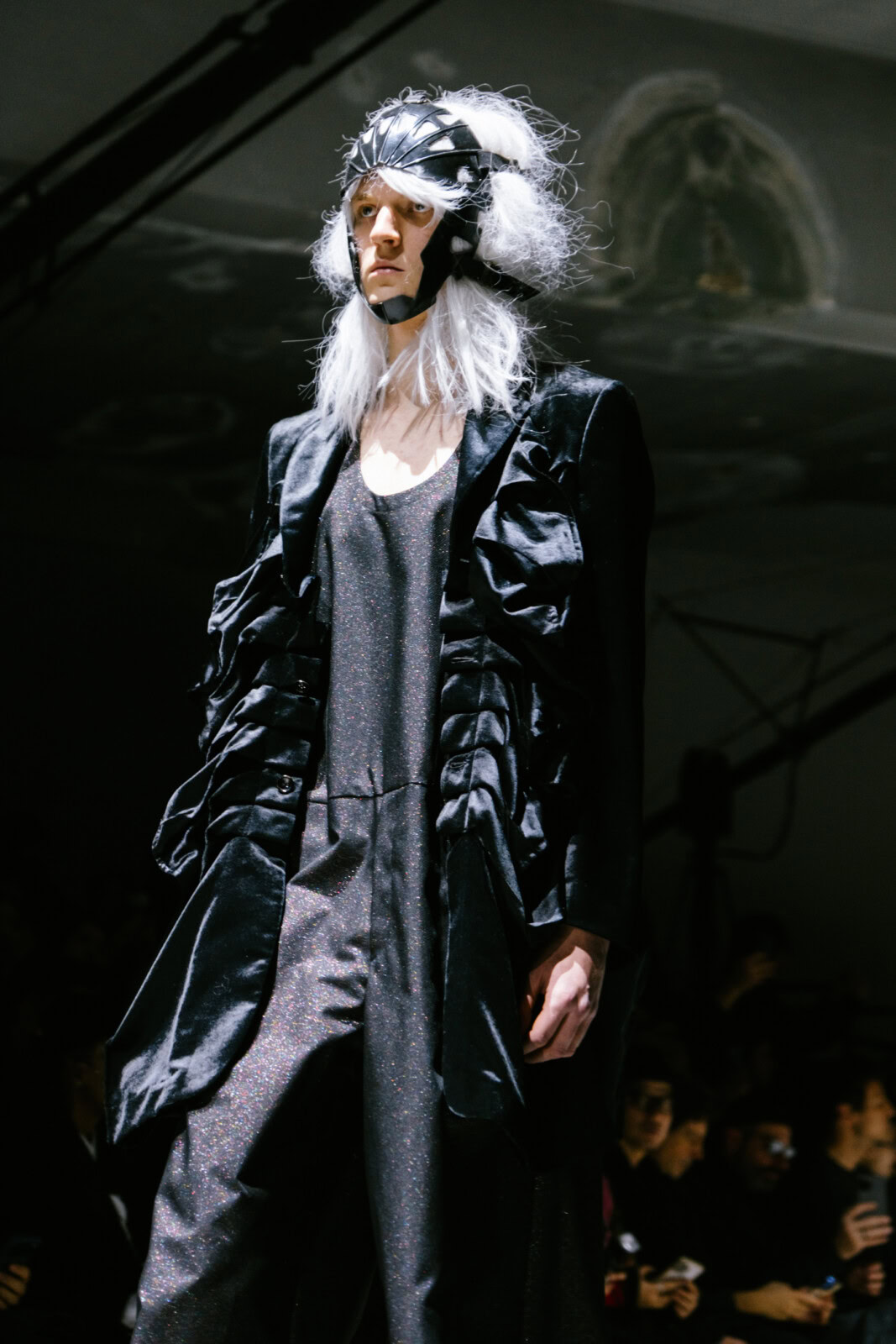 “Let’s get out of the black hole”. Though Rei Kawakubo’s words may be few when it comes to her show notes, her message rings clear. With her latest Comme des Garçons Homme Plus outing, it was as if the designer wanted to bring a moment of lightness to these dark times; a uniform to charge forward in to a place of optimism.