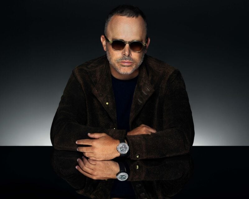 Water, throughout humankind’s existence has served as a source of inspiration for creators from poets to composers to filmmakers. It’s no surprise then that it holds significance to Daniel Arsham as the Hublot ambassador draws from the element’s fluid nature to inform his work. The watchmaker and the artist first announced their partnership back in 2023 in a spectacular manner, by creating a sundial made of ice and snow in Zermatt, at the base of the Matterhorn. Called “Light & Time”, the installation was fleeting and melted over the course of a day, reflecting Arsham’s overarching interest in the way temporal lengths can theoretically intersect. “My work is about collapsing time. You’re not quite sure if it’s an object from the past or the future,” he famously said in a Ted Talk in 2016. As a follow up in 2024 came the first tangible product: the MP-16 Arsham Droplet. A clever take on the pocket watch, it was designed to fit into the hand or worn as a necklace. And now, in 2025 comes their first official timepiece, the Hublot MP-17 MECA-10 Arsham Splash Titanium Sapphire.