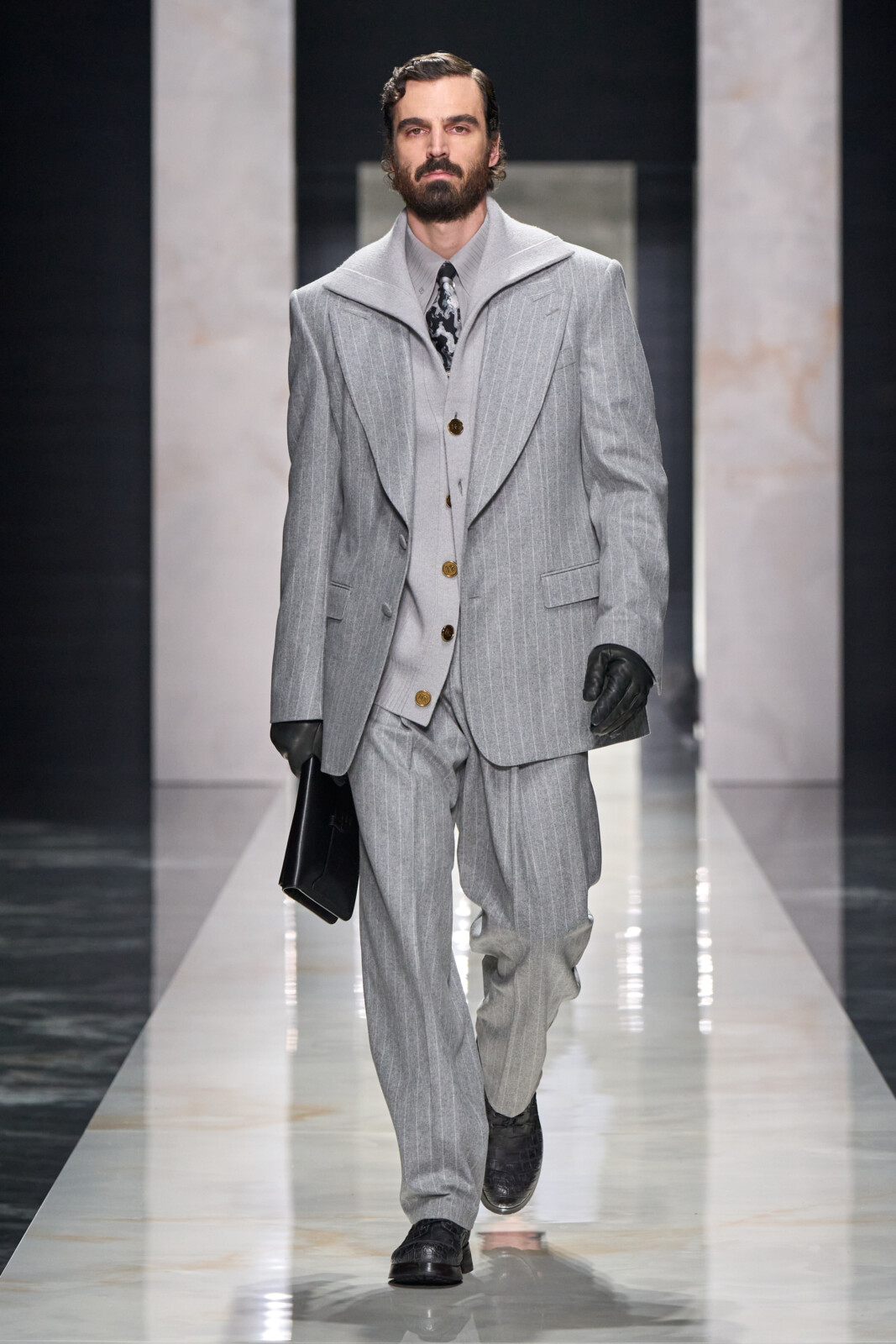 Dolce & Gabbana’s AW26 collection was called The Portrait of Man. Instead of focusing on a defined theme, the design duo wanted to celebrate individual style over  uniformity. Each of the 100 looks represented the different components that make a modern man’s wardrobe. The collection, they said, was “dedicated to the singular identity of every man”, defined in the show notes as “an invitation to move beyond global homogenisation and reclaim an elegant, deeply personal way of dressing.” It was a great message that would’ve been strengthened by a more diverse model casting.