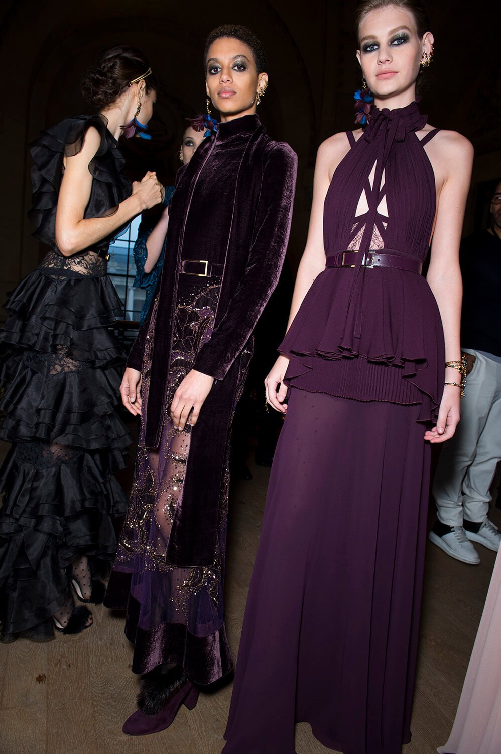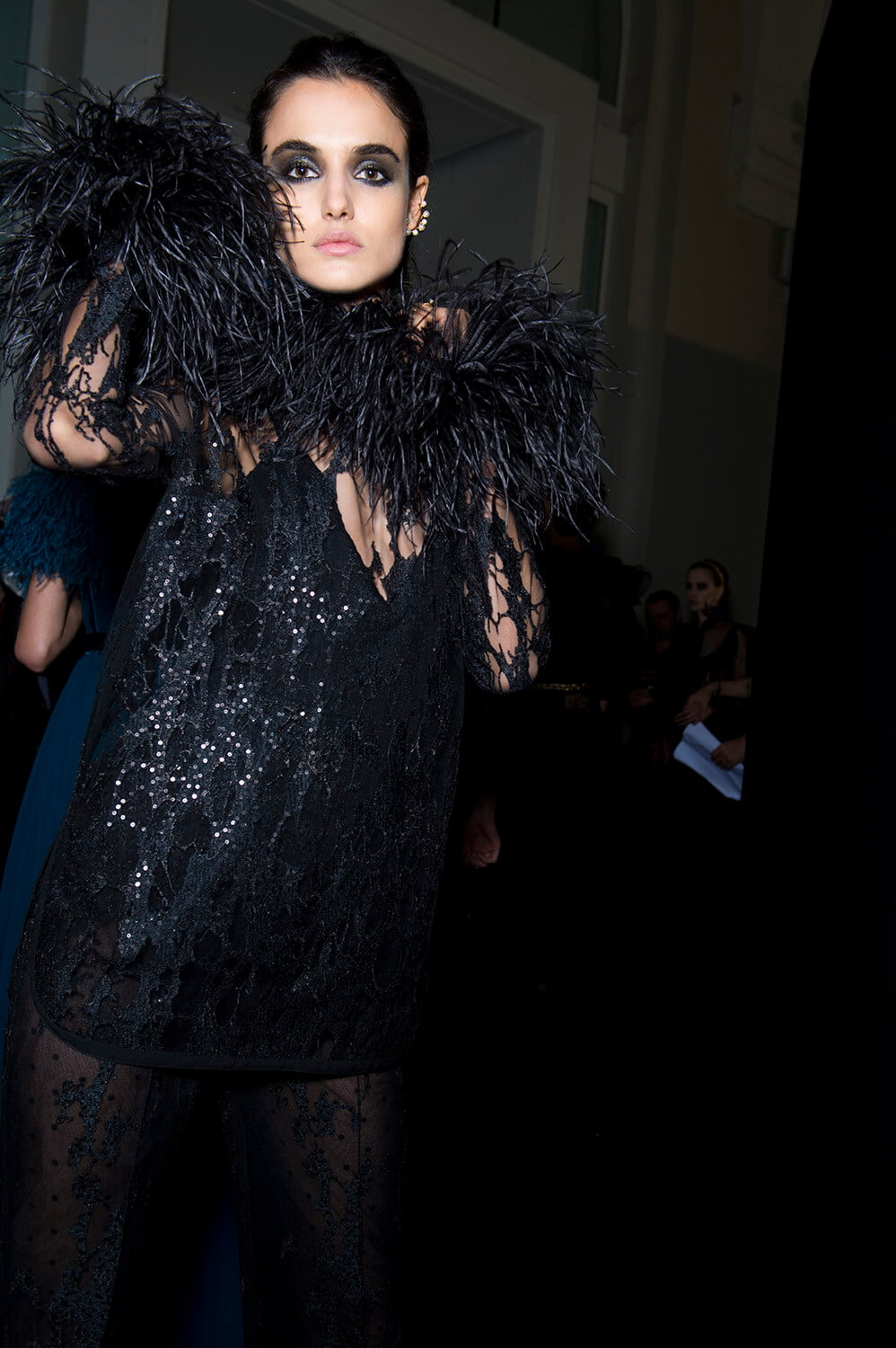 This was inspired by Giselle. The ballet, not the supermodel. Which is a bit of a dark and involves a group of dead virgin women who dance men to death. Whether or not that was the exact reference point Mr Saab was going for this season (there is this whole other redemptive love thing, blah-blah) we’re sticking with it because really, if you were going to channel any woman, why not an undead man-hating spirit dancer? And, on a more clothing-based note, there was undeniably something dark about these ladies, gothic almost – rich layers of black and deep purple, thigh-high leather boots and pants, woman-in-black Victoriana lace. Black fur trims that engulfed the neck. Not that this was austere. The opposite. It was sexy. Because how else is a woman to ensnare that errant gentleman than with say, a swish of sheer fabric, lingerie bearing gowns and layer upon layer of froufy ruffles?