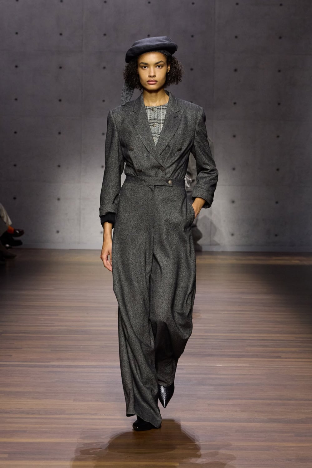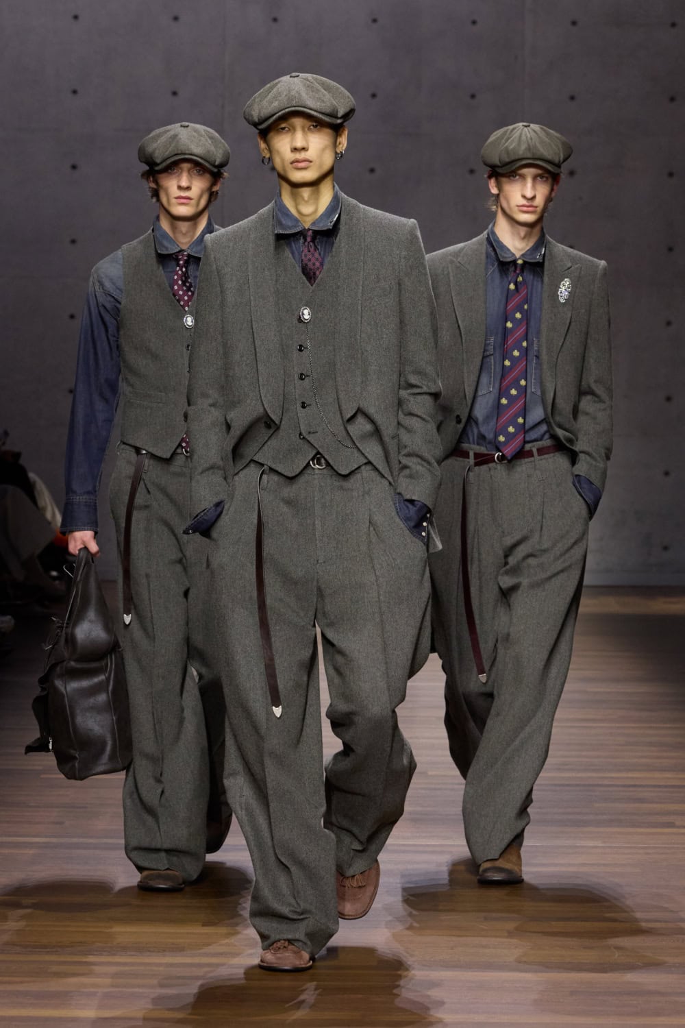 Called Maestro and presented against the backdrop of a fictional music school, the collection explored discipline and individuality in equal measure. British formal references – tailcoats, waistcoats and crested details – were softened through Emporio’s relaxed Italian sensibility. Silhouettes were vertical but fluid, with neat shoulders and an ease that prevented tailoring from feeling rigid.