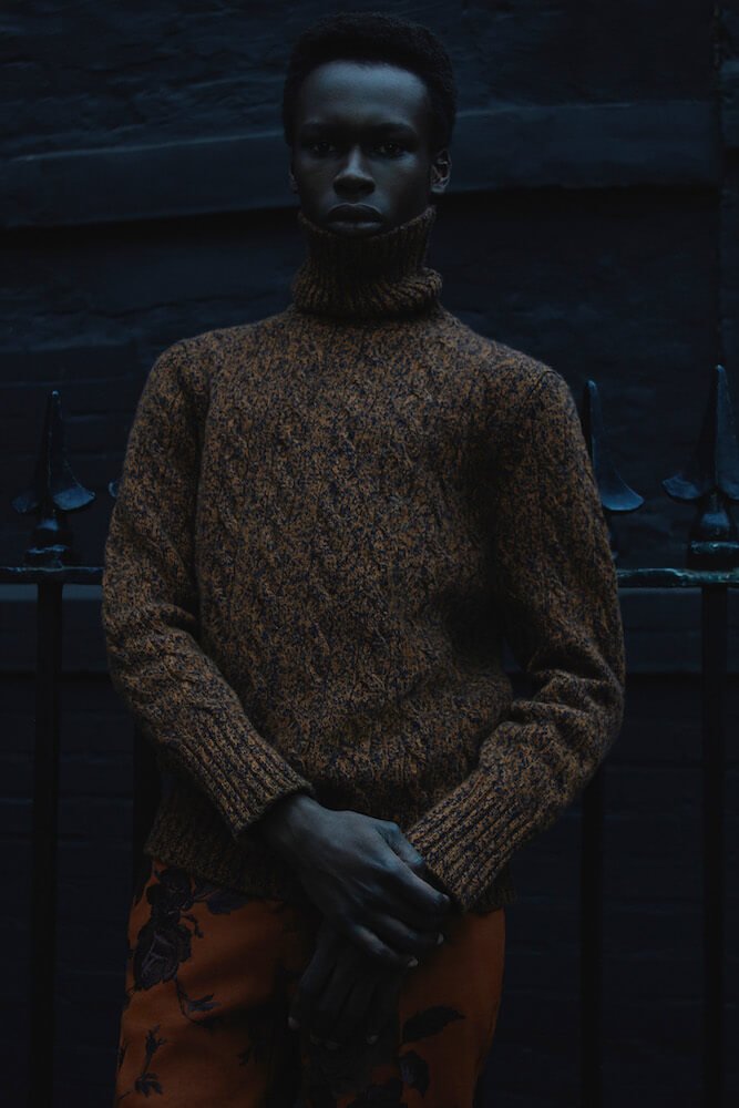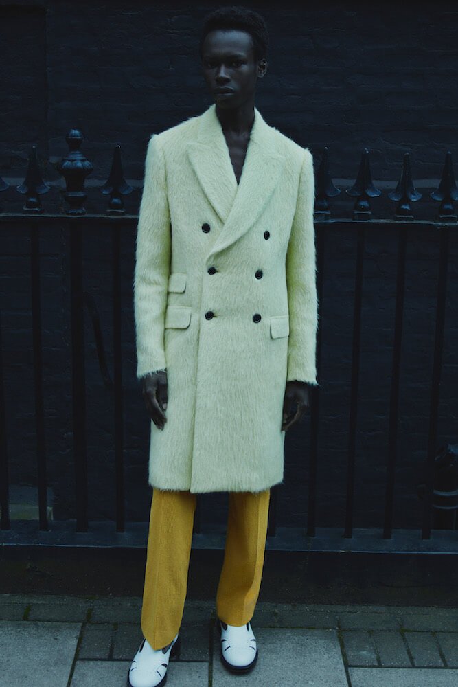 Lifting the saturated block colours of d’Ora’s portraits, the designer bleeds muddy yellows into gentle browns and subdued greens, seen across relaxed suiting, pyjama sets and overcoats (particularly excellent in orange boiled wool and a lime green brushed alpaca finish). The 20-look collection serves as a sublime blend of casual and dressing up garb done the proper way. Suited and booted for a hybrid working lifestyle.