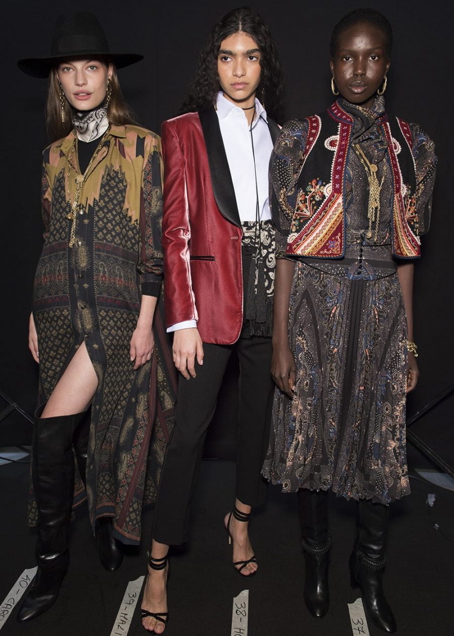 The nomadic nature of this house is what defines it. Since its inception Etro has taken well travelled inspirations and put them through a luxurious Italian prism. The result is a seductive multiverse of texture, pattern and signature paisley. This is the zenith of haute bohemian elegance. And so it was for AW 2020. The rich tapestry of looks included blanket coats, embroidered ponchos, embellished shearling, suede jodhpurs, patches and beaded denim, double-face cashmere co-ords. There was more tailoring than usual, but this is not a house for aggressive power suits. An inky velvet hot pant tuxedo suit is more the Etro vibe.