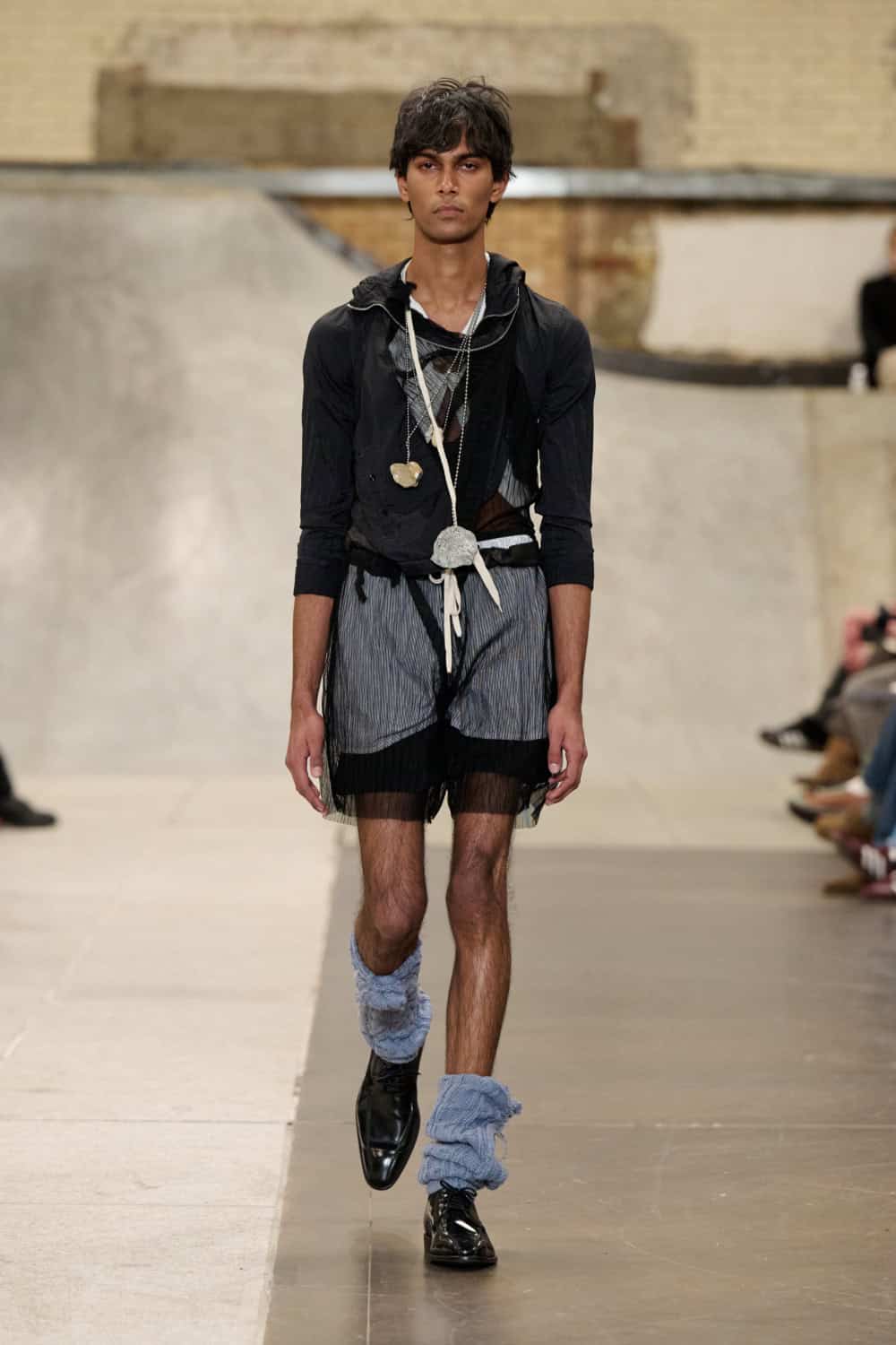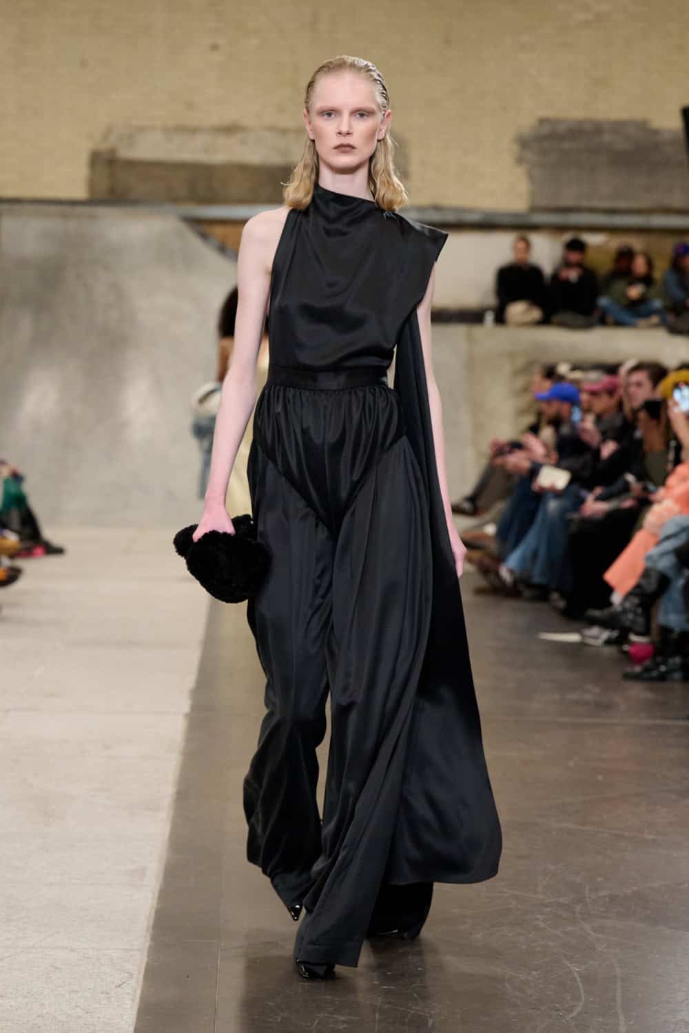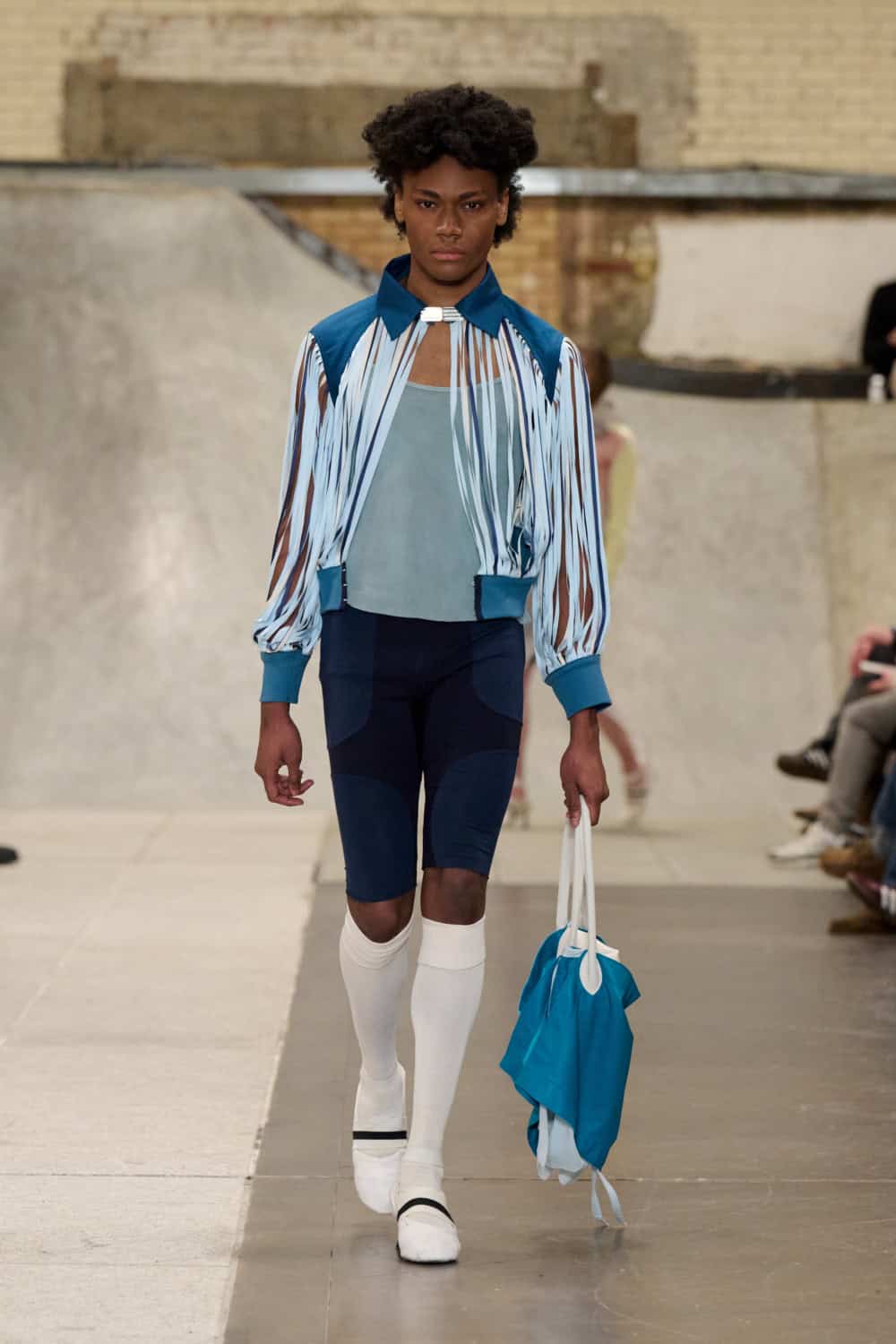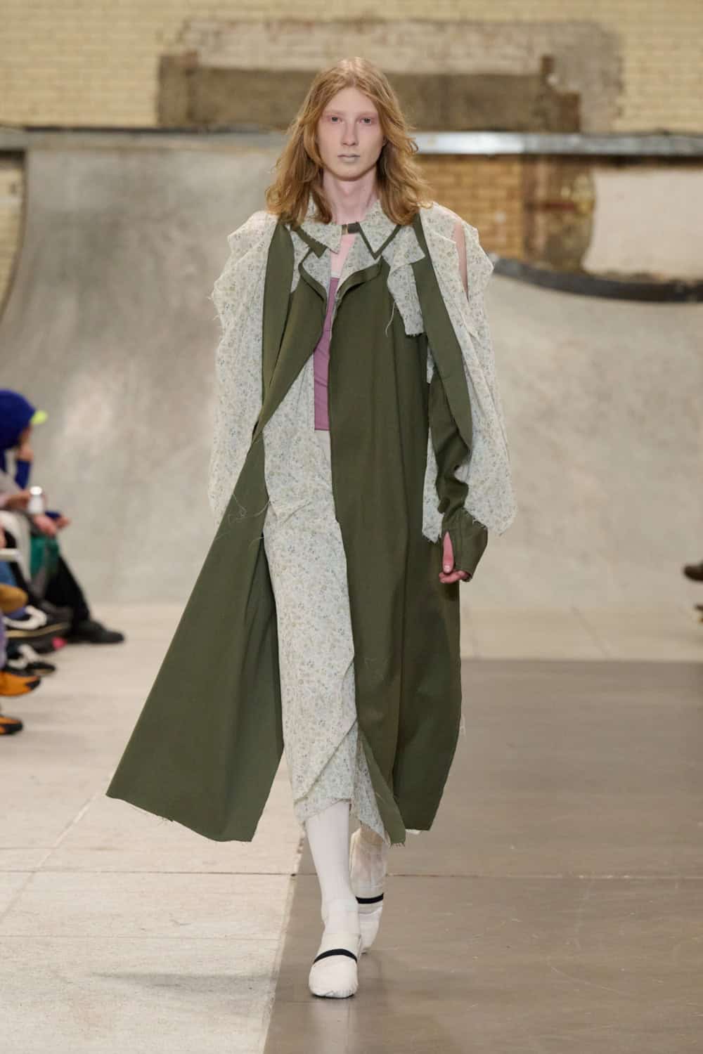 The Fashion East lot jumped on the Bakerloo line down to Elephant and Castle for their show Friday afternoon. Lulu Kennedy’s talent incubator took over Manor Place, an old swimming baths that has been converted into a community space by Palace and Nike that can transform from a skate park into a footy pitch that emerges from the floor. We weren’t here for a game of five-or-side, though, we wanted wow-factor fashion and the three designers part of this season’s cohort certainly delivered.
