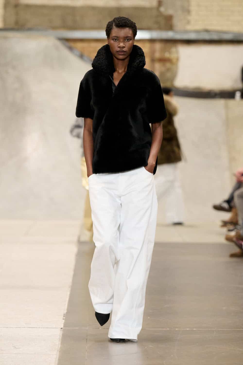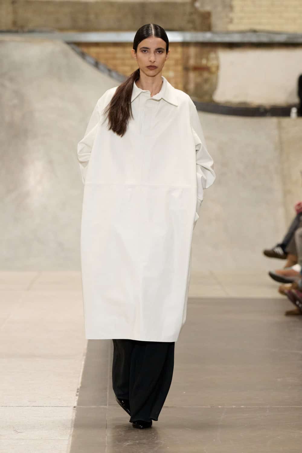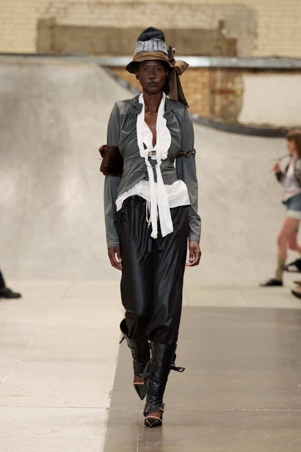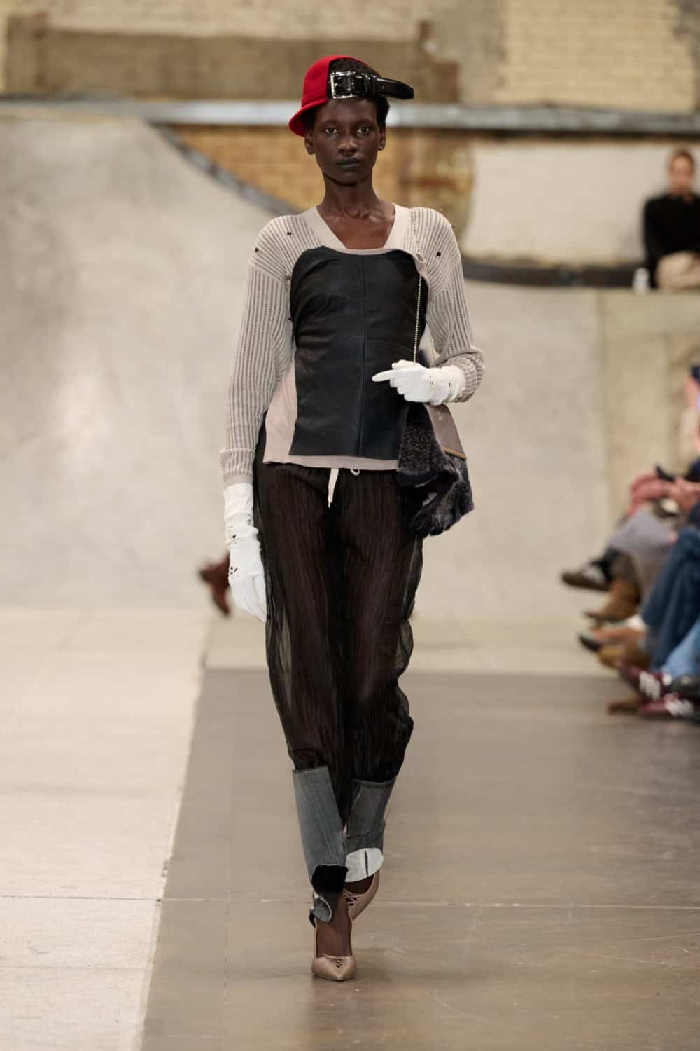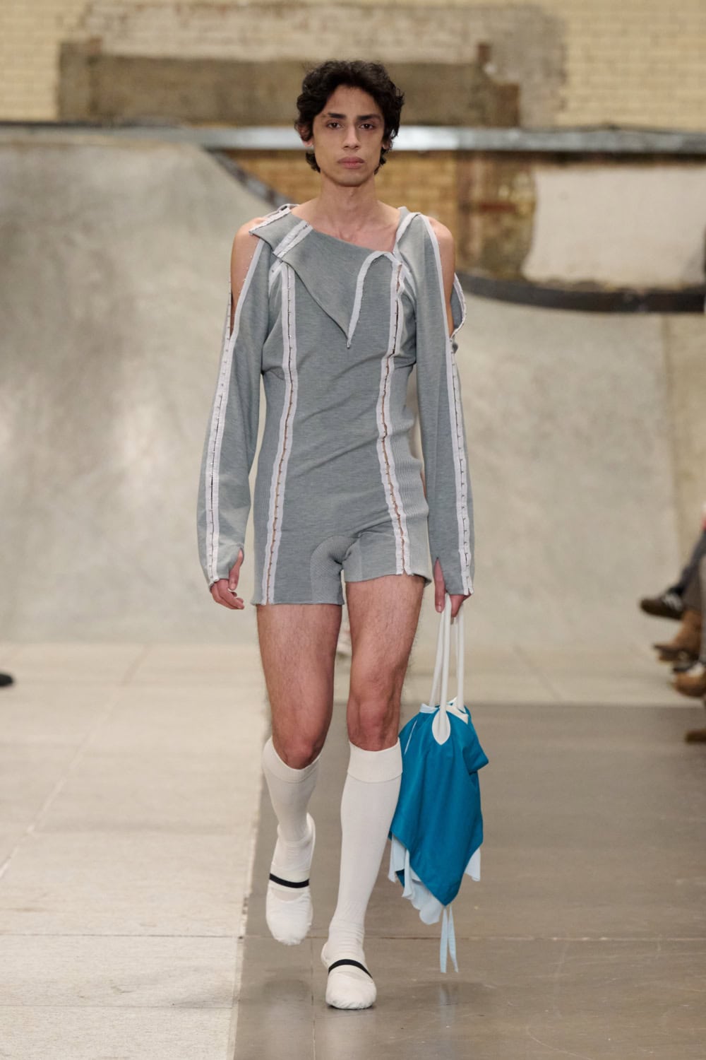 The Fashion East lot jumped on the Bakerloo line down to Elephant and Castle for their show Friday afternoon. Lulu Kennedy’s talent incubator took over Manor Place, an old swimming baths that has been converted into a community space by Palace and Nike that can transform from a skate park into a footy pitch that emerges from the floor. We weren’t here for a game of five-or-side, though, we wanted wow-factor fashion and the three designers part of this season’s cohort certainly delivered.