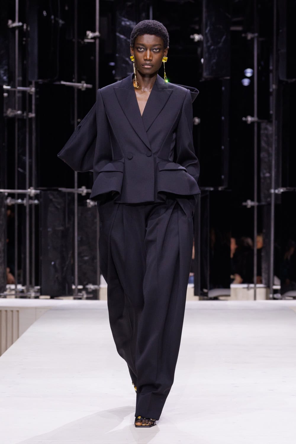 Her tailoring is indeed superlative and this season she evolved it beyond hourglass silhouettes into stunning, androgynous, double breasted trouser suits. Explaining her process she said she created the patterns in the women’s  atelier “then I construct it with a men’s wear hands, so you get this feminine shape of the jacket so it skims the body.” Skims, but still looks sharp as a pin. Burton’s precision is awe inspiring.