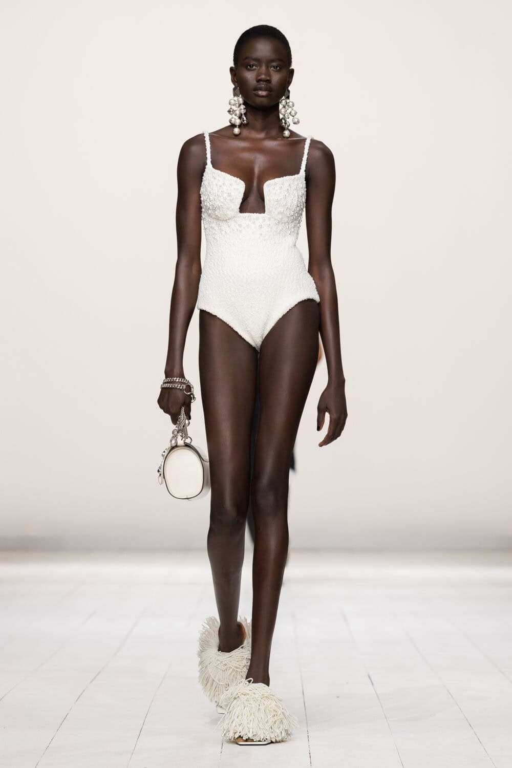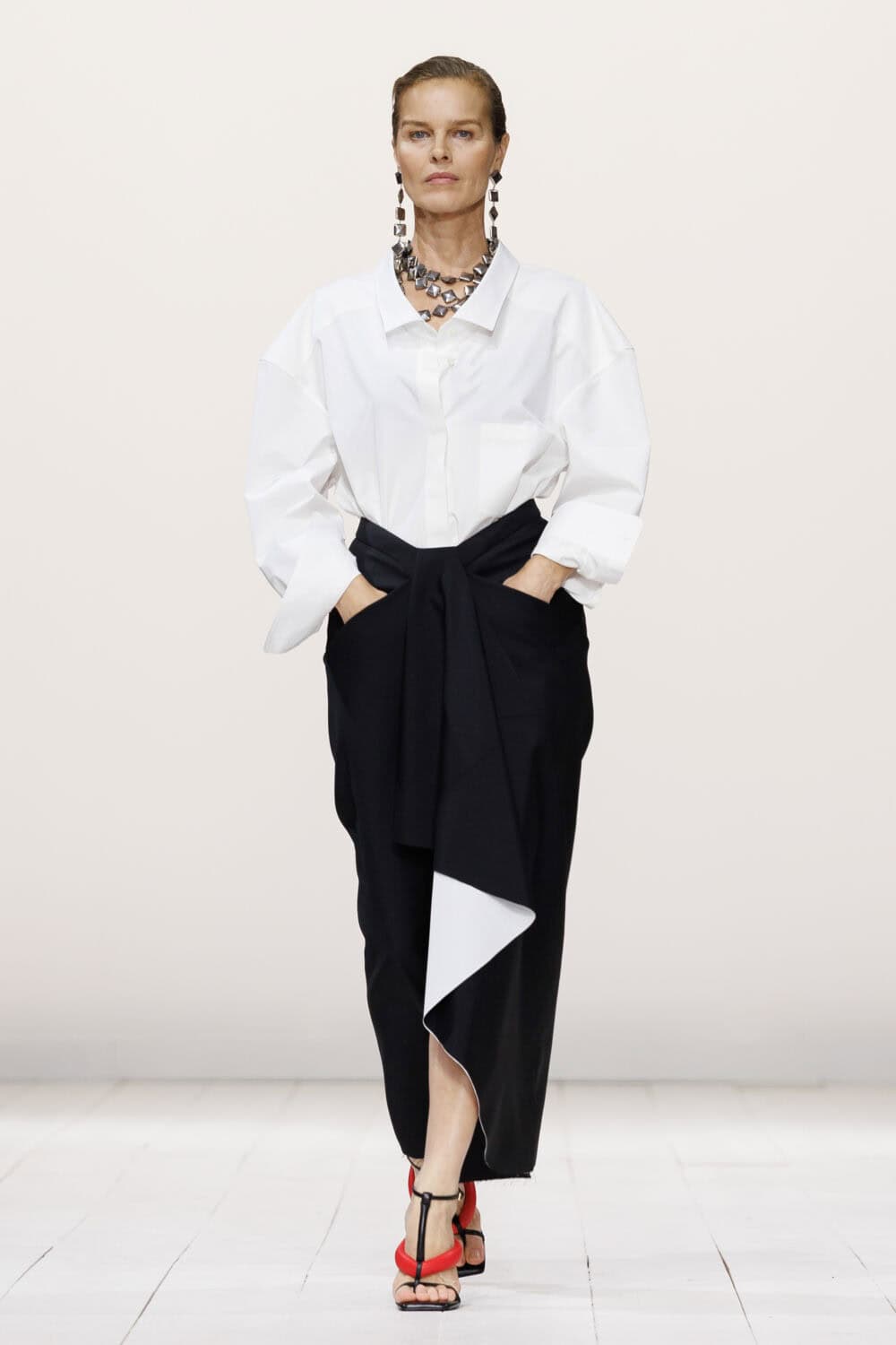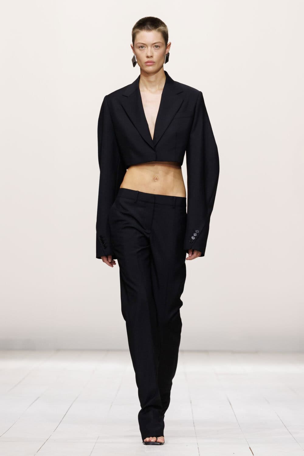 The body is the star and there was plenty of skin on show. One mini dress, made from strands of large crystals was akin to wearing nothing but a necklace. The mesh pieces which went viral last season are back a red maxi version came with an architectural mesh ruff around the shoulders or festooned with frills.