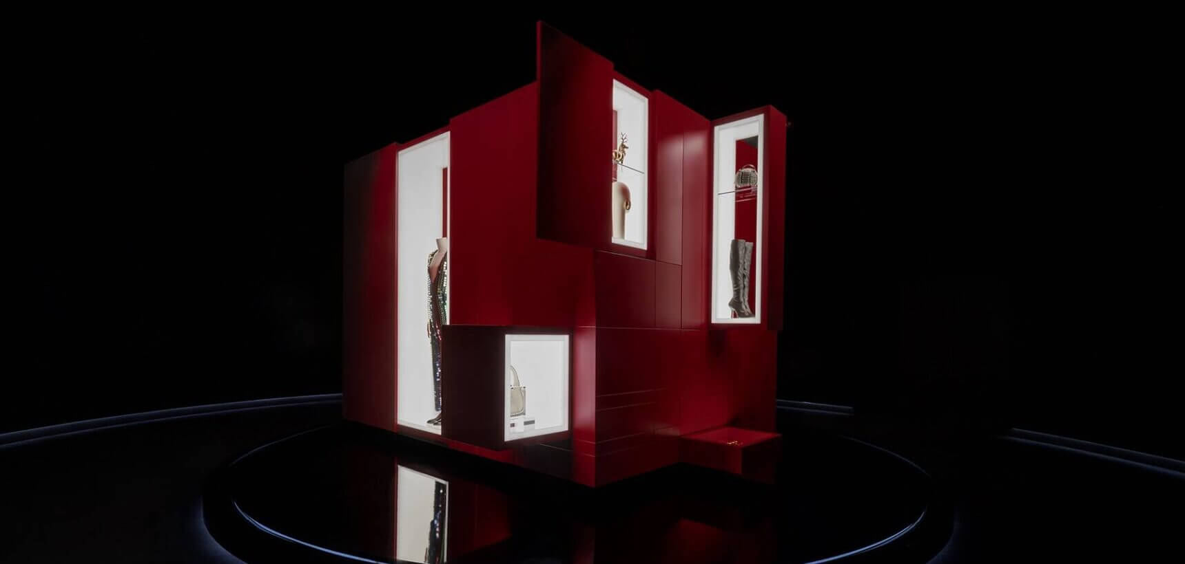 Speaking on the showcase, Es Devlin noted: “For the exhibition’s iteration in London, I wanted draw on the city’s pivotal role in the House’s origin myth in which a young Guccio Gucci rode up and down the red lacquered ‘Ascending Room’ at The Savoy where his interactions with guests and their exquisite luggage would go on to forge his future.”