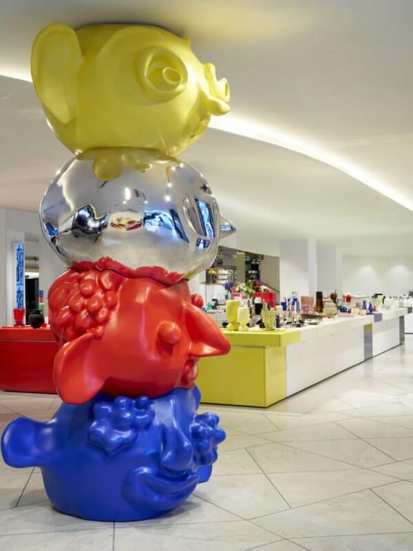 Joining Harvey Nichols in November of last year, the revered stylist is working alongside CEO Julia Goddard to revamp the store’s image, collaborating with the best names in the biz. One standout aspect of the jewellery space is a new installation comprised of oversized heads, stacked and melted together to create a toy-like totem pole, the work of artist and friend of 10, Gary Card. “[The work] creates a visual landmark in the store and shows our ongoing support for the UK’s creative community,” says Phelan on Card’s inclusion, whose wacky, maximalist sculptures and artwork has attracted a cult following.