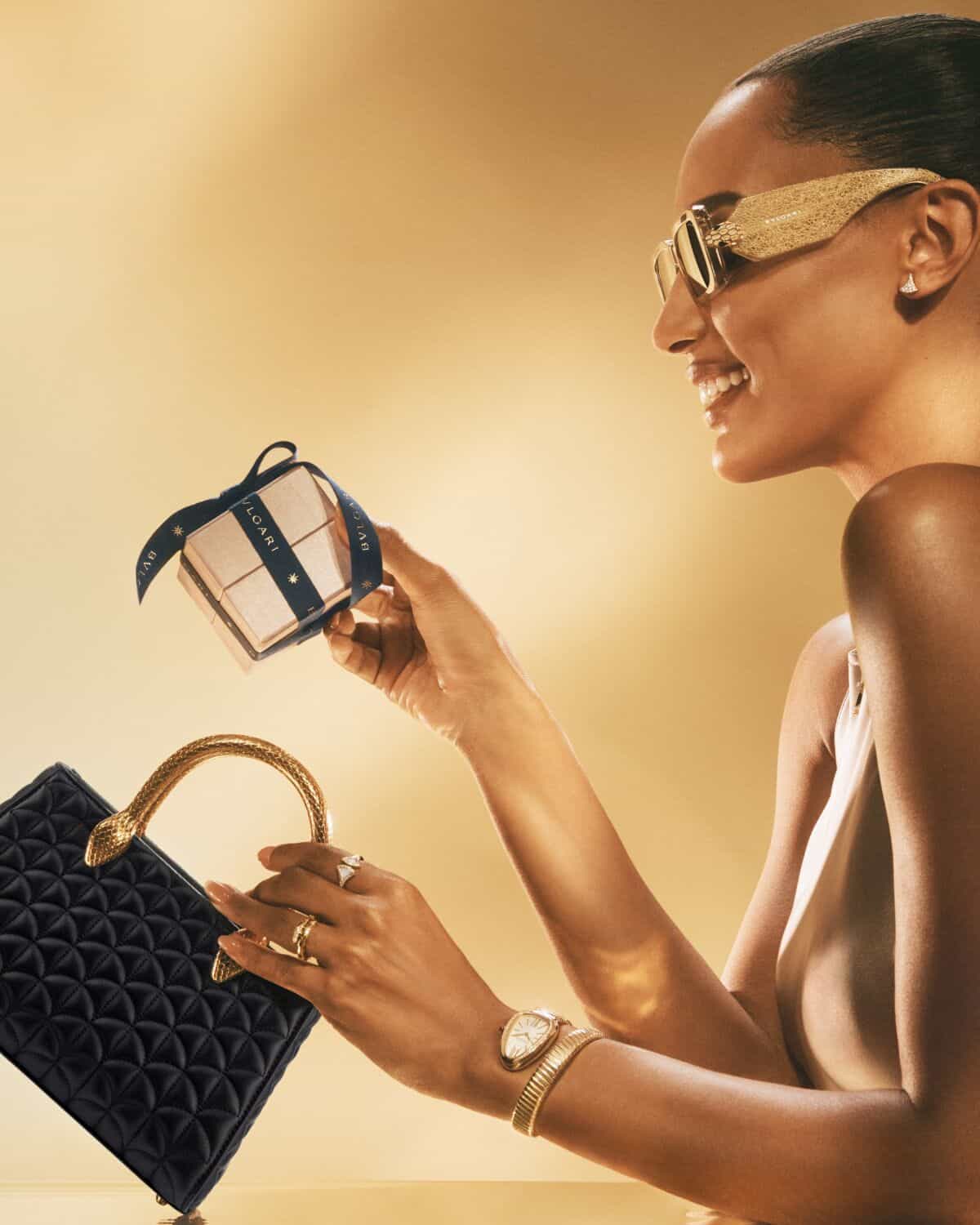 Hold your loved ones close and your Bvlgari jewels closer. This Christmas the Italian house is celebrating the familial, friendly and romantic connections that make the season special, one sparkle at a time. Under a Roman night sky, Bvlgari’s world comes alive with a constellation of light, laughter and very good taste. Shot by Bruno + Nico, the joyful campaign gathers a radiant cast including Jasmine Tookes, Kit Price and Jihoon Kim amongst others, each dripping in Bvlgari’s Serpenti, Divas’ Dream, B.zero1, Bvlgari Tubogas, Bvlgari Bvlgari and Bvlgari Cabochon collections. The Fireworks collection bring bags to the table, shimmering with thousands of hand-set crystals and designed to outshine your Christmas decorations. There’s fragrance too, and even a seven-day Allegra Countdown Calendar beginning on December 25 for those who think one day of gifts isn’t nearly enough. Keep the gifting going and the conversation flowing.