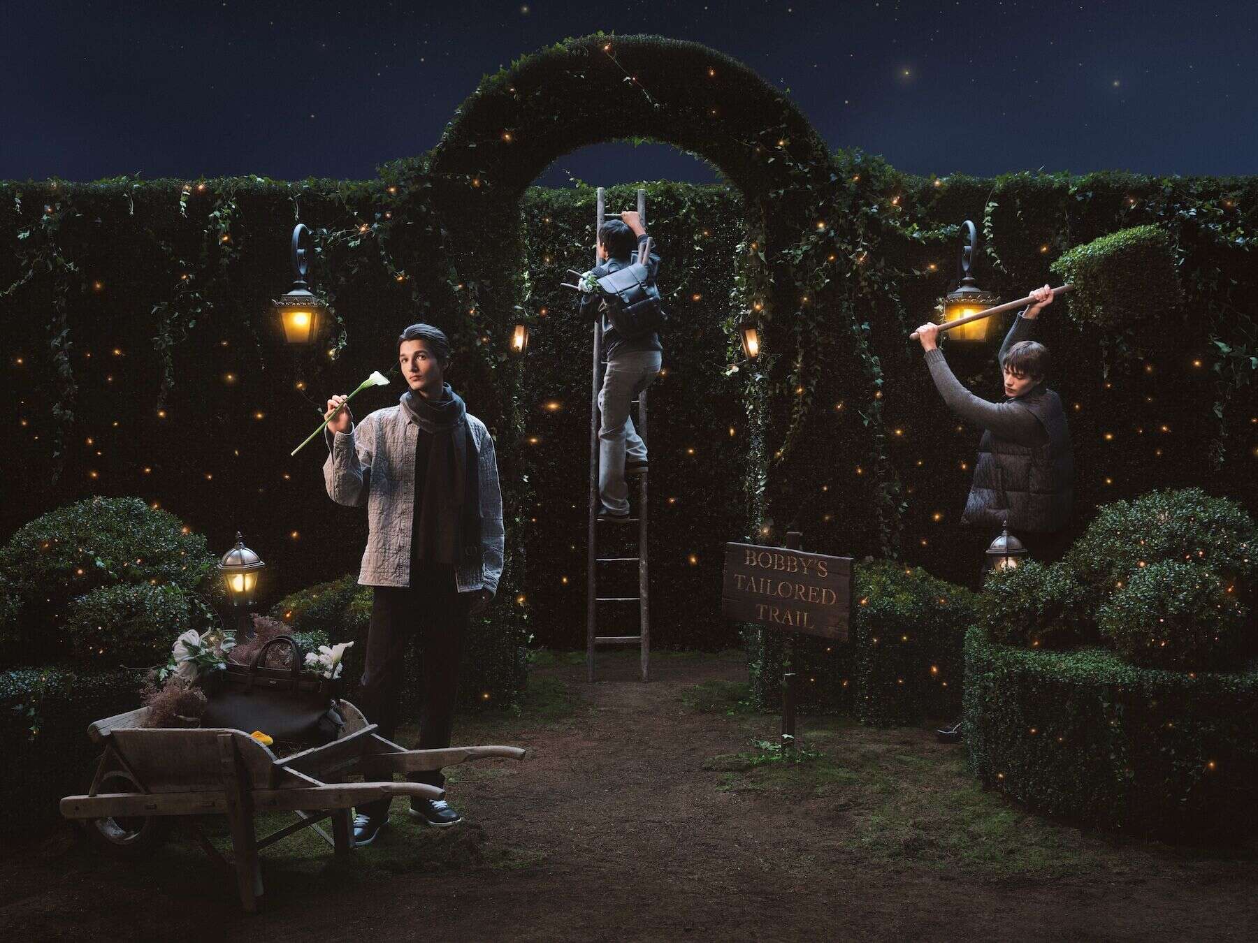 What would the holidays be without a good pair of shoes? Preferably the kind you can slip off under a table after one too many brandies. Church’s, the grand British shoemaker backed by Prada Group, celebrates the season with a tongue-in-cheek tale of three friends making merry in Northamptonshire’s finest footwear. Shot by Phil Poynter, the campaign is pure British theatre: Oxfords by the fire, Mary Janes in the stables, slippers for when the carols get too enthusiastic. Every frame is a love letter to craftsmanship – polished leather, patina, the quiet flex of heritage. There’s even a touch of debauchery among the candlelight and croquet lawns. The message? You can’t have Christmas spirit without sole.