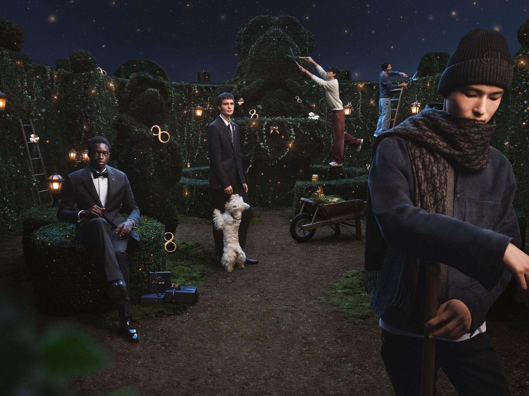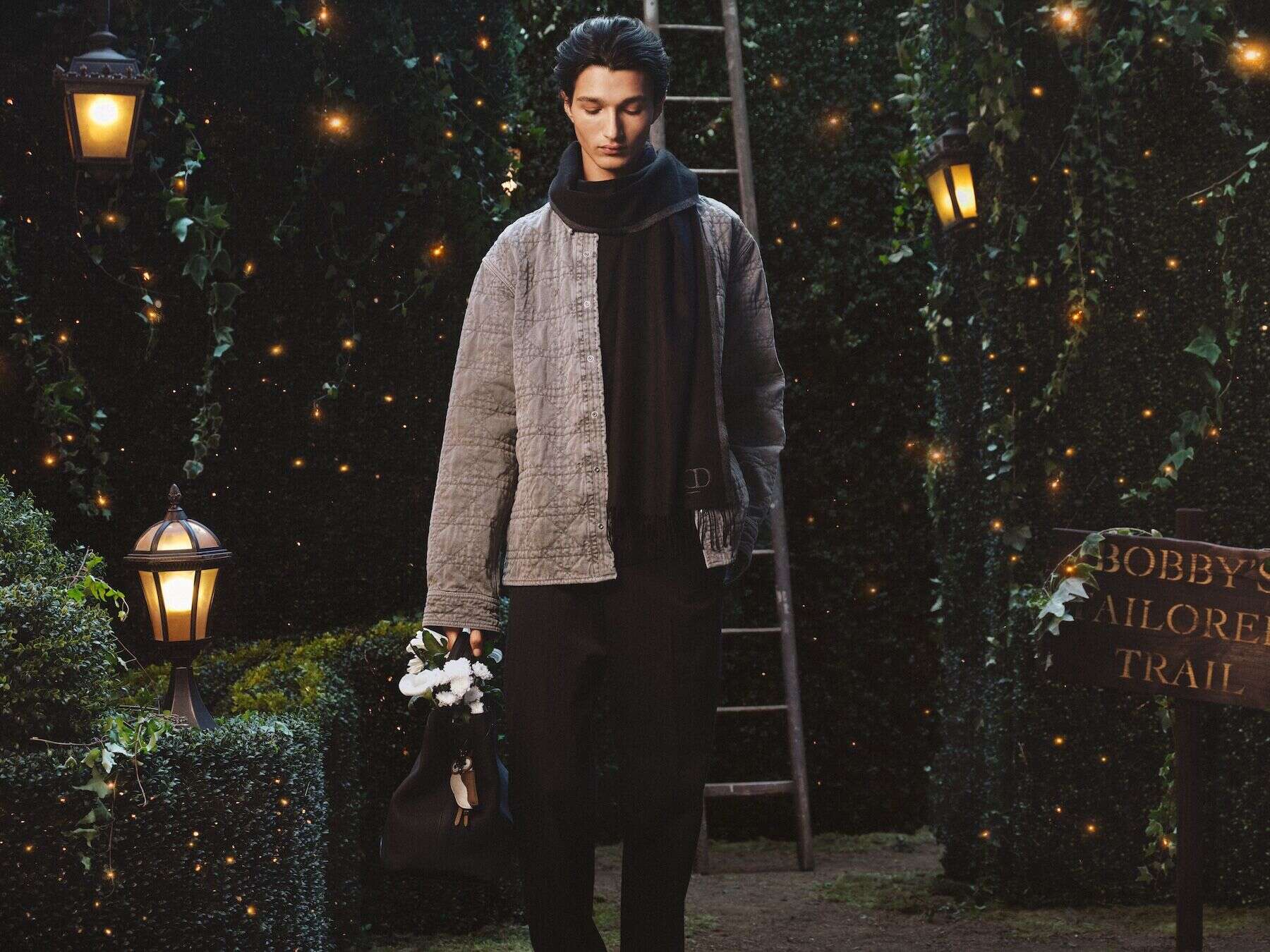 Dior is dreaming of a white Christmas – cool, minimal, beautifully assured. The holiday campaign sets the tone first: a winter maze of pattern and shadow, where menswear feels sharp but lived-in. Then come the details that anchor it – Oblique scarves and ties, Gravity leather wallets, silver chains catching the light, beanies pulled low, B30 sneakers built for city cold. Trek and Daily bags slip into the scene with quiet confidence, and yes, Bobby trots in as the season’s unexpected favourite. It’s festive without fuss: modern, masculine, a little mischievous. A world of pieces to gift, wear and make part of your own winter mood.