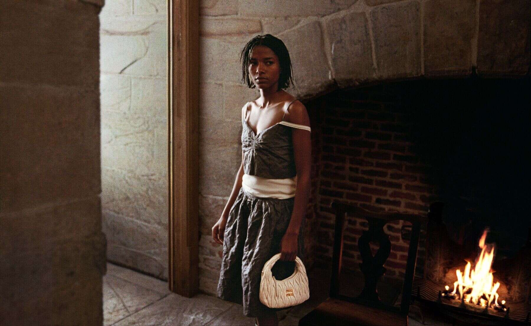 Miu Miu wants you to have yourself a merry little Christmas this year, but it wants you to do it with an air of shattered splendour. Shot by Angela Hill, the 2025 holiday campaign follows Gigi Hadid, Dede Mansro, Viola Sharp and Ju Xiaowen as they converge on a crumbling Elizabethan manor in the British countryside – a place so haunted by history it practically hums. Filmed on Super 8, it’s all textured nostalgia: glitter against stone, satin against scarred brick. The girls explore like stylish ghosts in ultra-feminine duchesse satin and patchwork shearling, their sparkle softly rebellious against the grand decay. There’s a lived-in glamour here – sequins scuffed, frocks crinkled, red Wander bags tossed on antique furniture. It’s a collision of eras and attitudes: prim meets playful, elegance meets irreverence. The message? Christmas looks better when a little undone – and preferably shot on film.