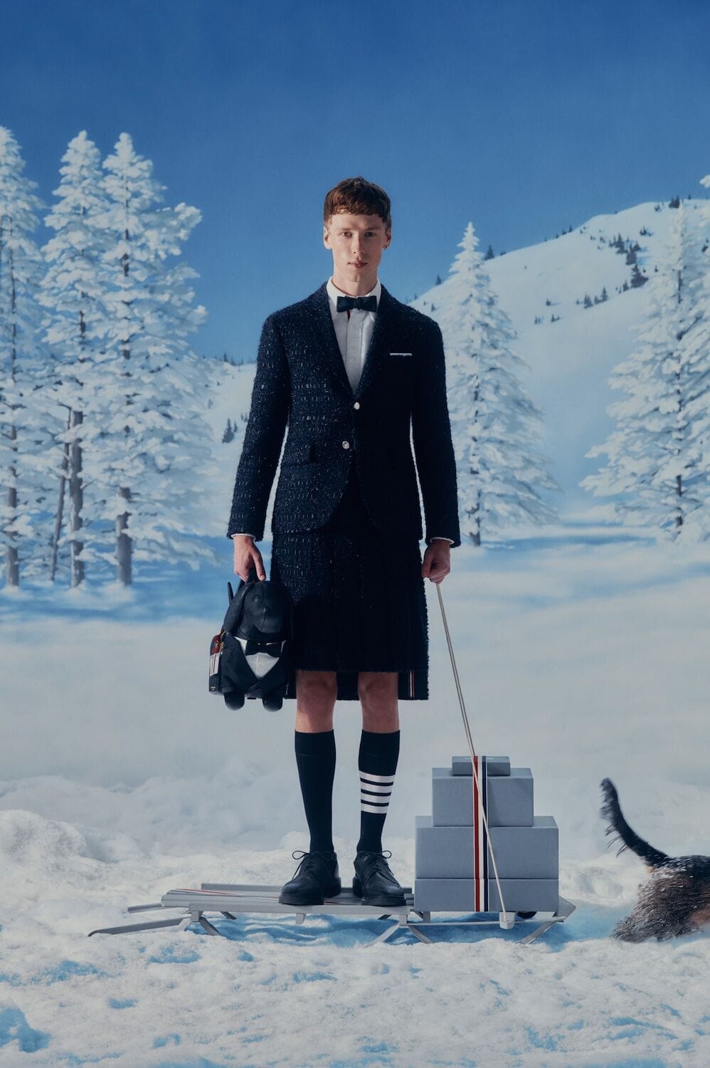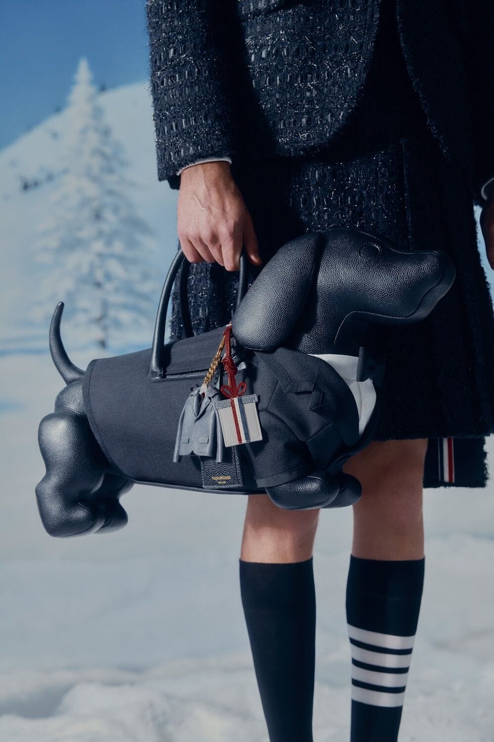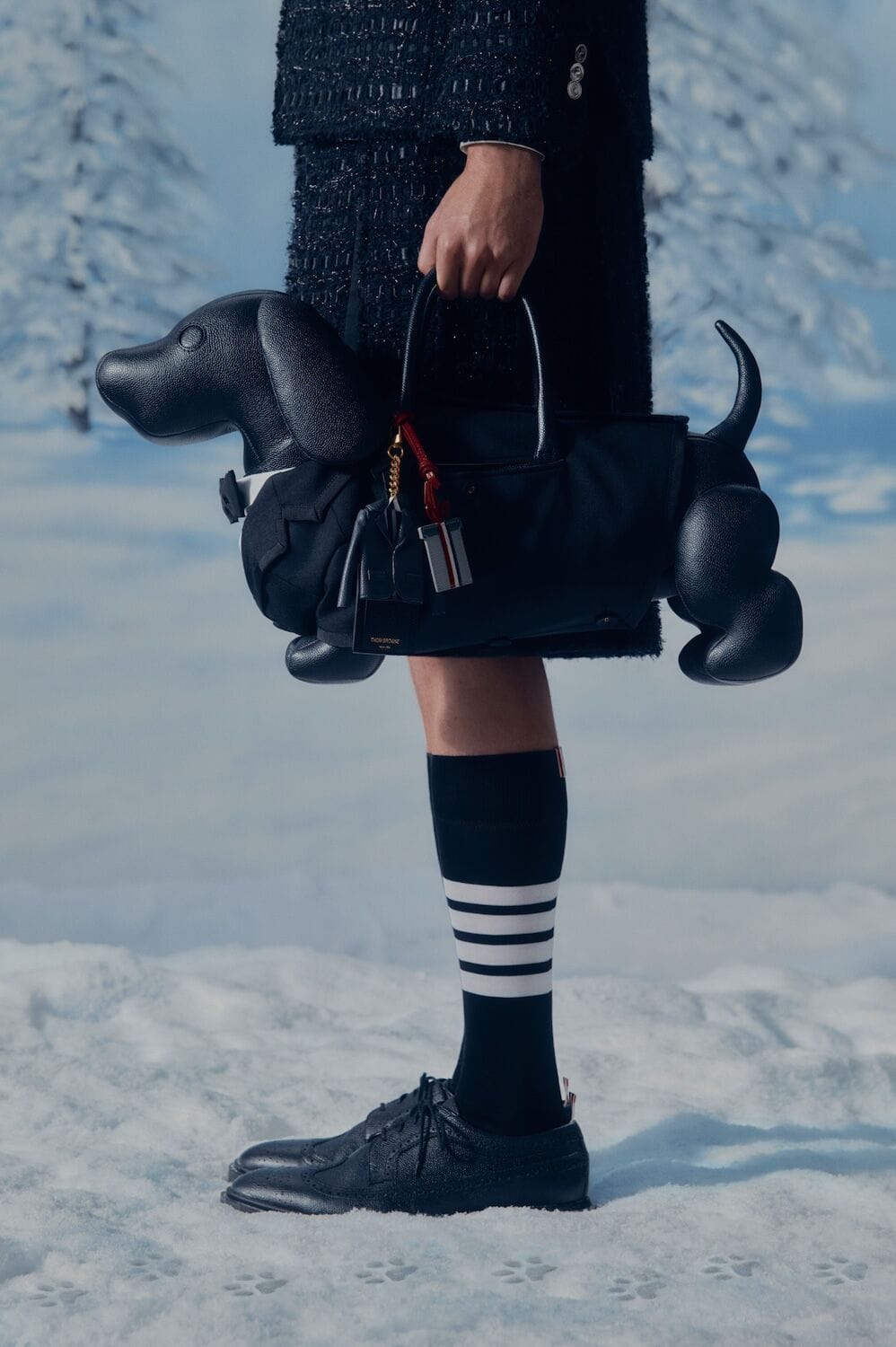 Happy holidays, it’s a doggy-dogg Christmas… at least, it is according to Thom Browne. Placing the Hector bag, a dachshund-shaped carry-all, at the centre of its 2025 festive campaign, the brand turns the season into a snowy celebration of its most iconic muse. Based on the real-life Hector Browne – the designer and husband Andrew Bolton’s beloved pet – this year marks 10 years of the adorable arm piece, and to celebrate, the brand has released a Hector-themed capsule collection that’s great for gifting, passing down through generations and just generally spreading holiday cheer. Woven into snow-speckled scenes on cashmere cardigans, stitched into merino wool crewneck pullovers and embellishing pebble-grain leather wallets, Hector makes his mark across the collection. There are two special Hector bags up for grabs too, one sporting a black tuxedo (because dogs dress for the occasion too) and the other donning toile pajamas in silk twill, as well as a selection of timeless holiday heirlooms. Across the campaign, Hector frolics in the snow, unboxes Thom Browne holiday goodies and occasionally dusts them in snow. He reminds us that the true joy of the season lies in the giving. And sometimes, in the unwrapping. This Christmas, have a very Hector holiday!