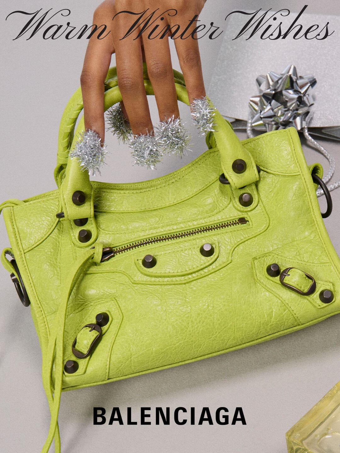 All I want for Christmas is… a Rodeo Bag, actually. Balenciaga rings in the season with a wink, serving up its end-of-year gifting like a fashion advent calendar curated by the world’s chicest elf. Marie Valognes’s close-ups of hyper-festive fingertips – think tinsel talons and mini-purse charms – turn every accessory into a glamorously wrapped present. Avenue Pumps gleam, Le City Bags smoulder and even the Venom boot gets its moment under the mistletoe. With charms, silver hair clips, Opera gloves and those new fragrances strewn like couture confetti, Balenciaga’s gift lineup feels less naughty-or-nice and more necessary. Santa, baby, slip some Balenciaga under the tree, for me… pretty please!