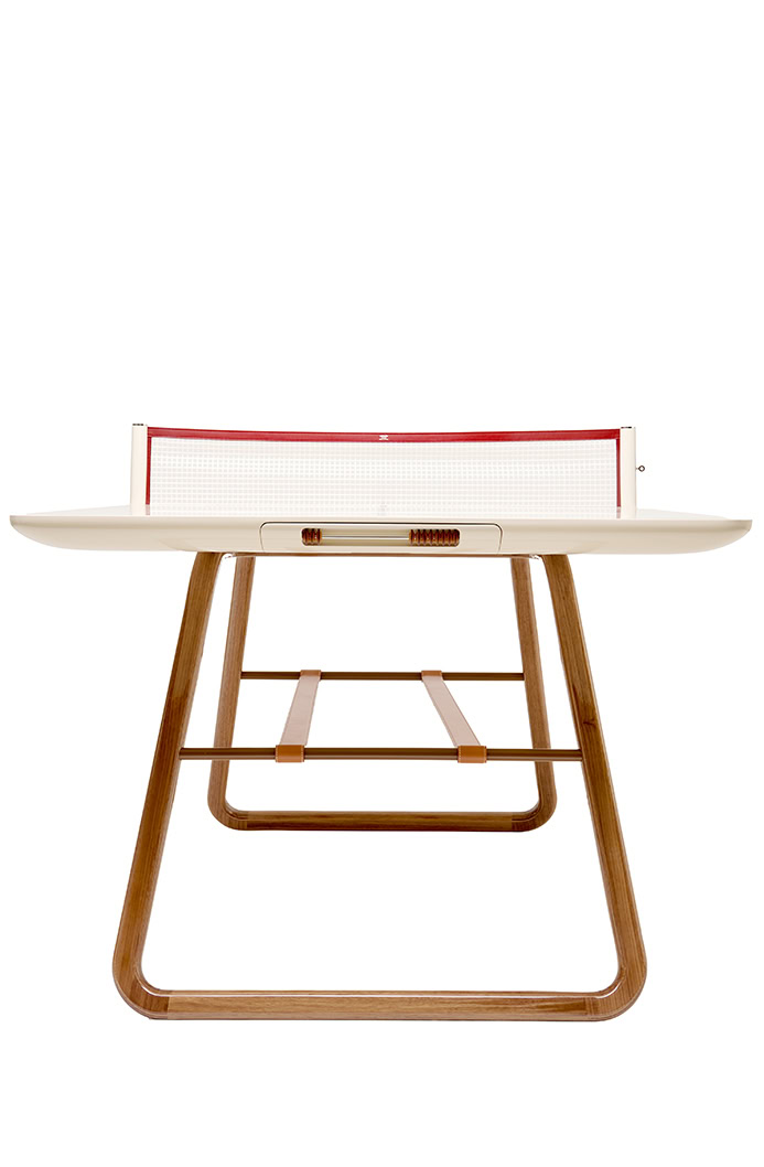 The table, available in a nata white or rouge H colourway, is a glam addition to any sport-loving home. Featuring a birch wood top with a walnut veneer, the base of the table is held in place by two Hunter cowhide straps. An intricately woven silk net is finished with Swift calfskin and secured with a swivel clasp – inspired by the house’s famous Kelly bag. The wooden table, hand-laquered (with over ten coats no less) is also home to a thin drawer, perfect for easy storage of bat and balls. If you’re going to master the art of ping pong, you may as well do it properly, right?