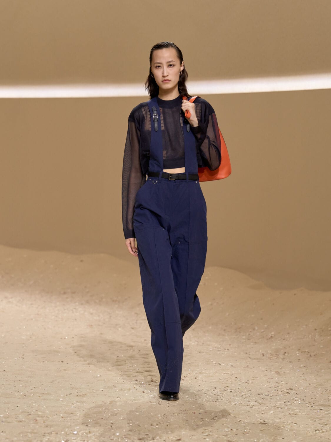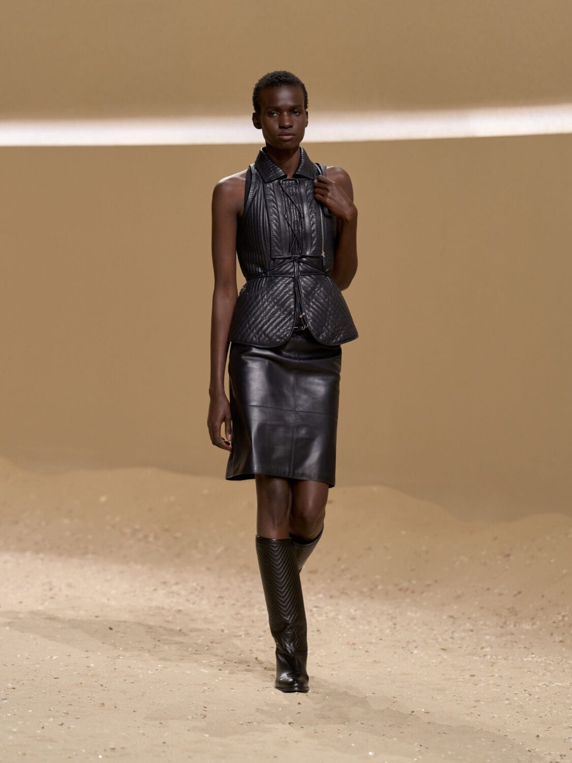 Quilting played a major role, with the designer bringing back a ’70s archive scarf print for ‘boutis’ quilted coats, and corset dresses worn over cycling shorts. A blue stripe print painted freehand by Jean-Louis Dumas, (the father of Pierre-Alexis the current artistic director of the house) was made into quilted coats. There’s a can-do attitude at Hermès and it gives energy to the runway. Vanhée’s women stride down the runway with total confidence and freedom of movement. These clothes are crafted beautifully but they’re built to last, to be enjoyed and to be lived in. That’s the beauty of Hermès.