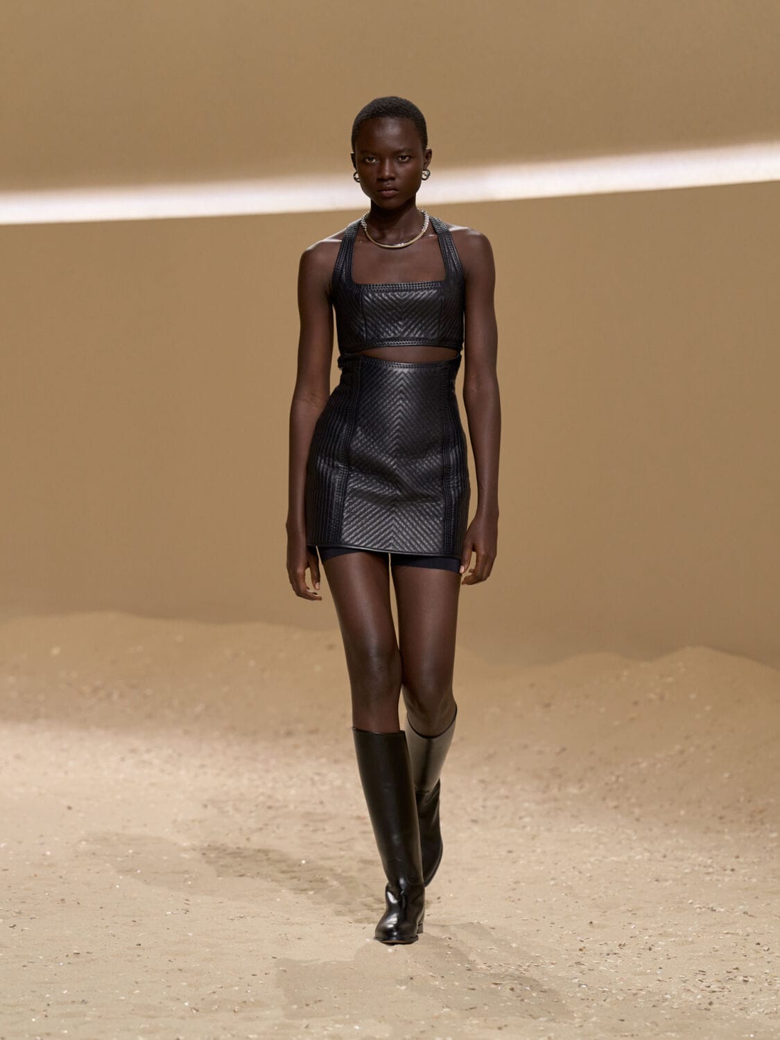 Entitled Free Rein, the collection thrilled with equestrian detailing and the kind of confident, leggy sensuality that comes when you wear quilted leather shorts with a leather harness bra, threaded through with a fluttering silk scarf.