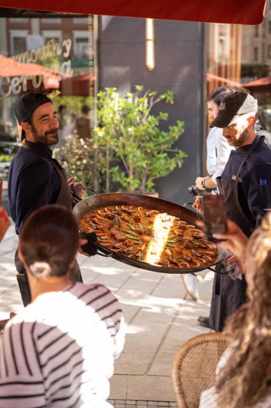 We all made it back safely to the hotel to take part in Spanish omelette-making workshop led by the hotel’s executive head chef, Iván Jiménez who hails from Venezuela. It was engaging, informative and genuinely fun. On my team I had my lunch bestie Mel who was a once finalist on Celebrity Master Chef and the incredible Luke Day, editor-in-chief of Man About Town. The lesson offered a deeper appreciation for such a staple dish. We ended the session by tasting our own creations, washed down with perfectly paired chilled wines which made even the most questionable of omelettes taste delicious. (I also was quite distracted by the canapés that were also on offer, particularly the anchovies, olive and jalapeño tasters.)