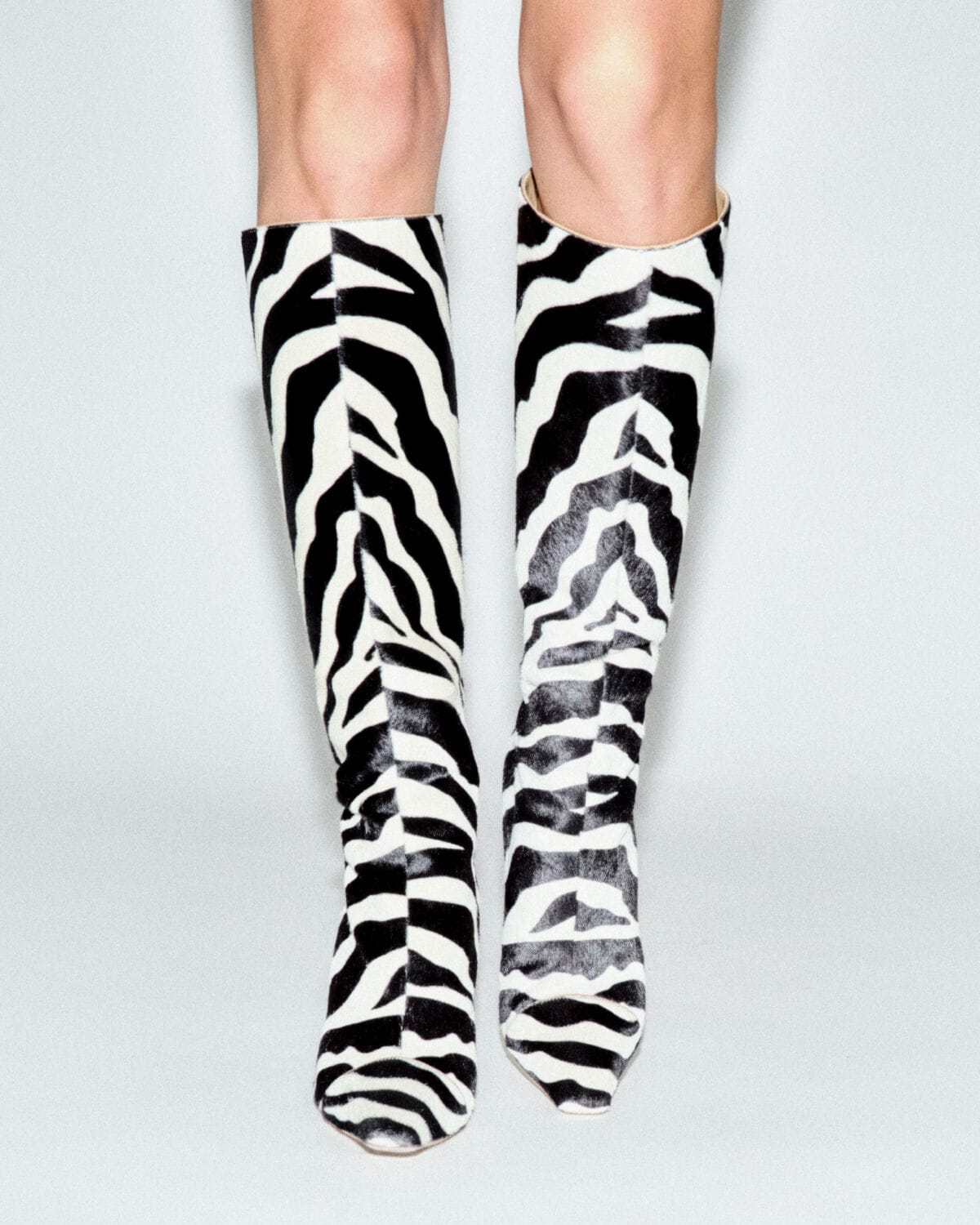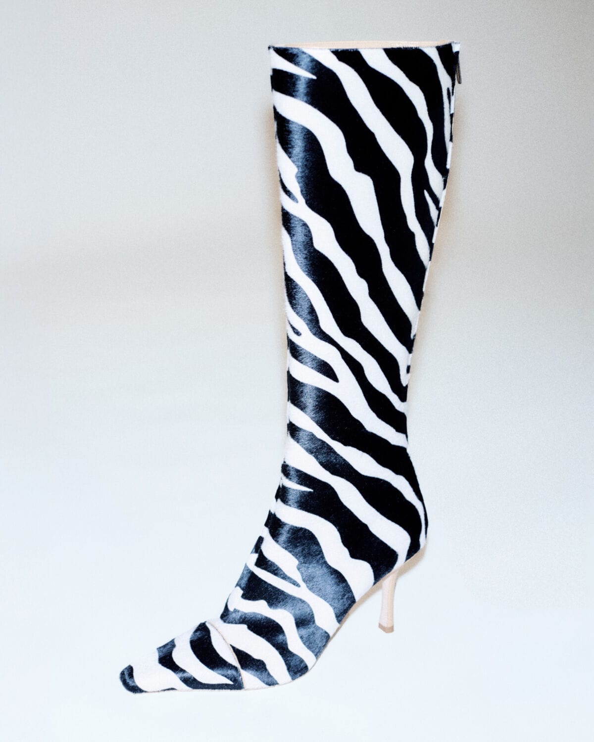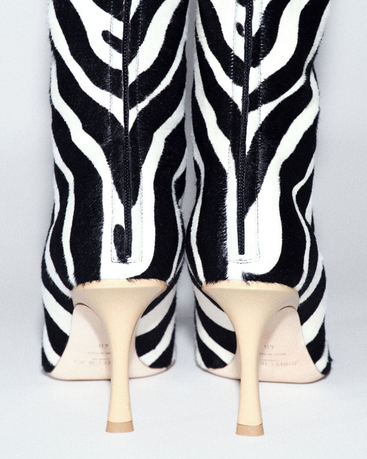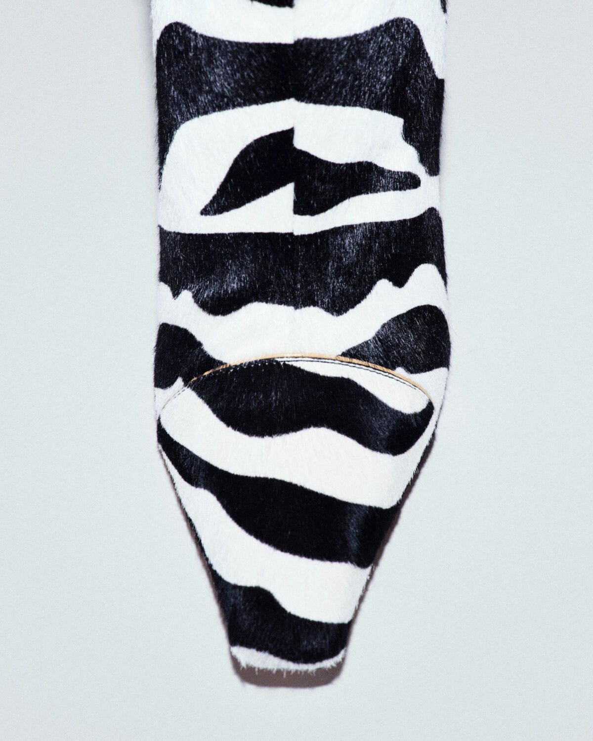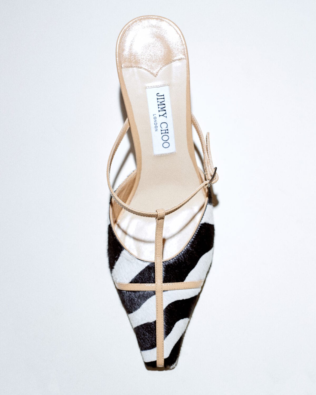 It’s major outing in a long list of collabs between the duo, who first collaborated during the SS24 season. Since then, their partnership has settled into a rhythm: Sandra Choi, Jimmy Choo’s creative director, brings the footwear know-how, while Ives – ever nostalgic for a remix of Americana – layers in his love of story and print. The result? Zebra and cheetah pony leather uppers, squared toes, 85mm heels and a confidence that feels unapologetically late-‘90s.