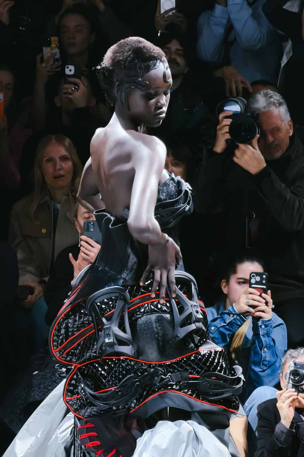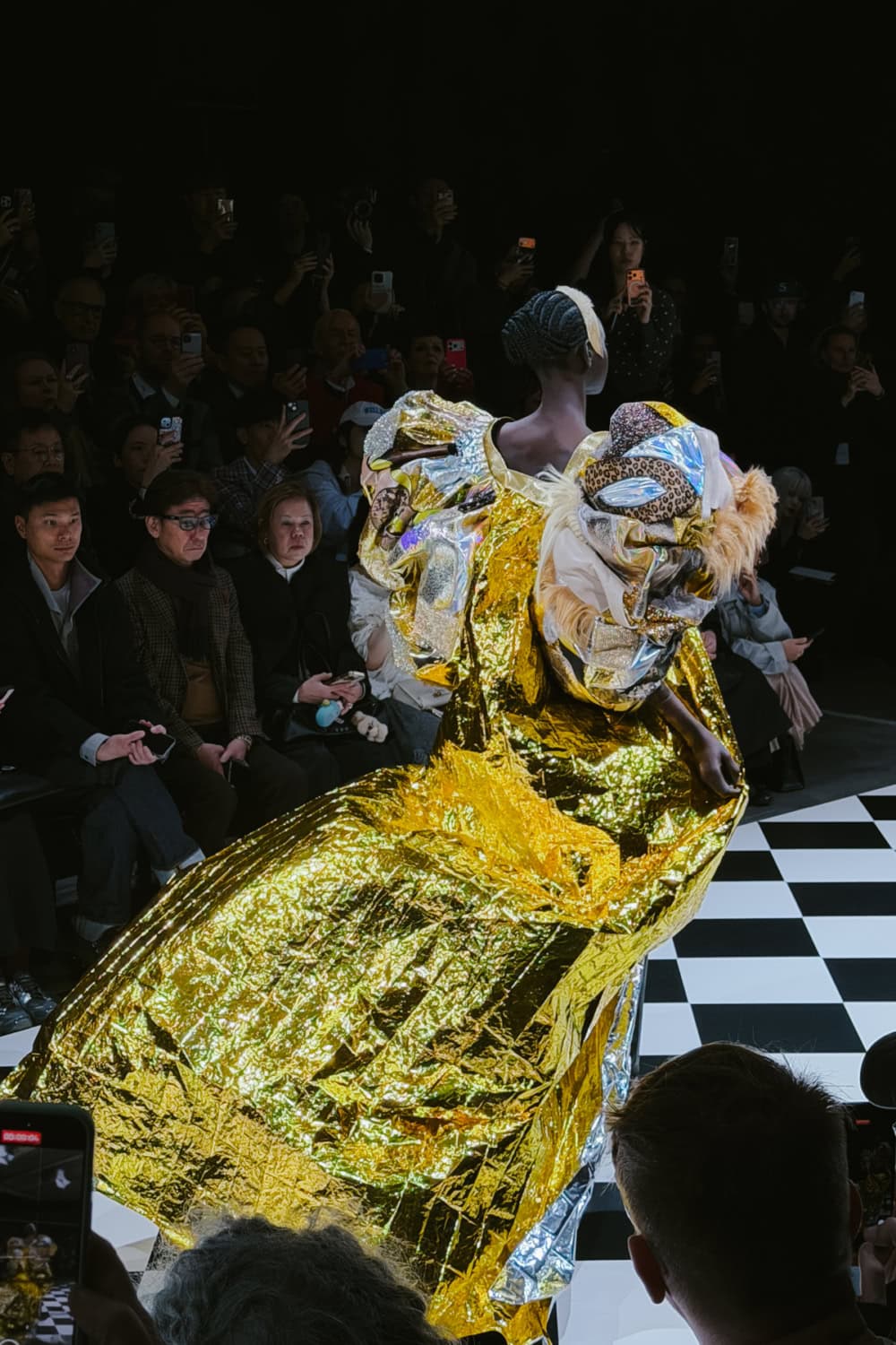 It read like a meditation on glamour and beauty, as well as the importance of circularity in fashion, with the designer suggesting that beauty can be created with the most mundane objects – if you know how.