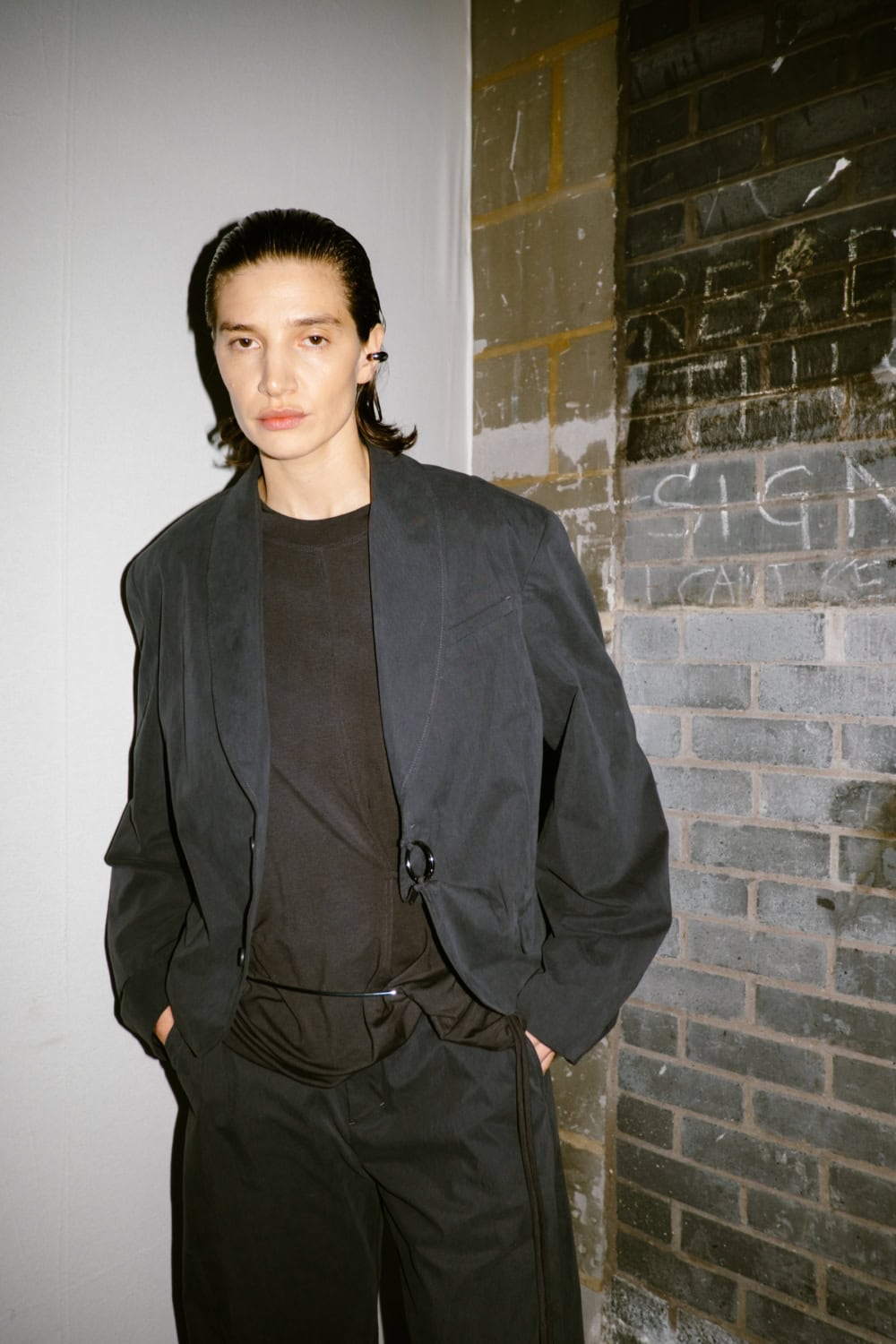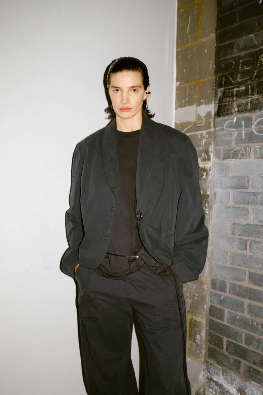 Vitto cleverly built her collection around the idea that her girl gang were coming out of hibernation. Models’ hair were wetted and accented with resin flowers that looked like icicles, as if they were still melting out of their icy cocoon. The troupe came clad in woollen body-con dresses wish sensual cut outs at waist and shoulders. There were slinky tops and form-hugging skirts ruched high up the thigh. Look 8 was a standout with its halterneck top that scooped past the navel, paired with an asymmetrical miniskirt cut from jersey. These were clothes that would look good for the club but also for the everyday. Like denim twinsets and techy trouser suits in muted hues. No matter what it was that Vitto’s girls were wearing, they each looked superb. These were clothes made with feel-good factor.