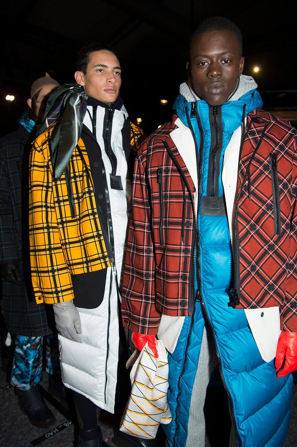 Correct me if I’m wrong, but to (possibly incorrectly) utilise a term learnt in GCSE English, is this not what one would call the breaking down of the fourth wall? The drawing back of the curtain? Because this evening, for Kenzo’s AW17 show (their first combined mens and womenswear outing) the backstage became front of stage. Line-up, hair and make-up, backstage photogs. All on show. A meta-moment. Which was a choice, apparently, made for sustainability purposes in association with charity Ideas For Us. Makes sense – who needs a fuck off fashion show when you have some really great clothes? And really great clothes Humberto and Carol gave us, inspired by, as the notes told us, a subculture of Arctic surfers. Which, from what we can gather, are like the normal type of surfers, but a bit colder. Point Break on ice. And a necessity, one would presume, for such cold weather based pursuits is warmth. Protection against the elements. So that became the kind of raison d’être of the collection – technical outerwear, from puffas to cinched ski jackets, anoraks (one, two, three’s a trend) and heavy snowboard-style boots. Knitwear that extended over the head, balaclava style. But all enlivened with that sort of haze of hippie day-glo surfer – long degrade jumpers, floral Hawaiian prints, harlequin diamonds. A zingy colour palette of orange, lemon yellow and glacier blue. It was rad. And, with that, our adventures in the land of menswear end come to an end for another season. It’s been a blast. Over and out…