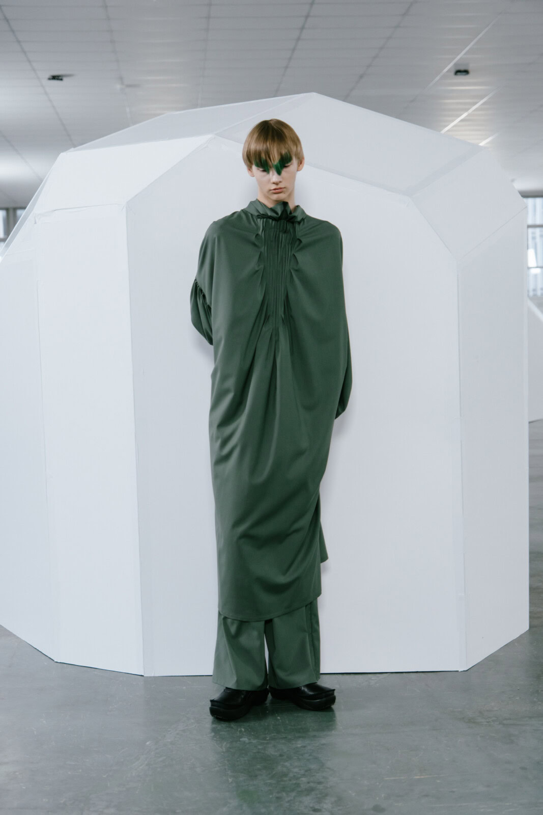 Kiko Kostadinov’s got a new look. That’s not entirely true: the designer’s signature retro futuristic stylings were all there, led by his impressive pattern cutting prowess. Though, for his AW26 outing, it was as if the designer had hit the refresh button. His show notes spoke of returning “to the primary language of construction and material”, stripping the collection of print in favour of one colour looks that let each piece’s fluid, geometric construction take centre stage.