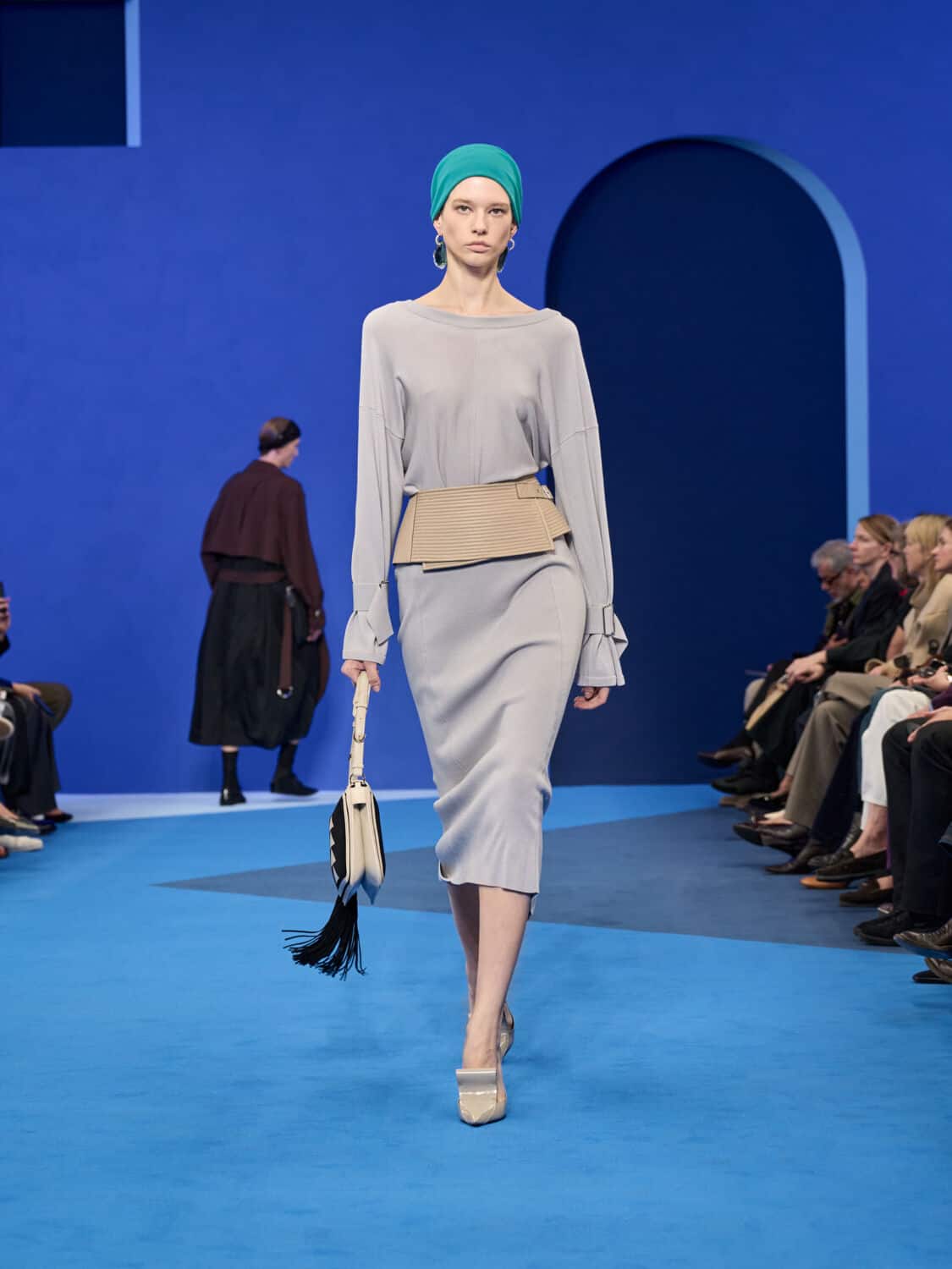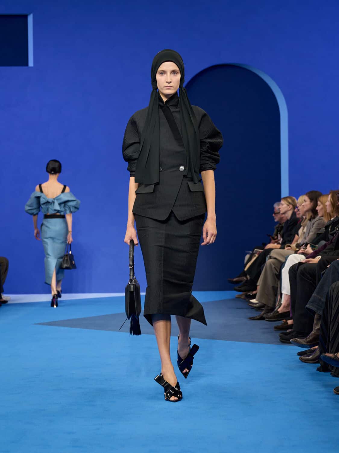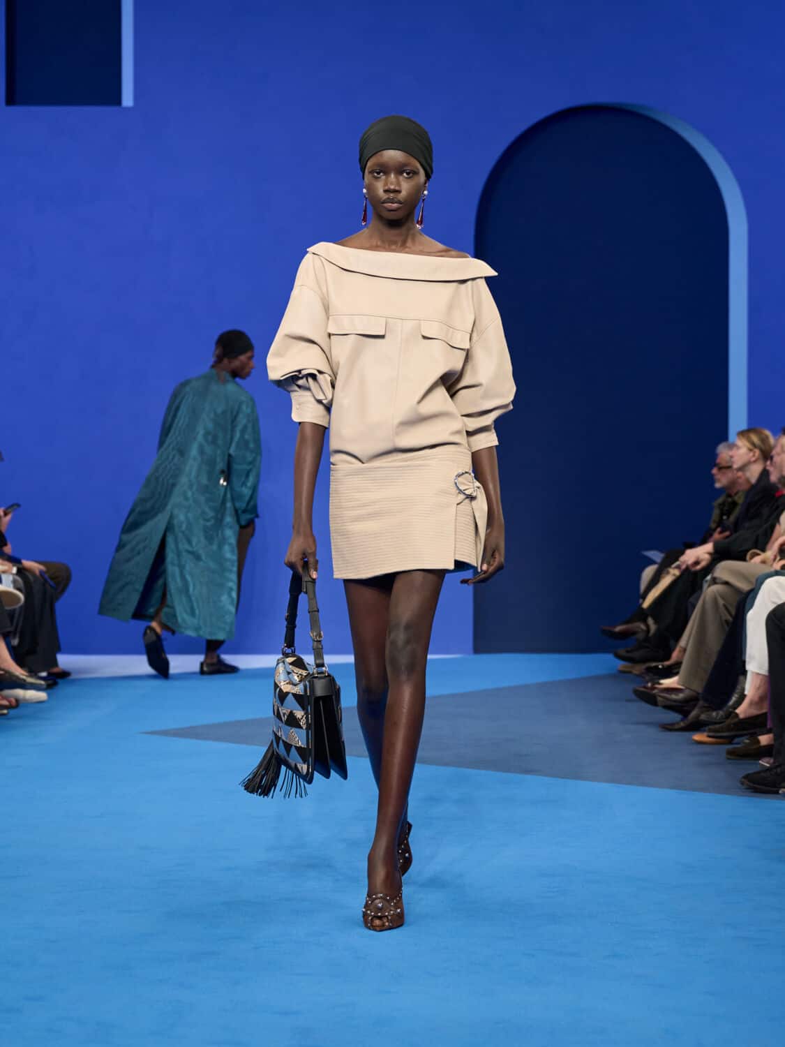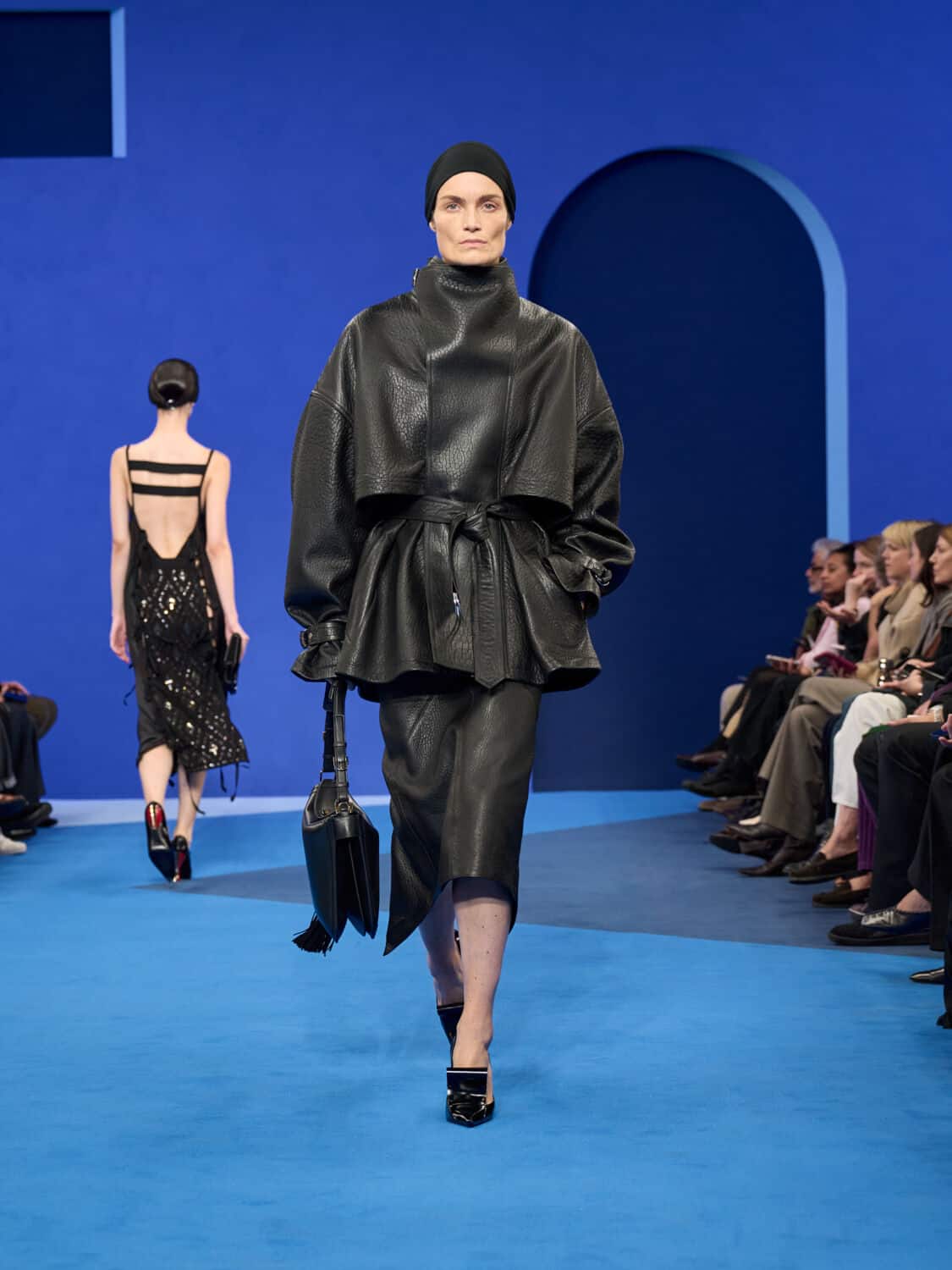 Accessories built on Copping’s January introductions: sharply pointed pumps and mules with ribbon flourishes, plus the Compagnon handbag rendered in plush matelassé leather. Overall, this was Lanvin stretching outward without losing the tenderness and restraint that make it feel eternal.