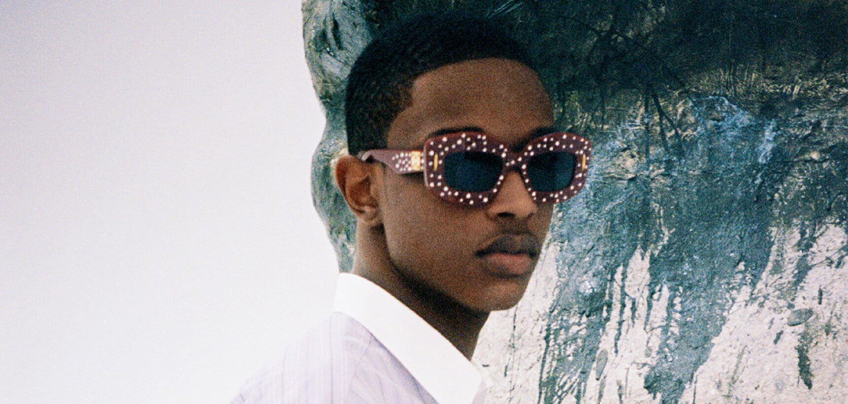The film follows five models – Andrea Isidori, Elliott McDean, Malick Anderson, Bruno Krahl and Adrian Smats – as they embark on a dream-like exploration of West’s extraordinary sculptures. Dressed in various garments from the upcoming collection, the video highlights key design elements including geometric silhouettes, elongated trouser legs and bedazzled sunglasses.