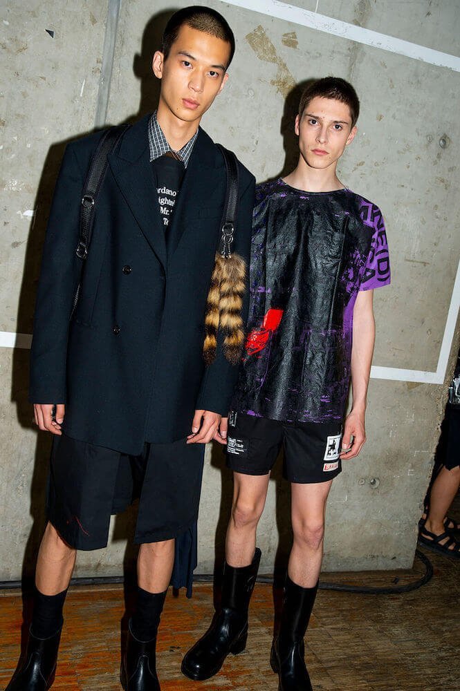 You can thank the composer Mica Levi for the haunting soundtrack at last night’s Raf Simons show. The original score for the 2014 horror smash Under the Skin starring Scarlett Johansson: it was the perfect dark accompaniment to Simons’ mind-screw spring line out. Was Johansson’s protagonist character – an impersonal alien predator, who consumes humans like we scoff chips – perhaps a metaphor for governmental control? Prescription drug control? Johannson’s character, just like Simons, gets under your skin. We have so many questions about this show.